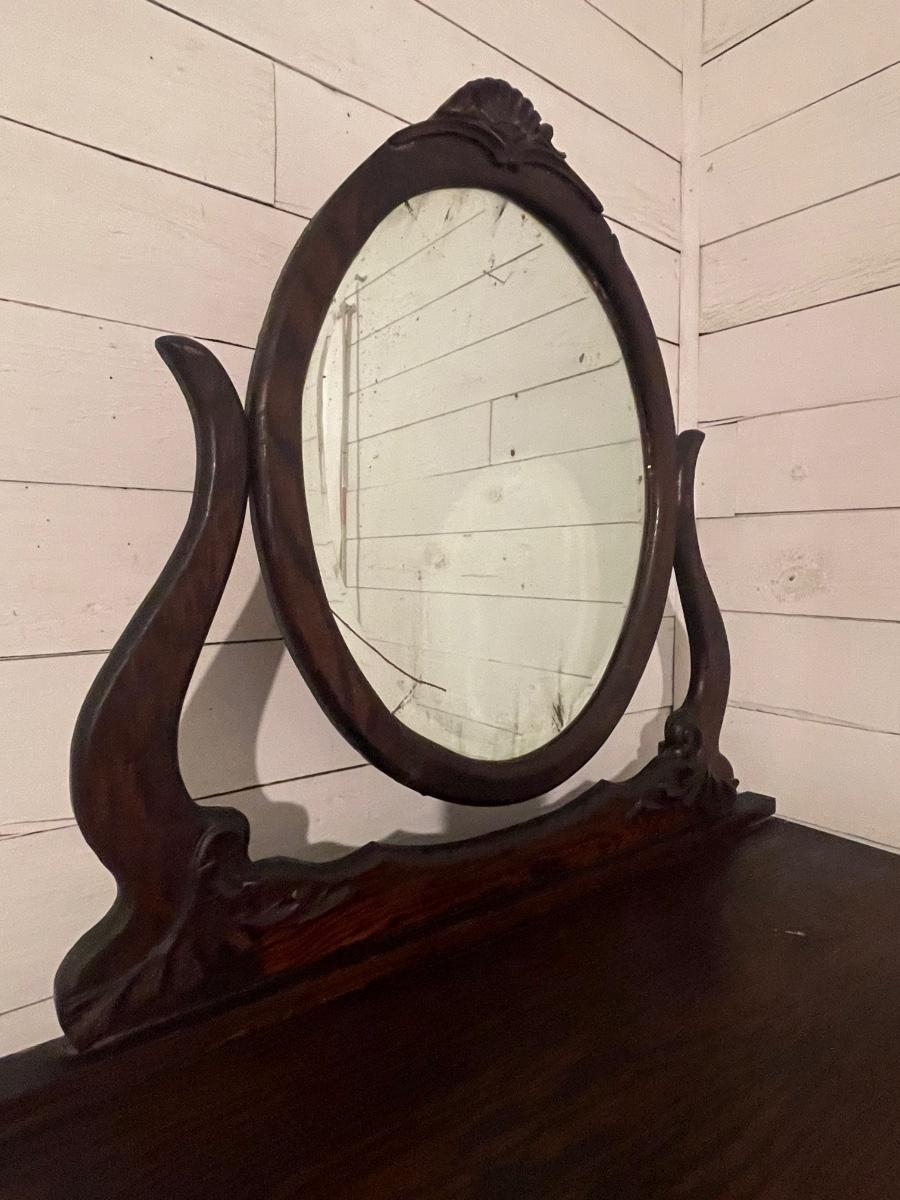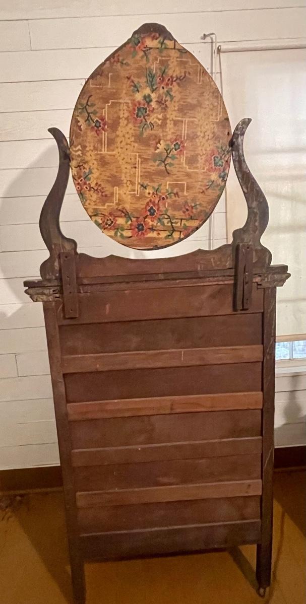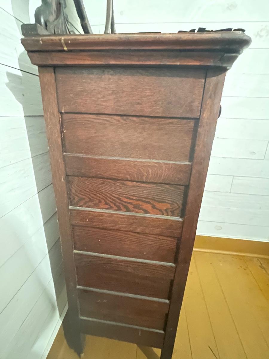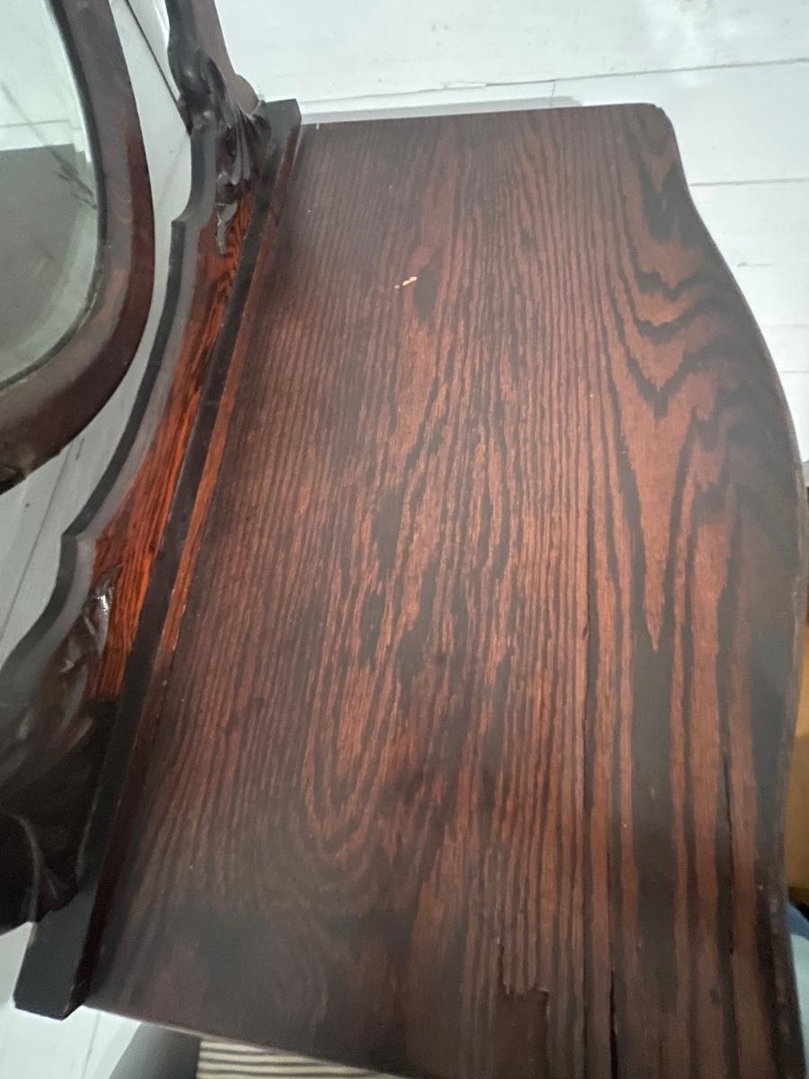 This antique chest of drawers is beautiful. The top has separated a bit as shown. 49” tall, 32”wide, 18”deep. Drawers show signs of use and age, but it’s still amazing. Put a little work into it or simply use as is. What a farmhouse statement piece for bedroom or use as linen storage. Many uses for such a wonderful piece! All antique furniture from this home shows signs of use and age. Many wonderful pieces from this old home!
