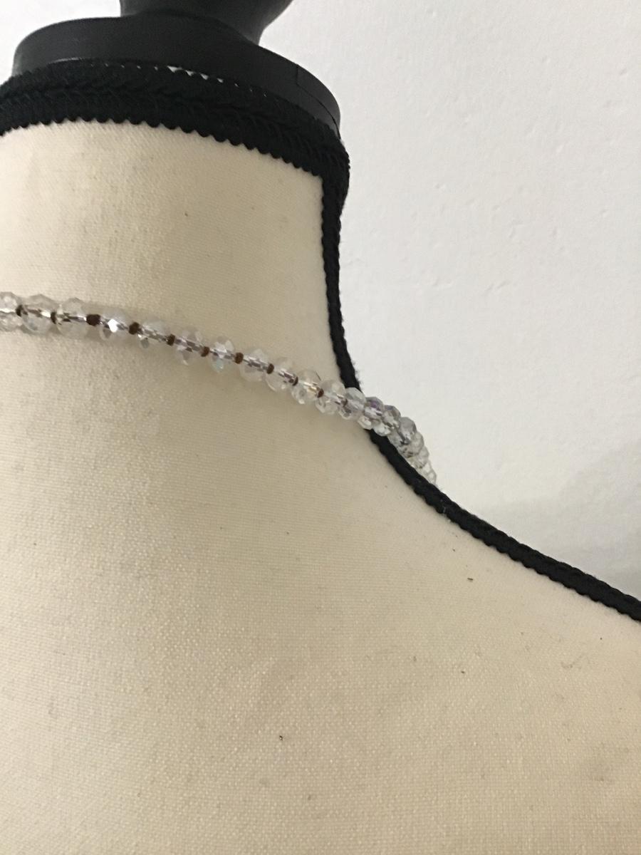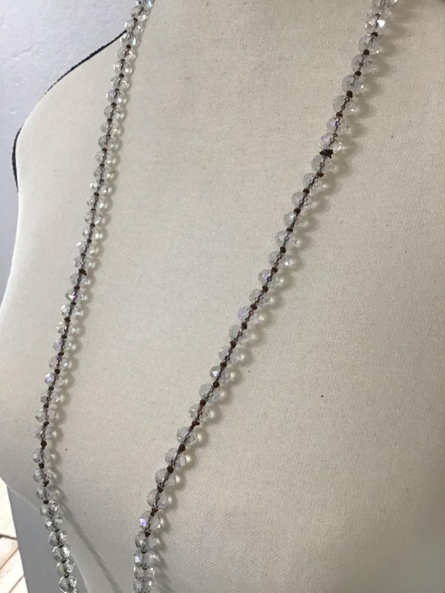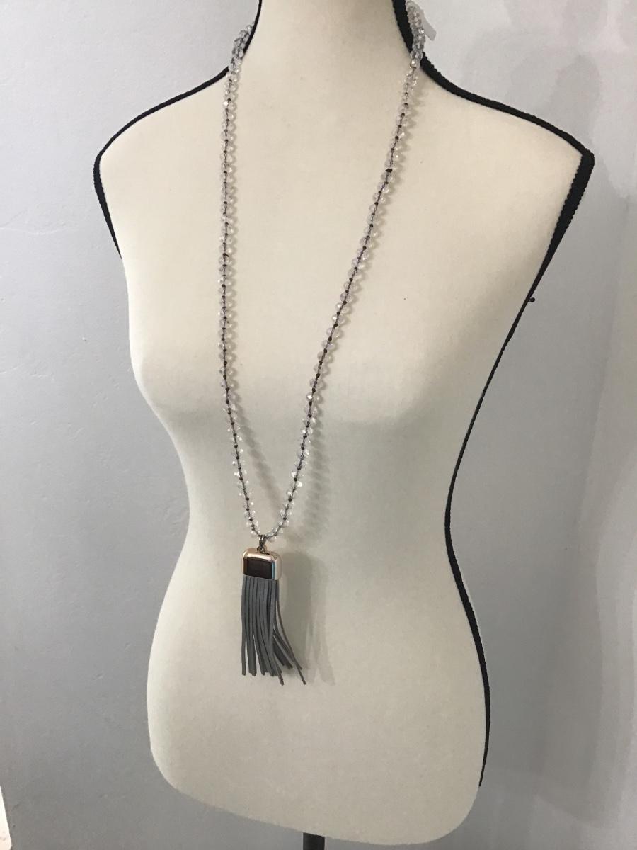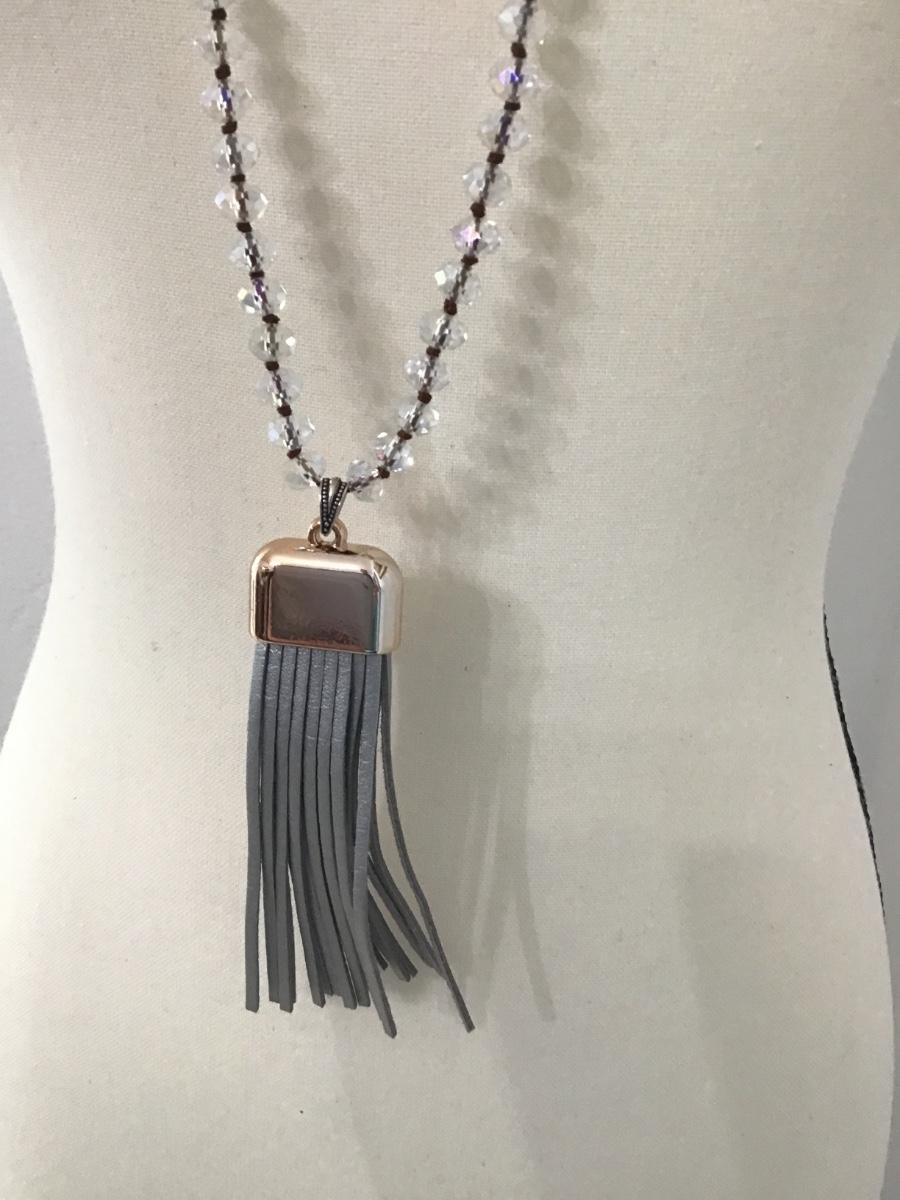 Gorgeous, clear, crystal bead necklace with silver tassel pendant