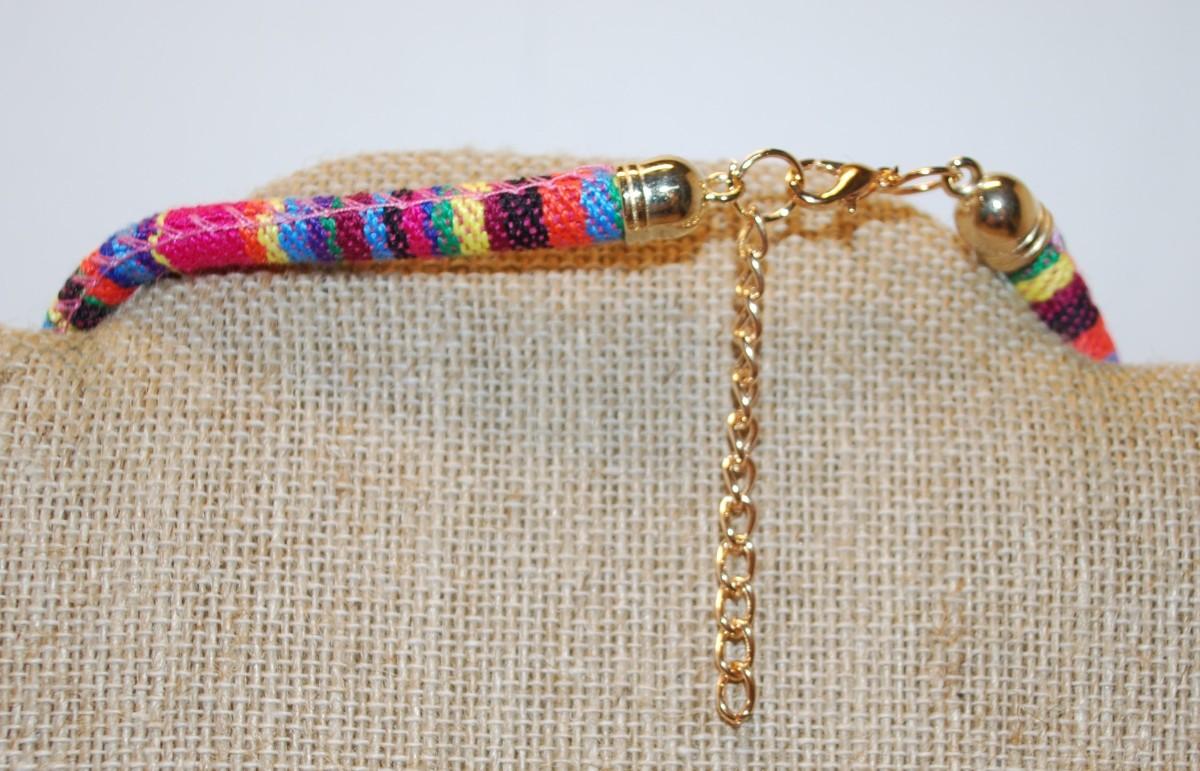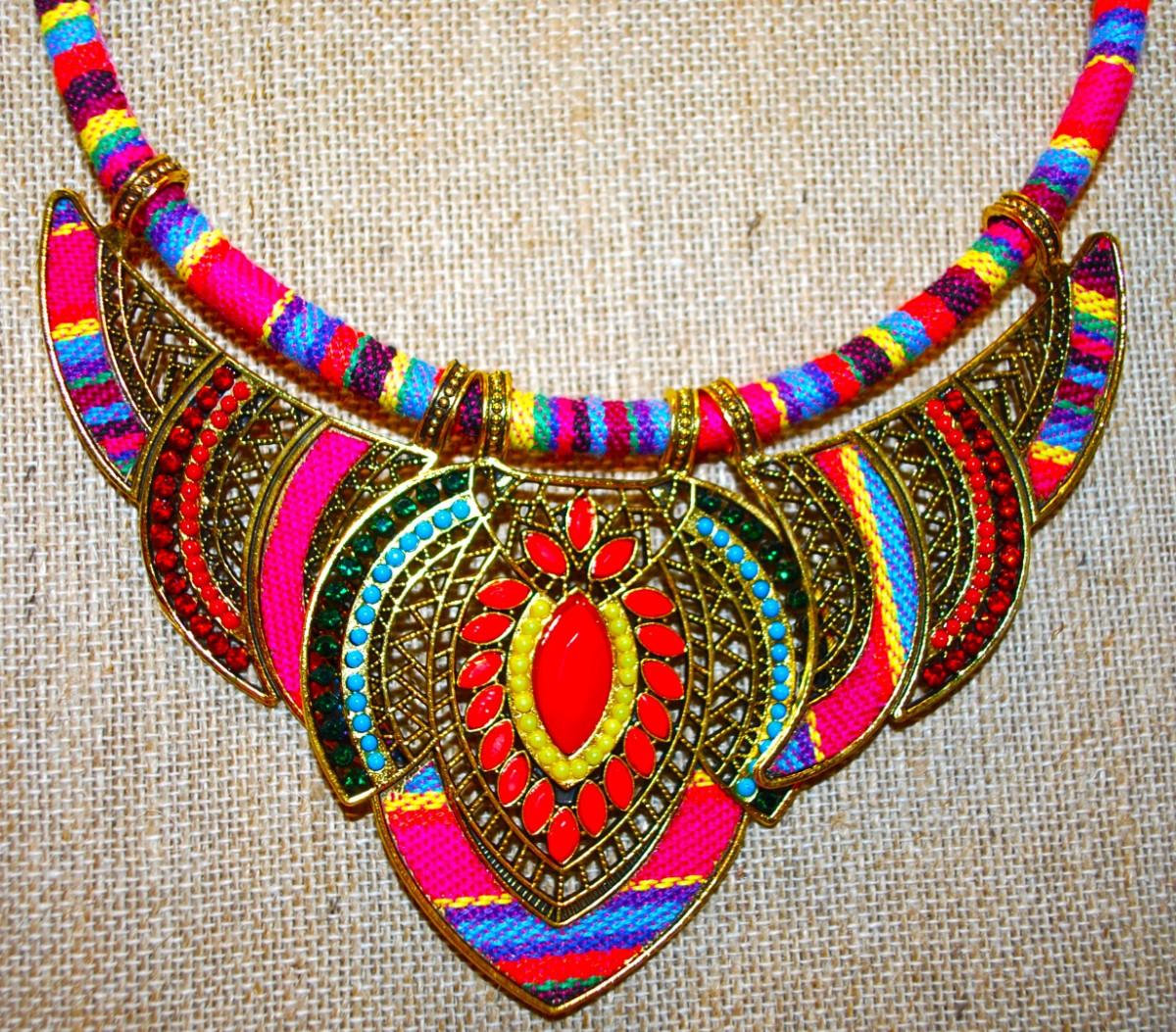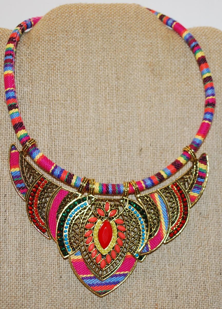 Gorgeous Colorful Tribal Style Necklace Size: 12" Neck Size & 3 Moveable Metal Accents 7" Across