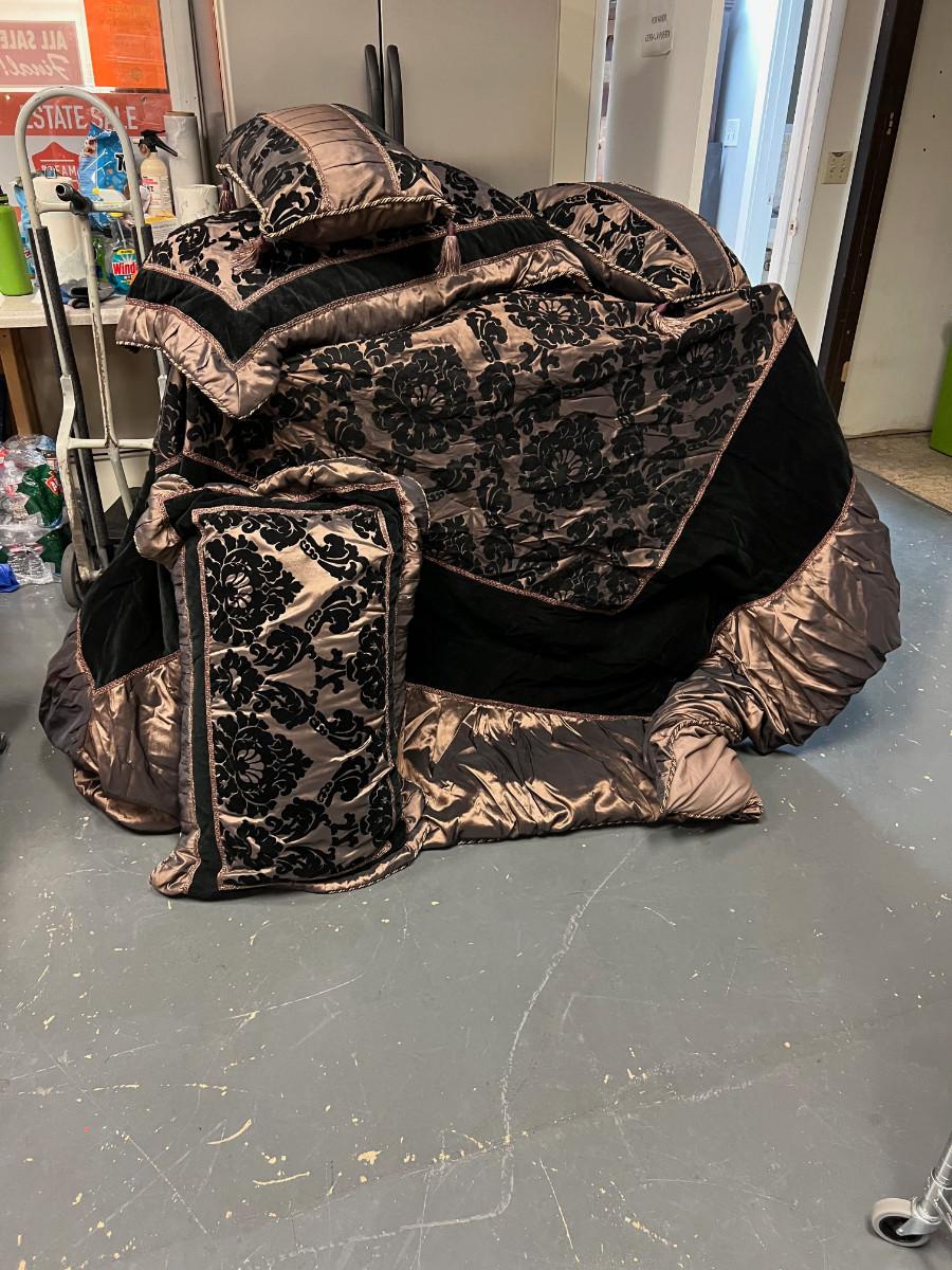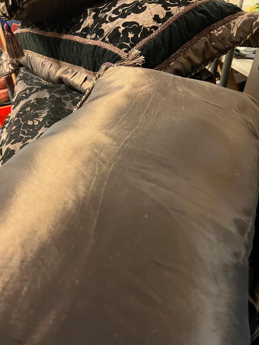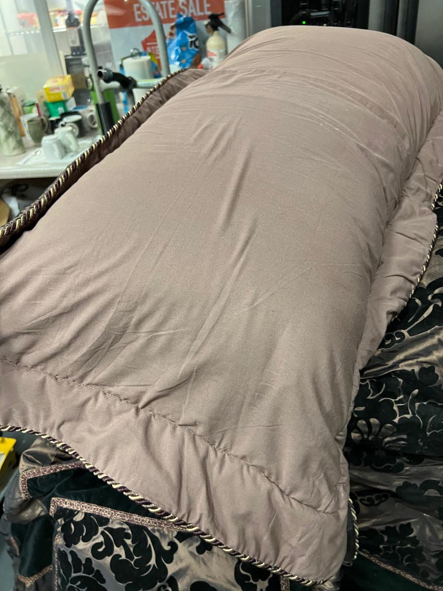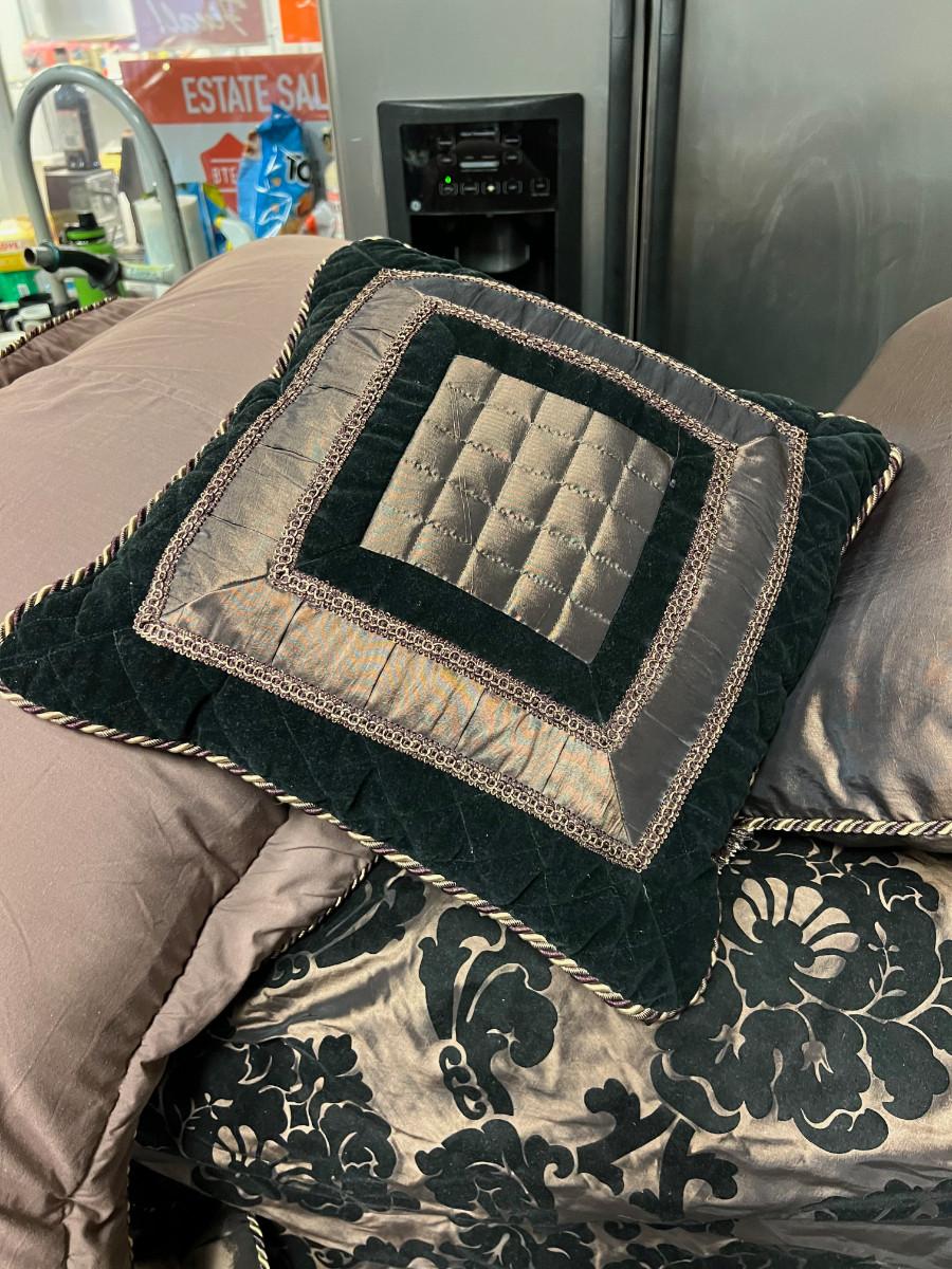 110" x 96 Good Condition 2 King Pillows and 3 Throw Decorative Pillows. Nice Set!