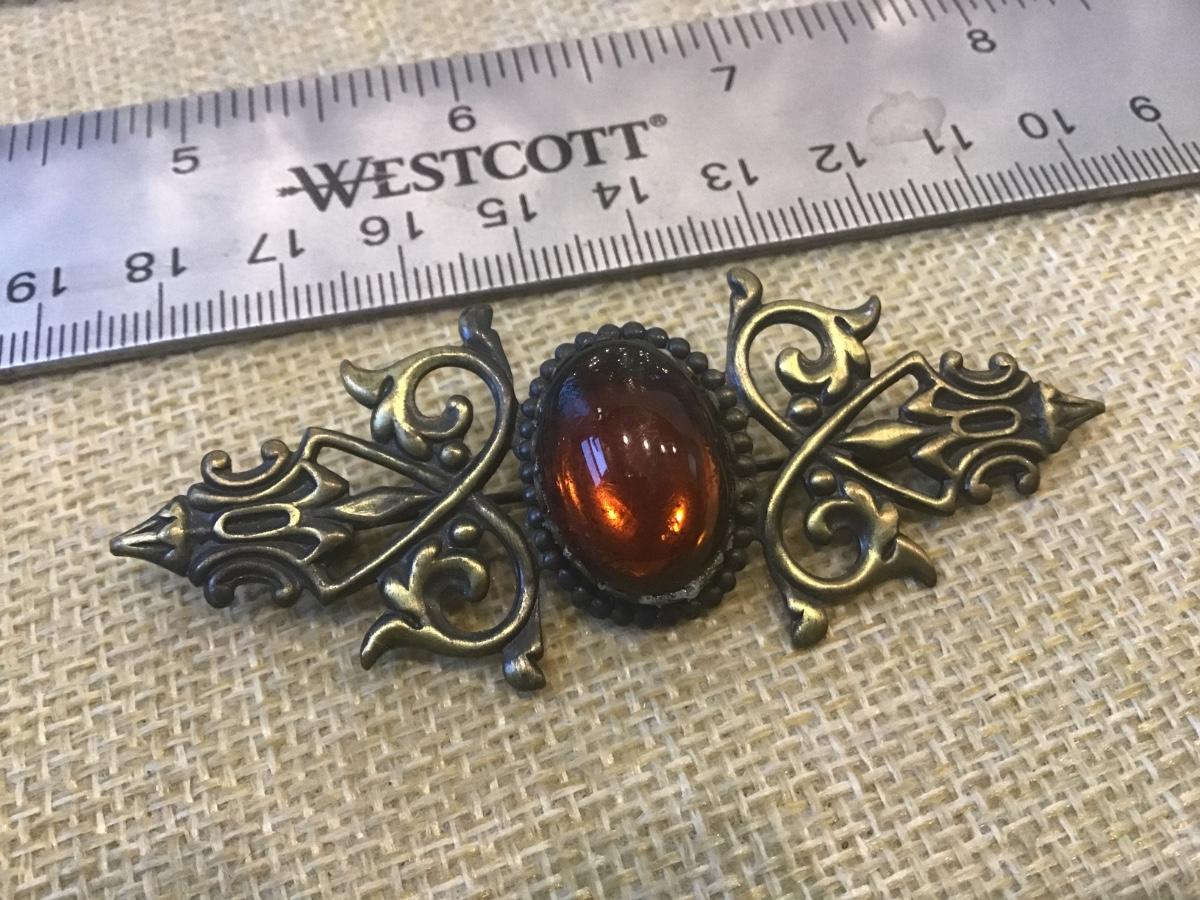 GORGEOUS Cranberry Glass Cabochon Vintage Brooch Pin