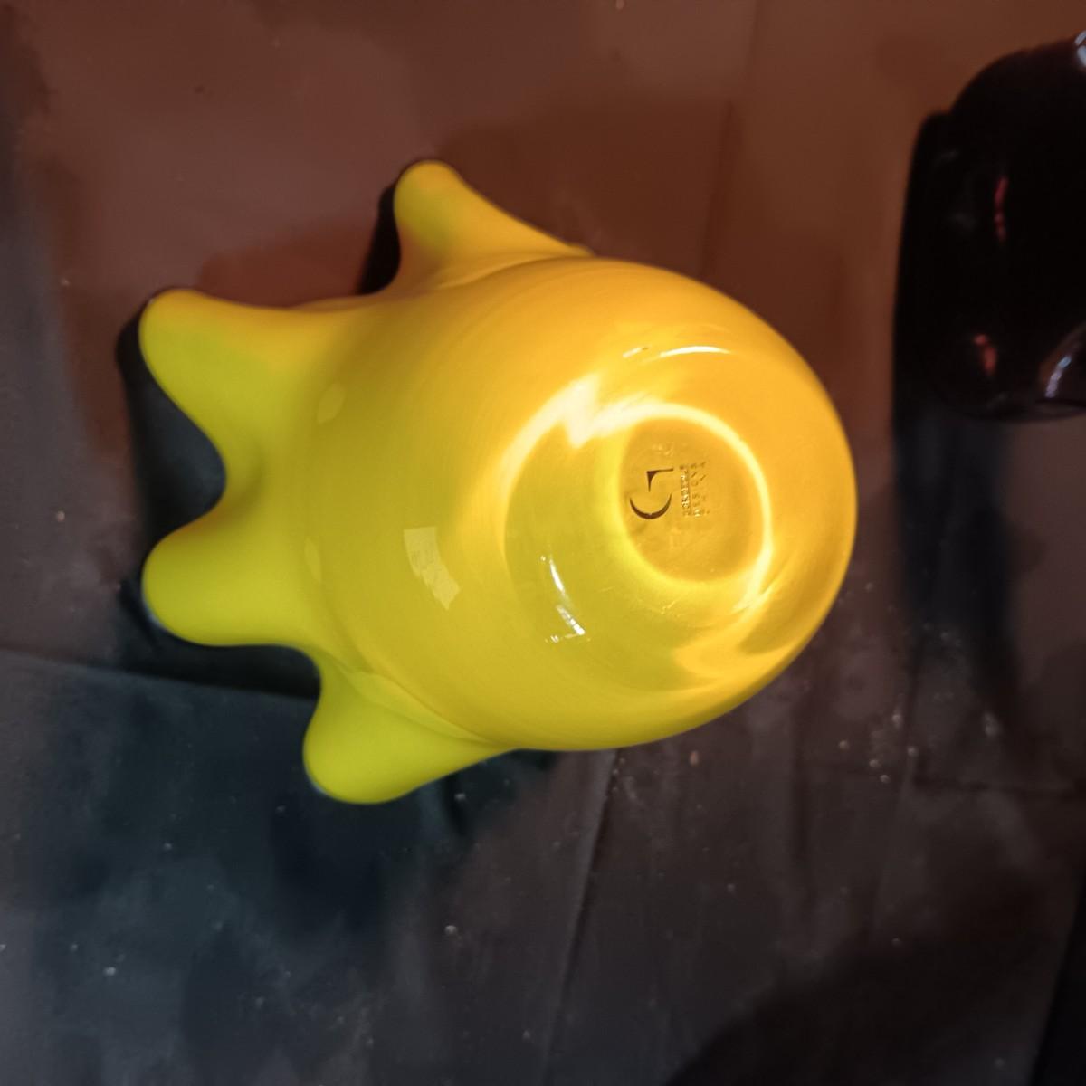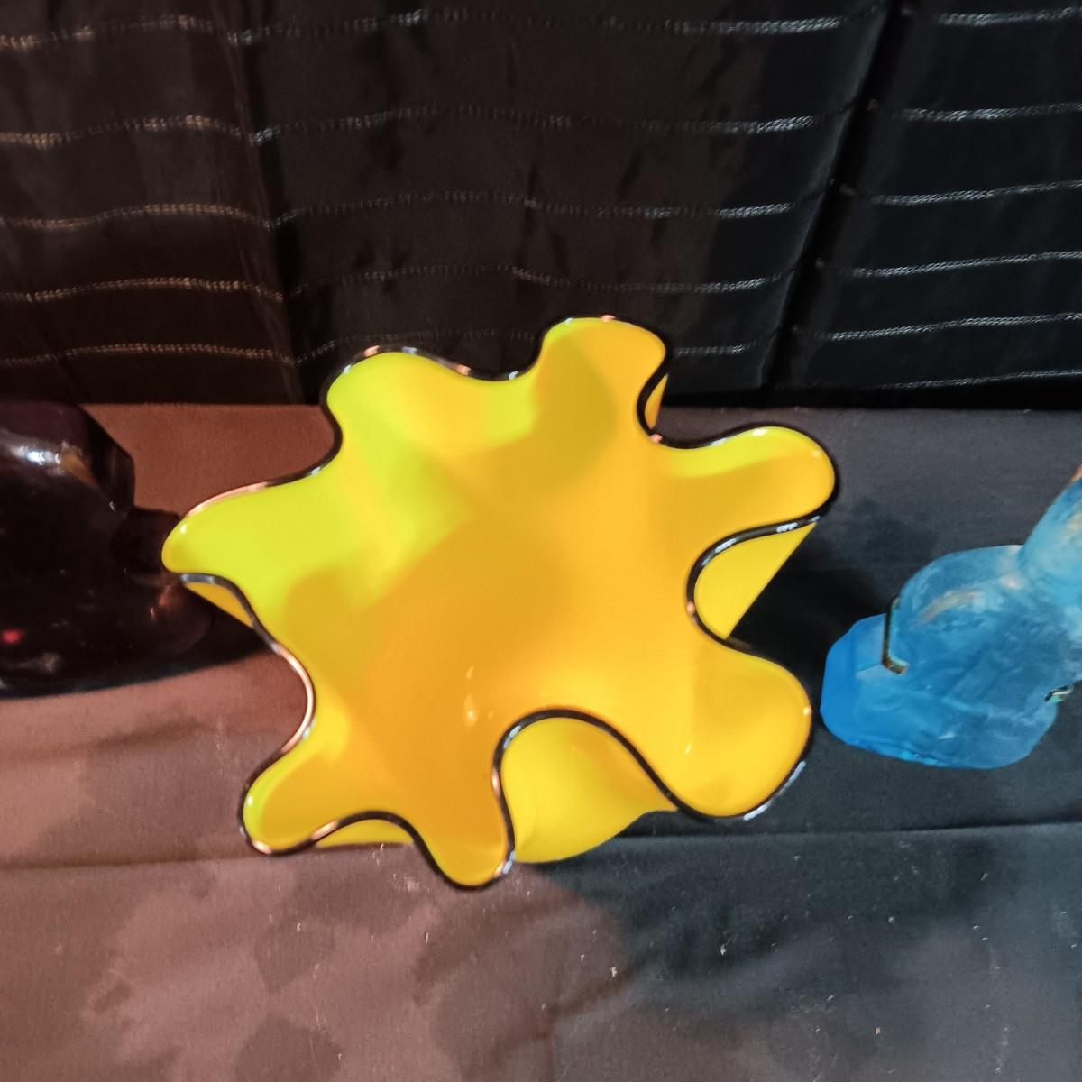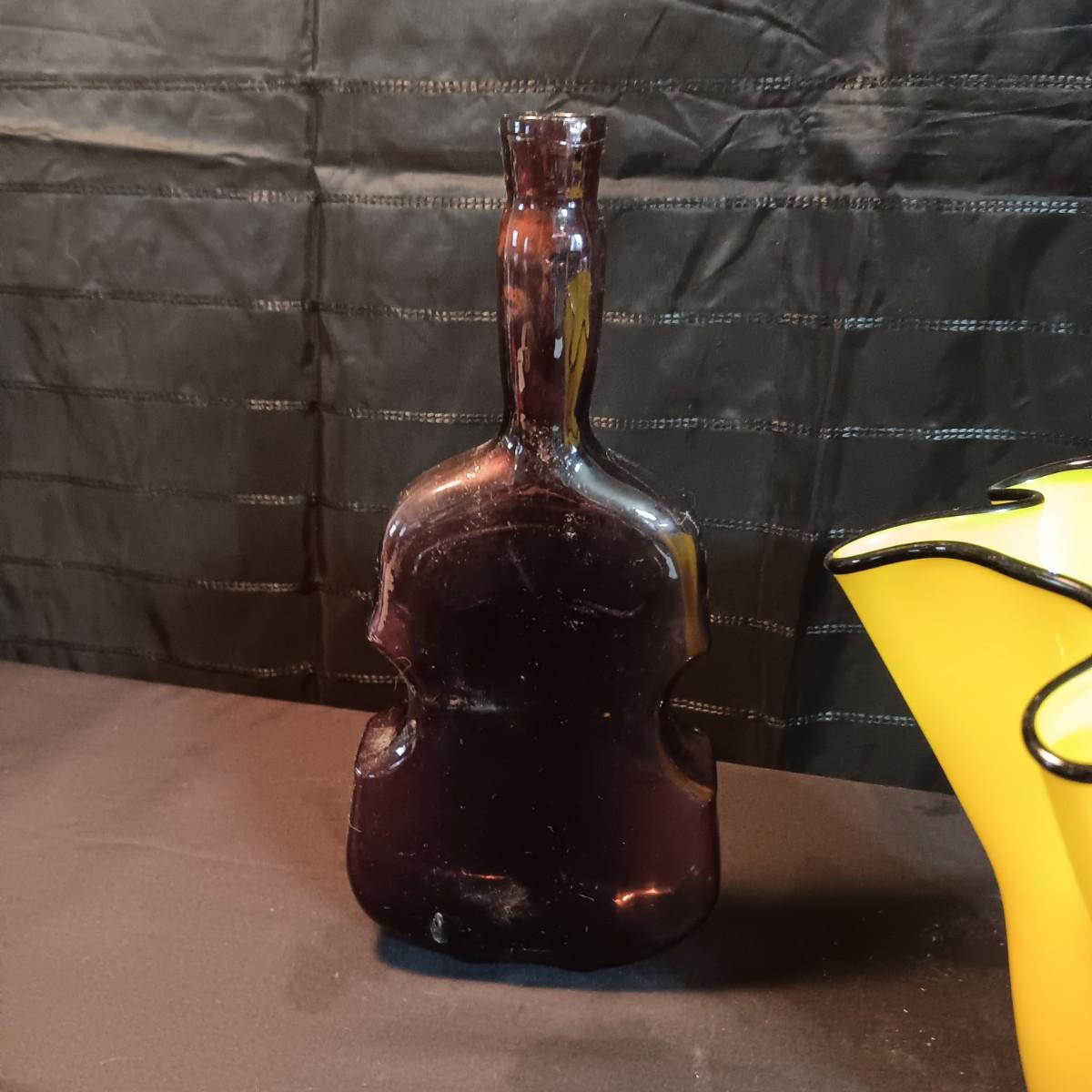 GORGEOUS DESIGNS RUFFLED VASE AND 2 GLASS CELLO SHAPED BOTTLES