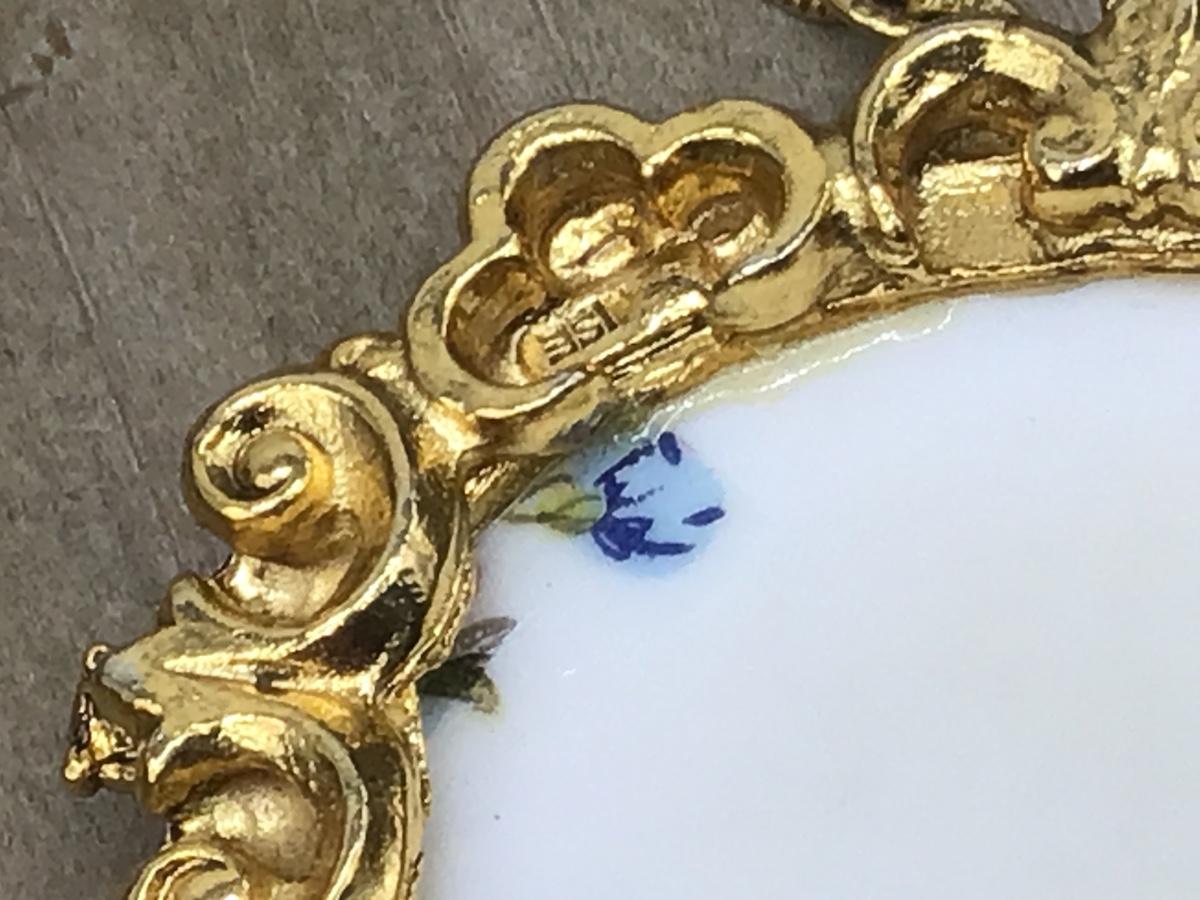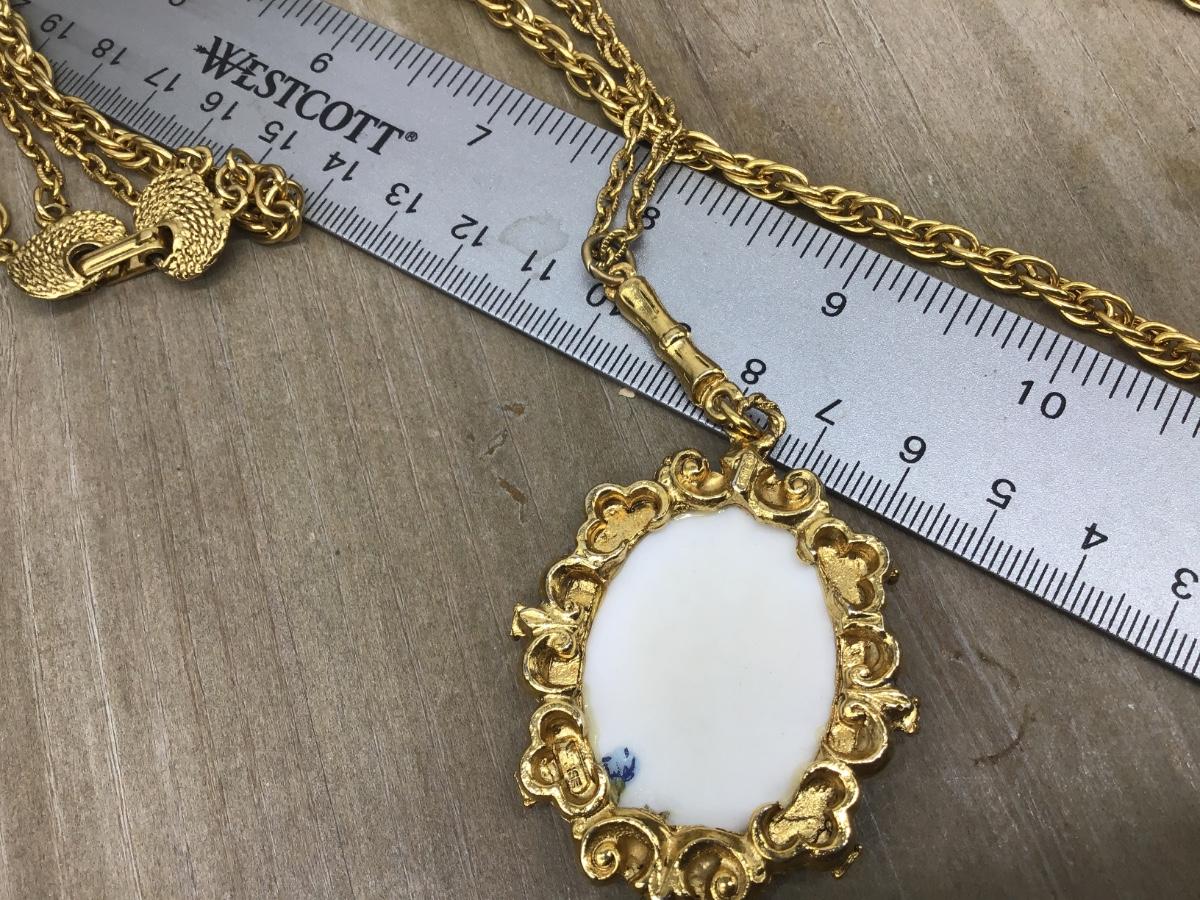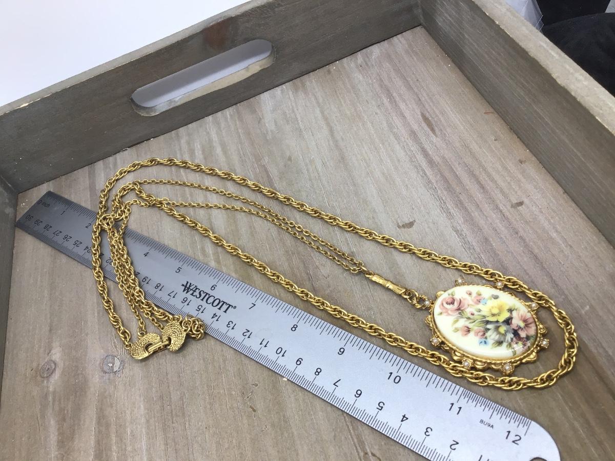 Gorgeous Double Strand Necklace With ceramic Floral Pendant Vintage signed Denise