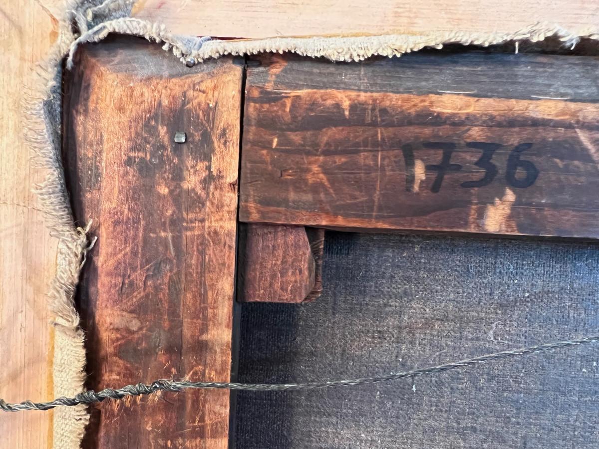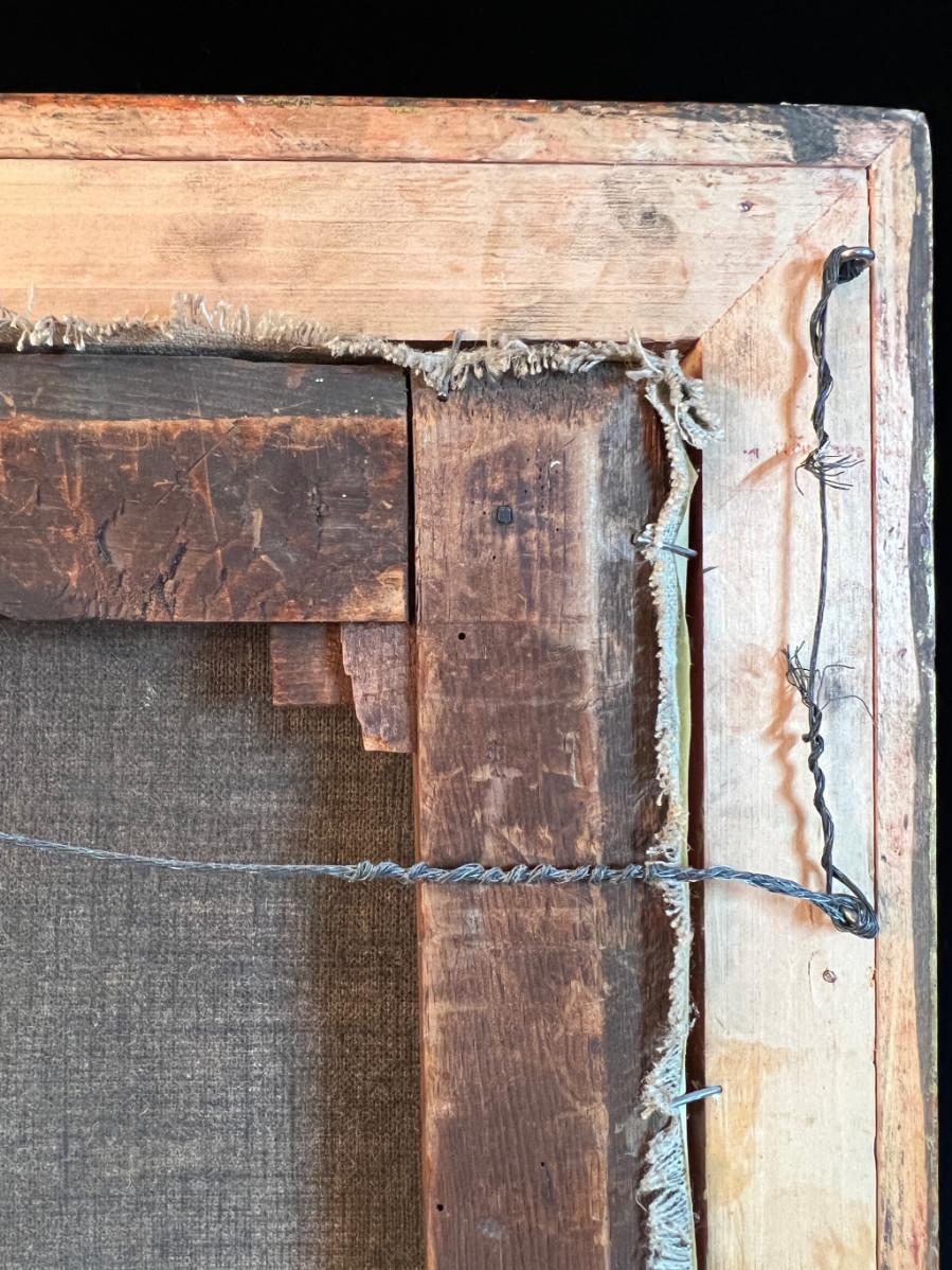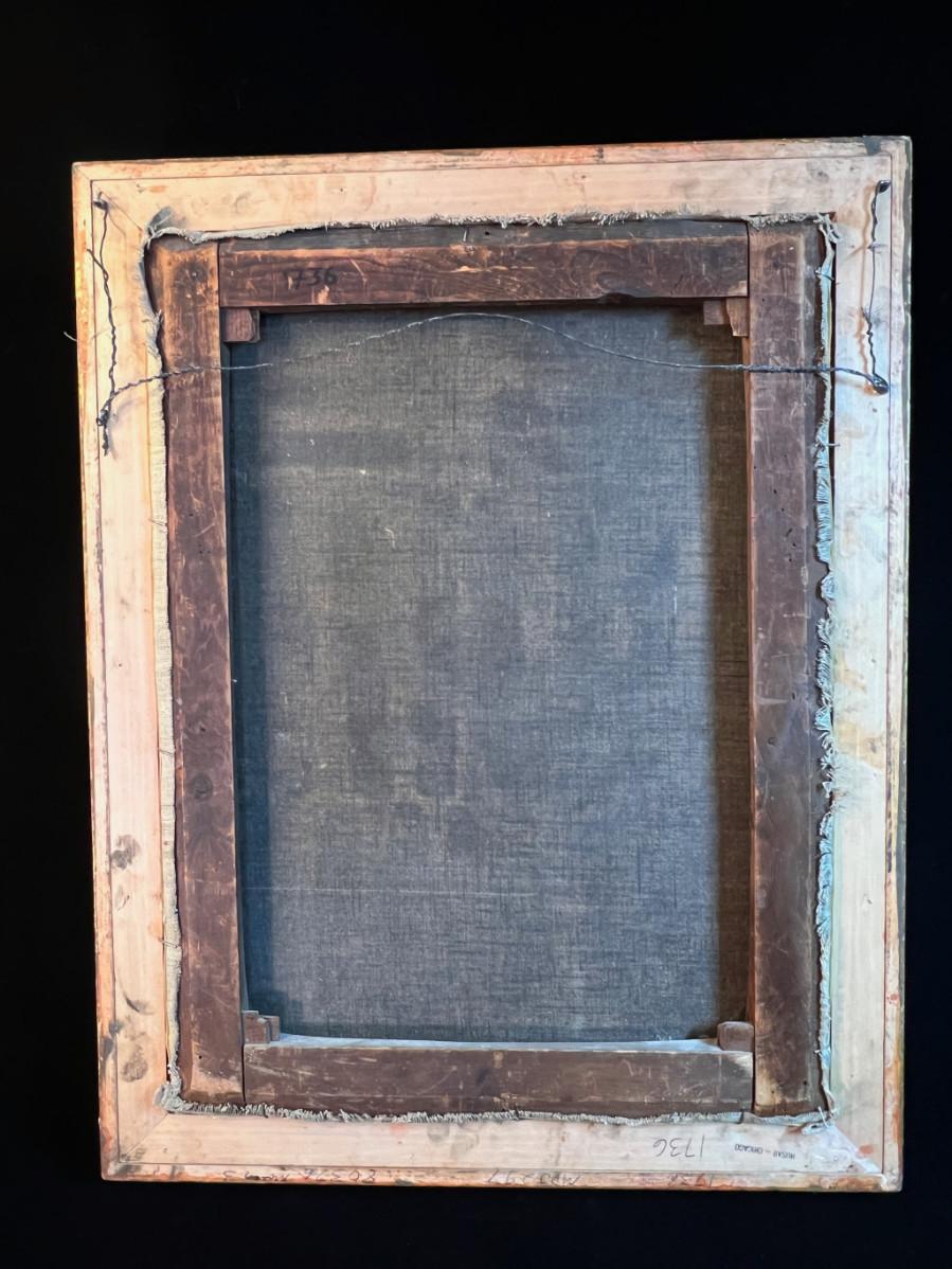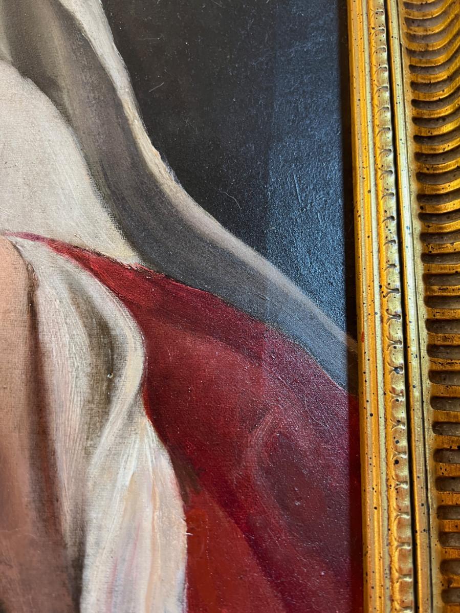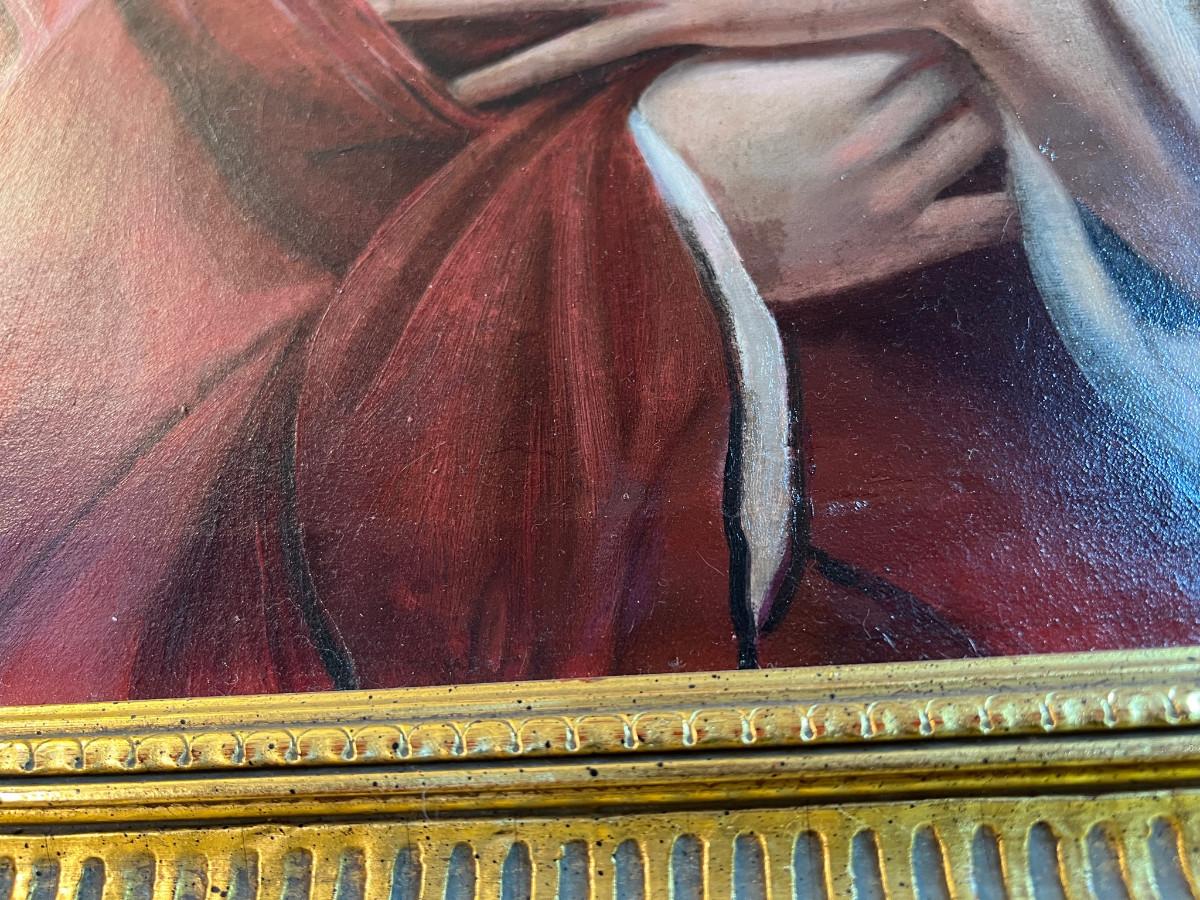 CONDITION: The painting appears to have had very professional restorations and has been re-lined, making the painting structurally sound while restoring the adoring image to good condition.