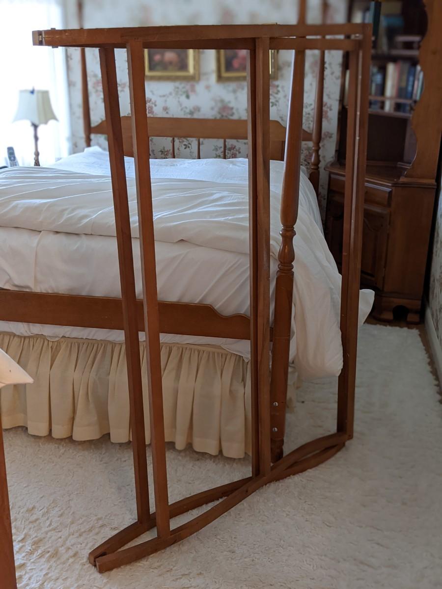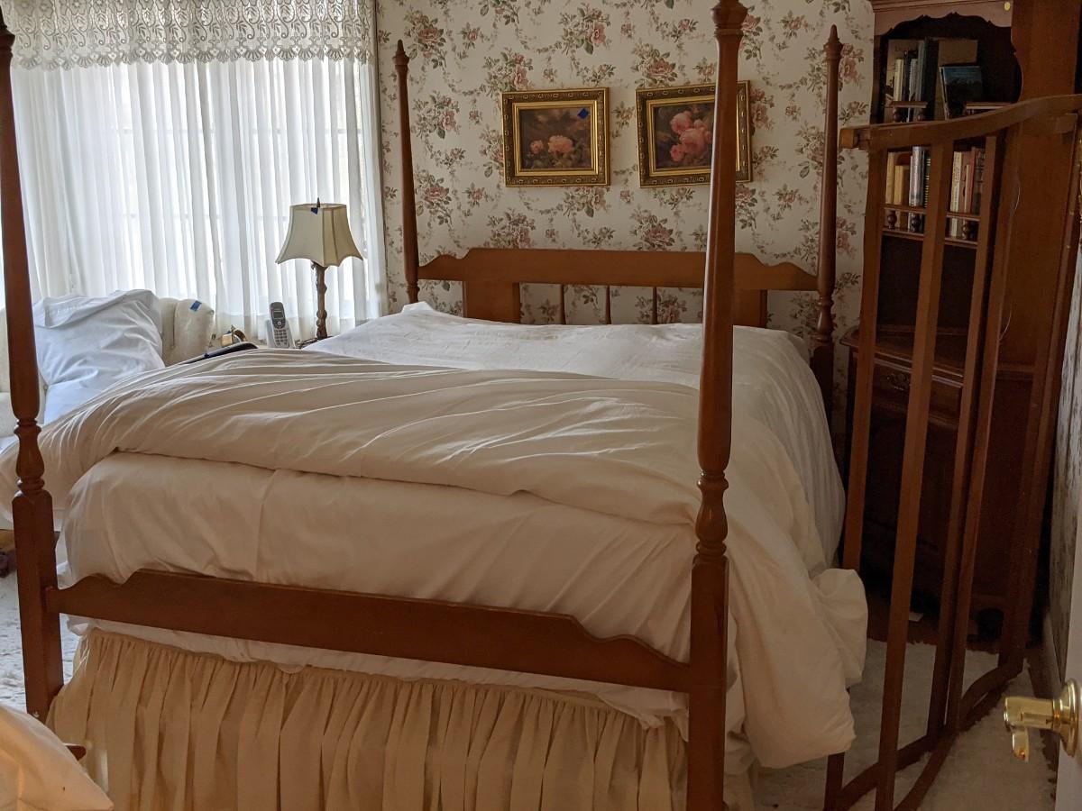 Gorgeous Ethan Allen Maple Four Poster Canopy Dbl Bed. Includes newer mattress and all bedding.