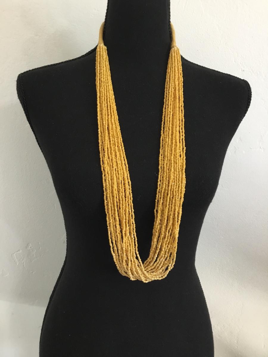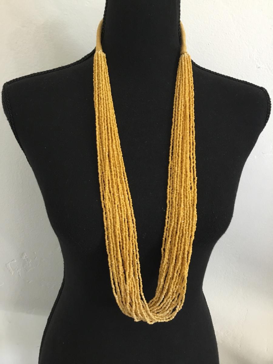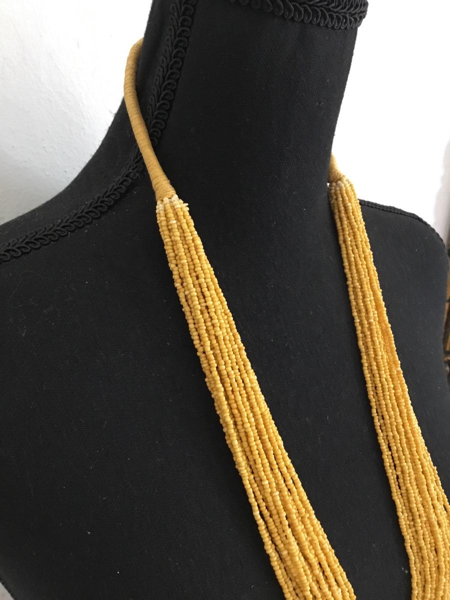 Gorgeous, ethnic, multi layered mustard, yellow Seed bead statement necklace