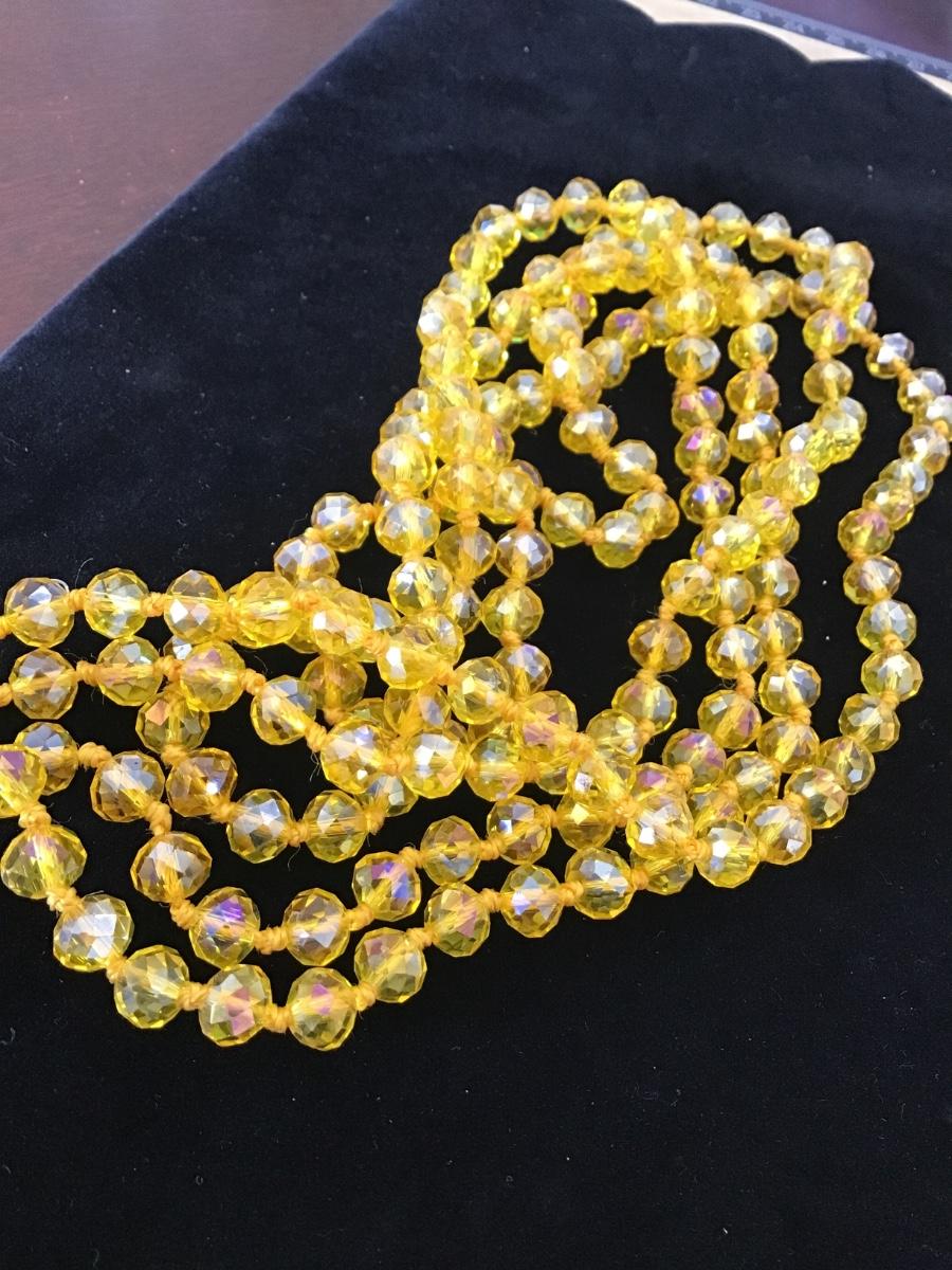 Gorgeous Faceted Knotted Canary Yellow Necklace Vintage