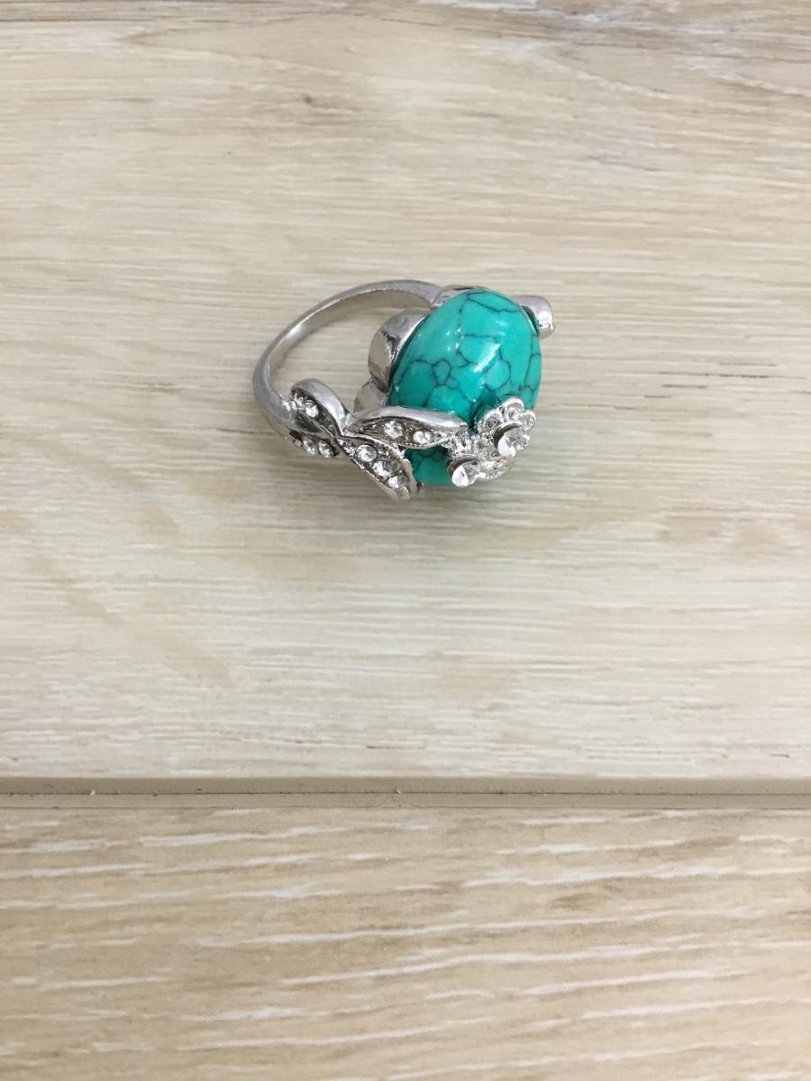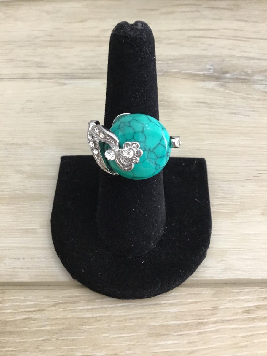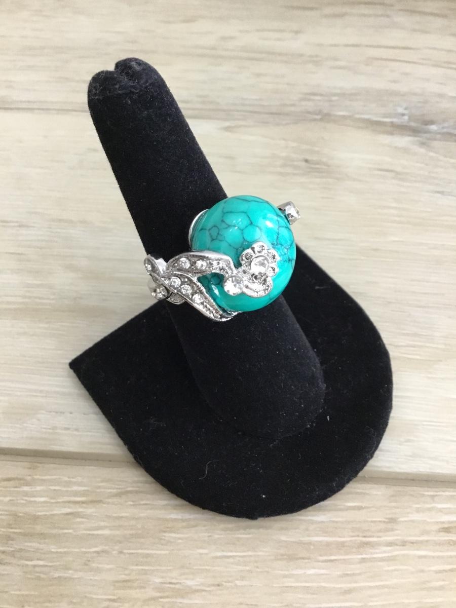 Gorgeous Faux turquoise stone Silvertone encrusted with rhinestones women’s fashion ring