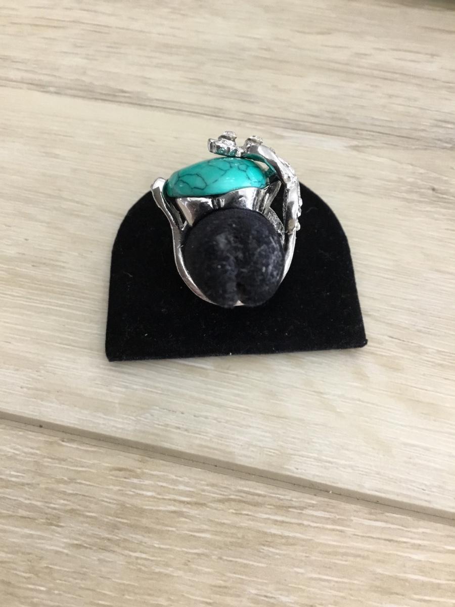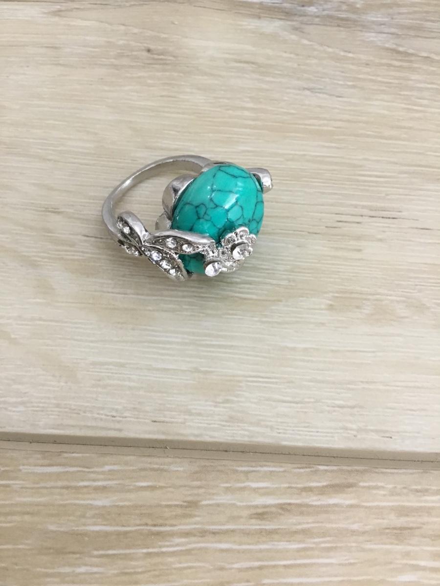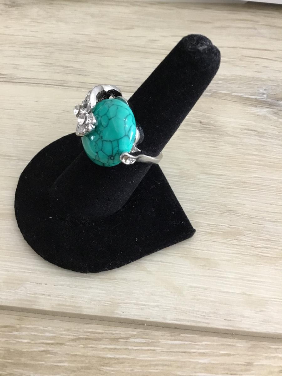 Gorgeous Faux turquoise stone Silvertone encrusted with rhinestones women’s fashion ring