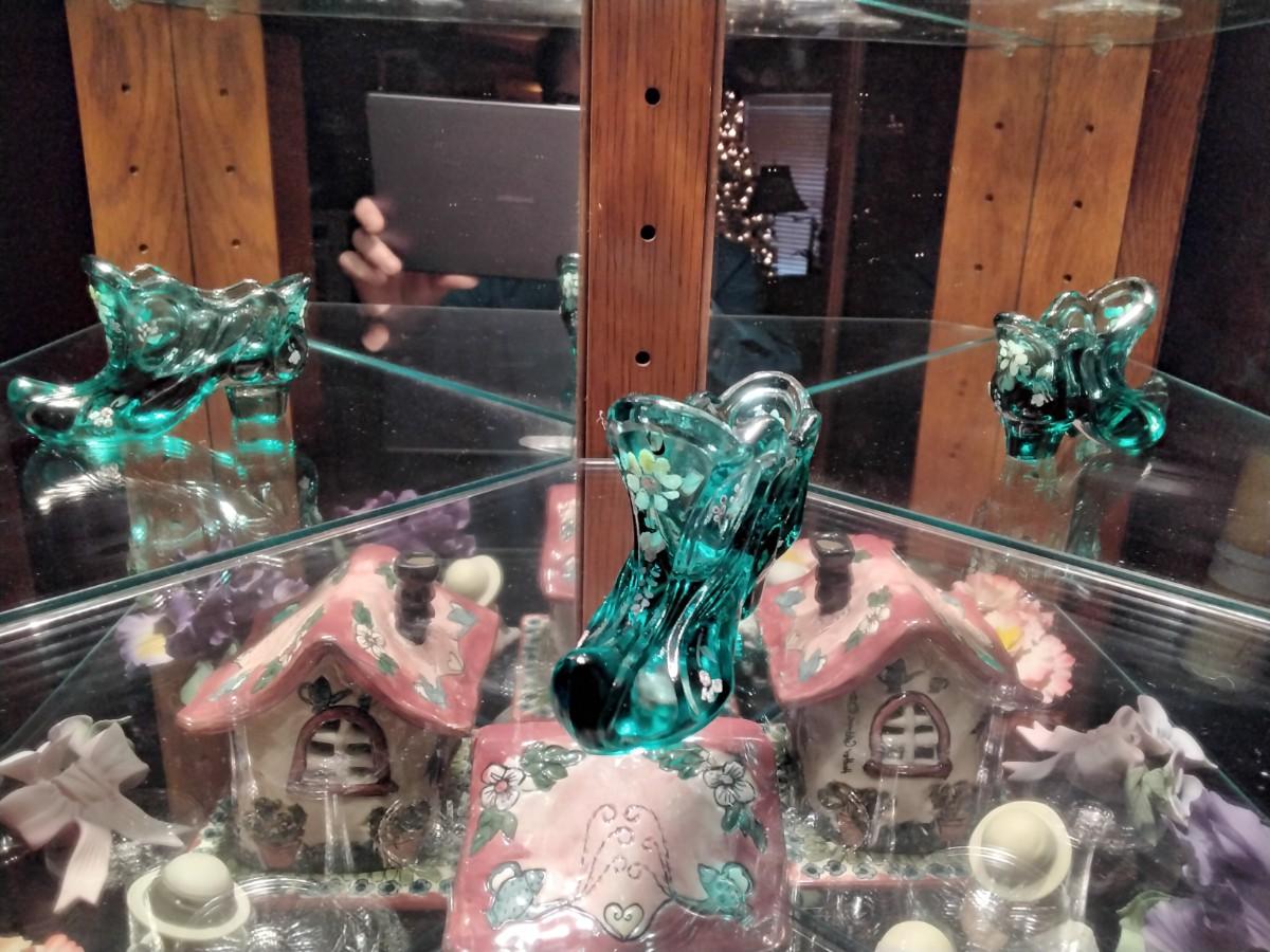 Gorgeous Fenton handpainted and signed Victorian shoe