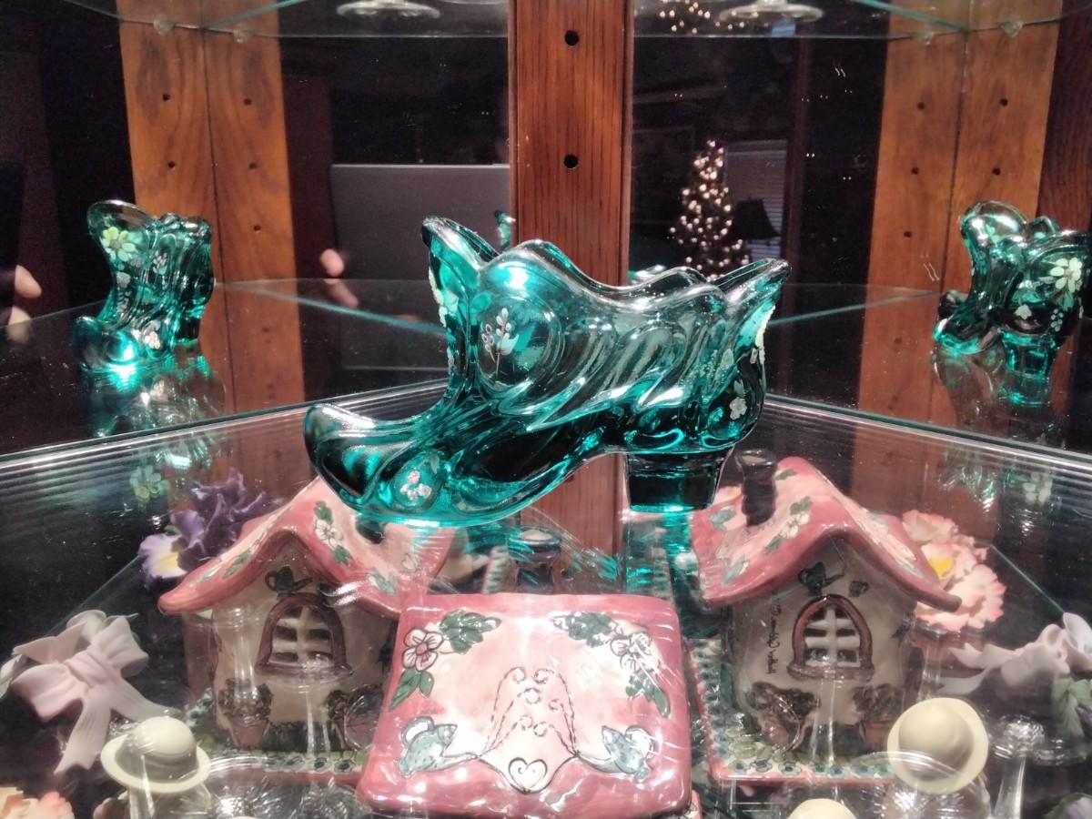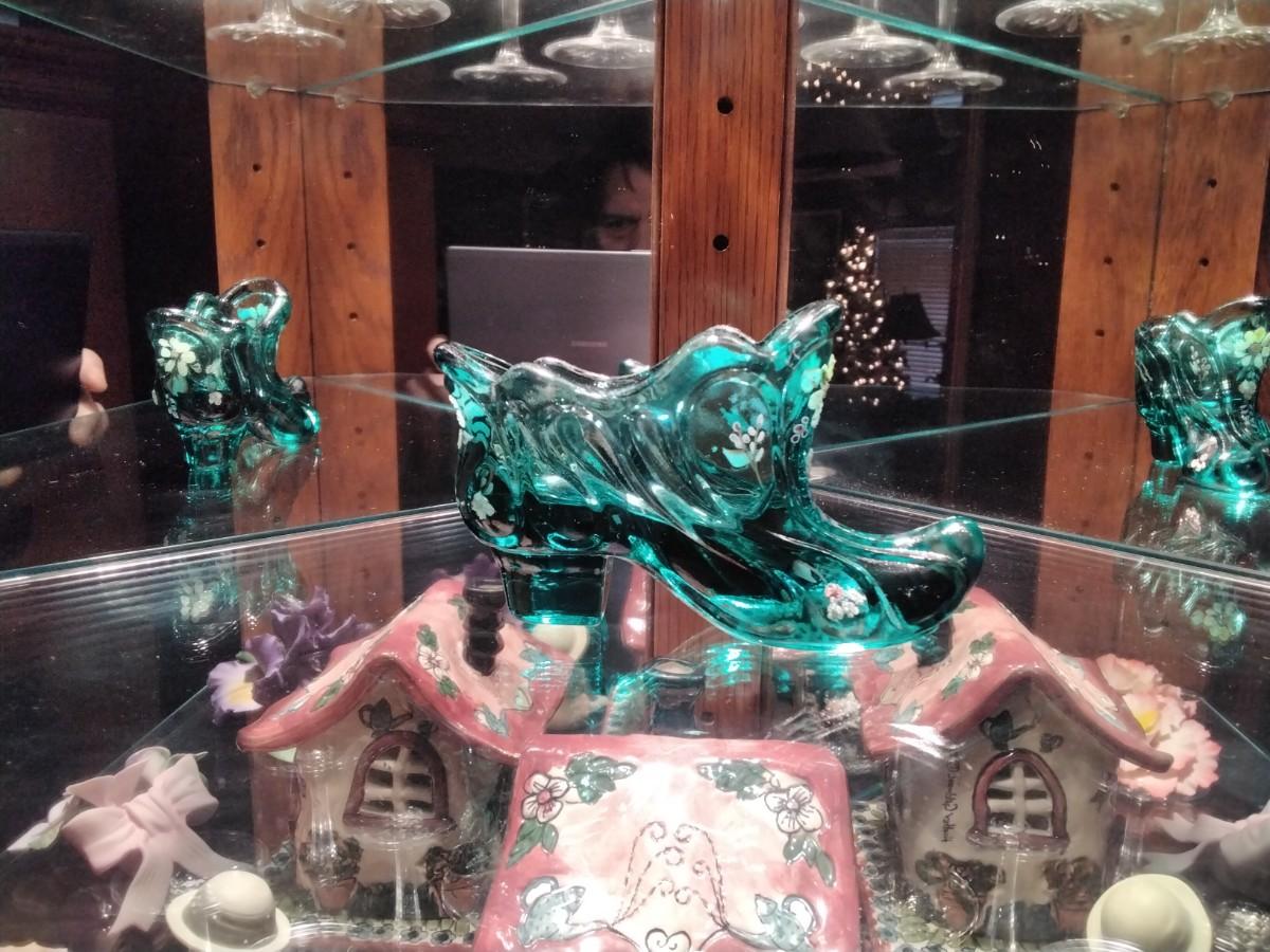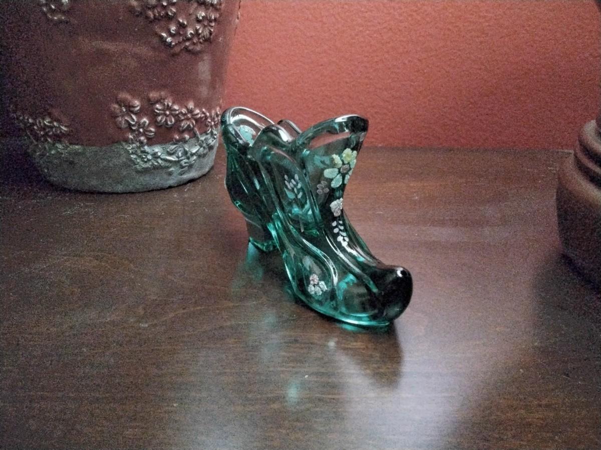 Gorgeous Fenton handpainted and signed Victorian shoe