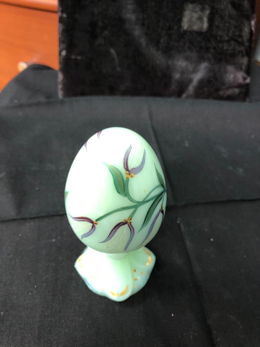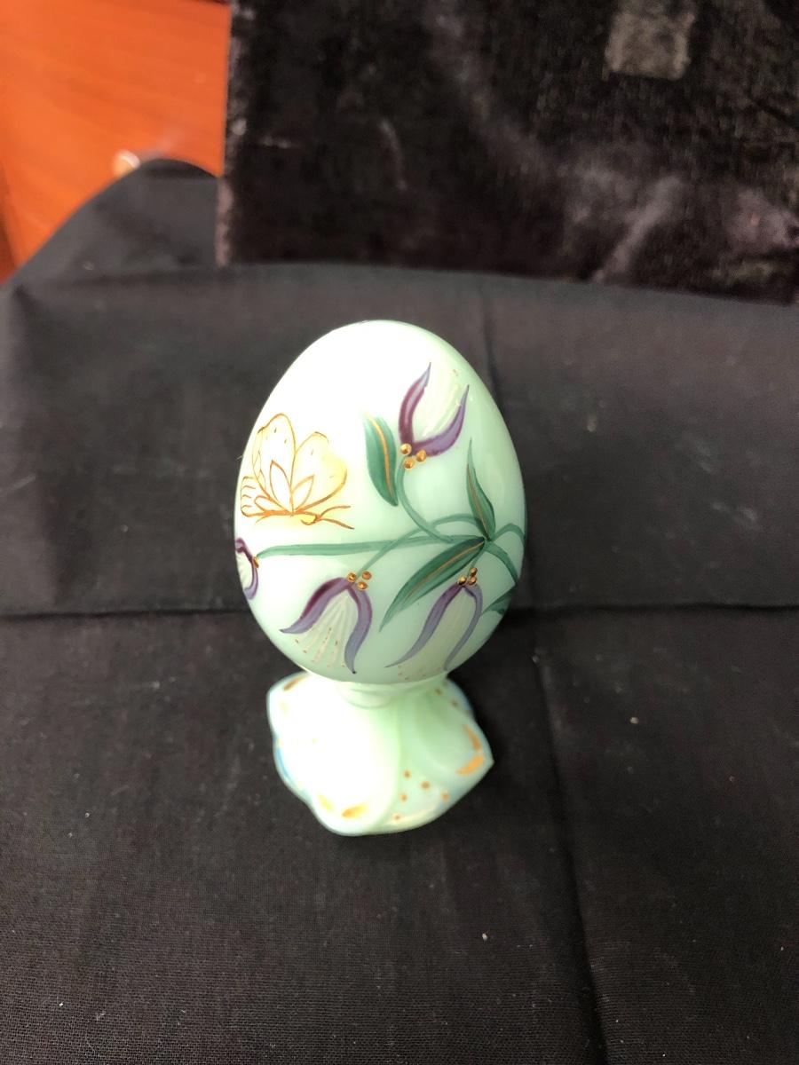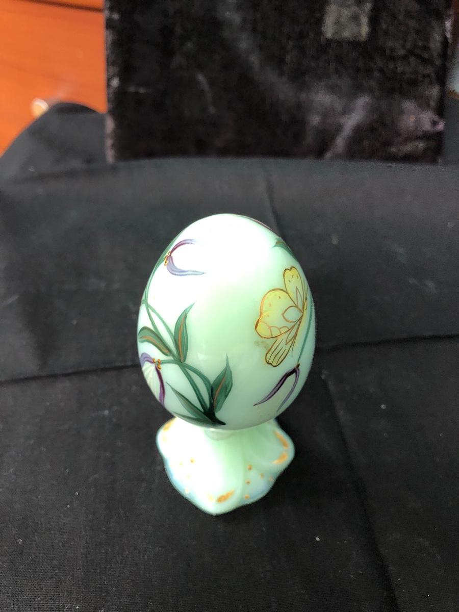 This hand painted sea green egg is stunning. Measures only 4” but rare and gorgeous