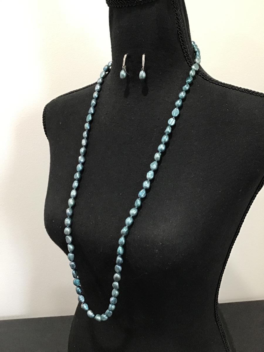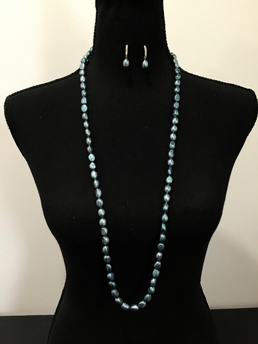 Gorgeous, genuine, freshwater, pearl necklace, and earring set