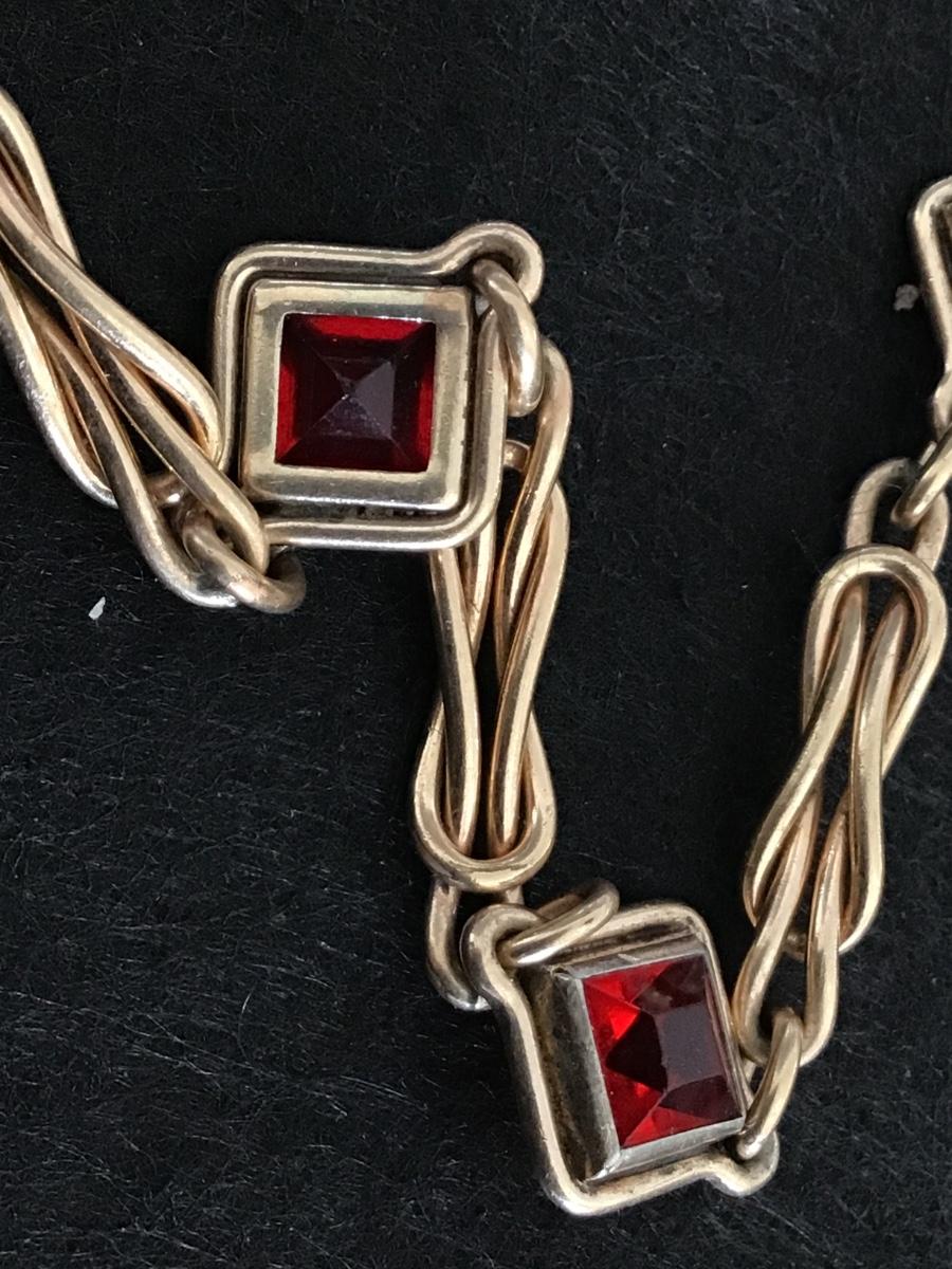 Gorgeous Gold Filled Marked Bracelet Red Stones