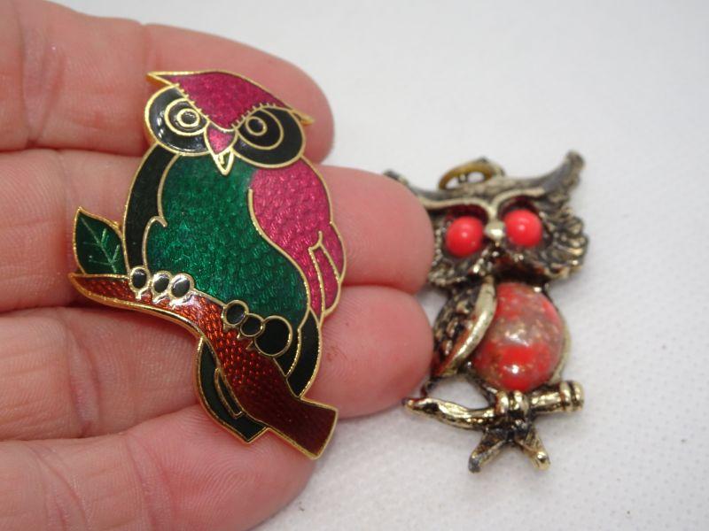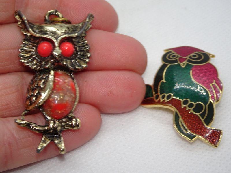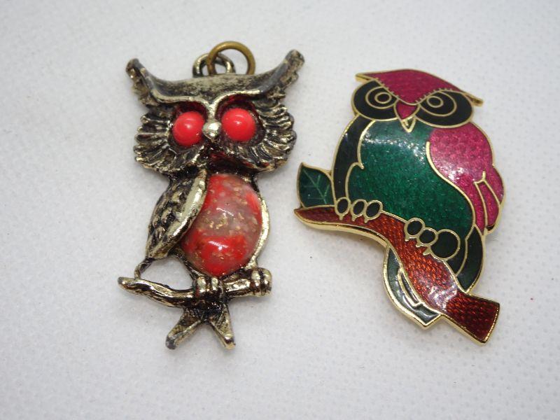 Pair of Owls - Pendant & Enamel Brooch, Hooters!