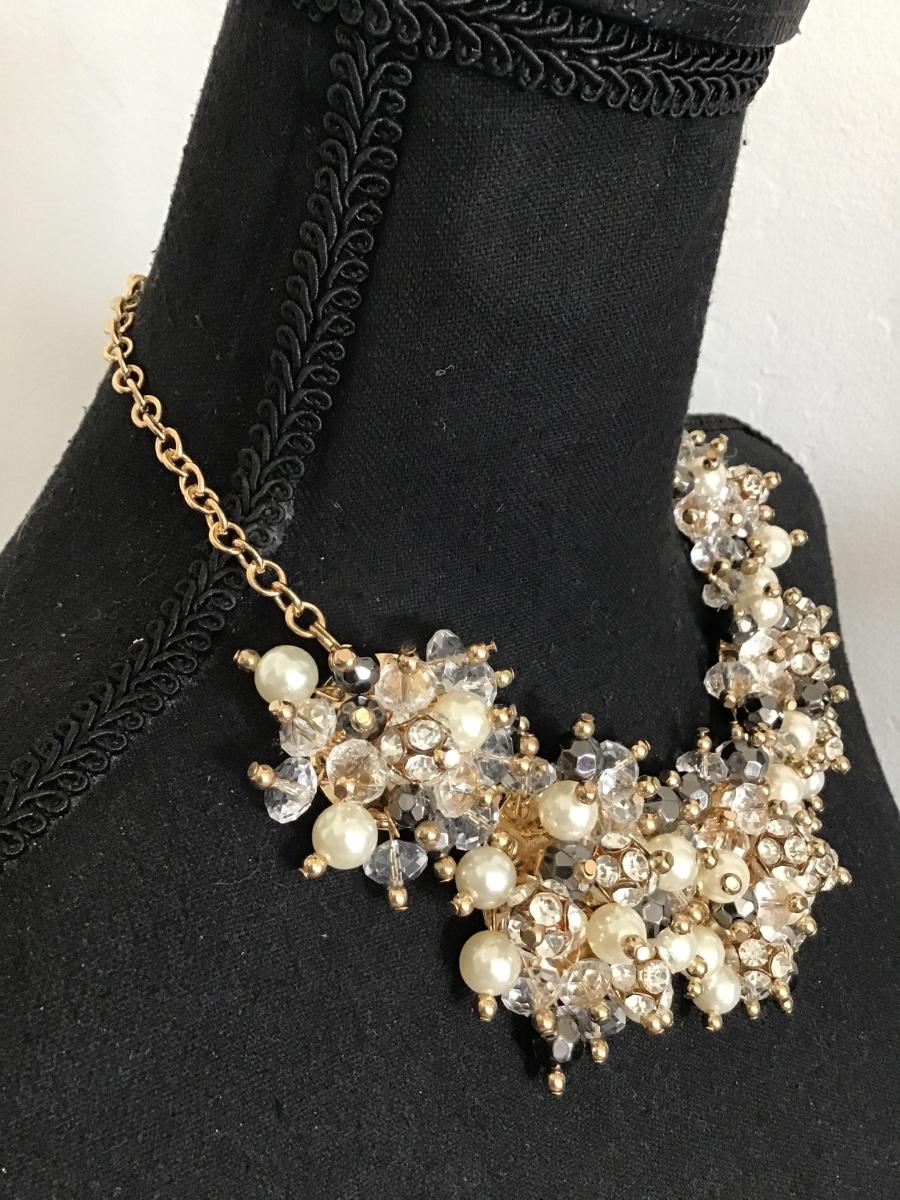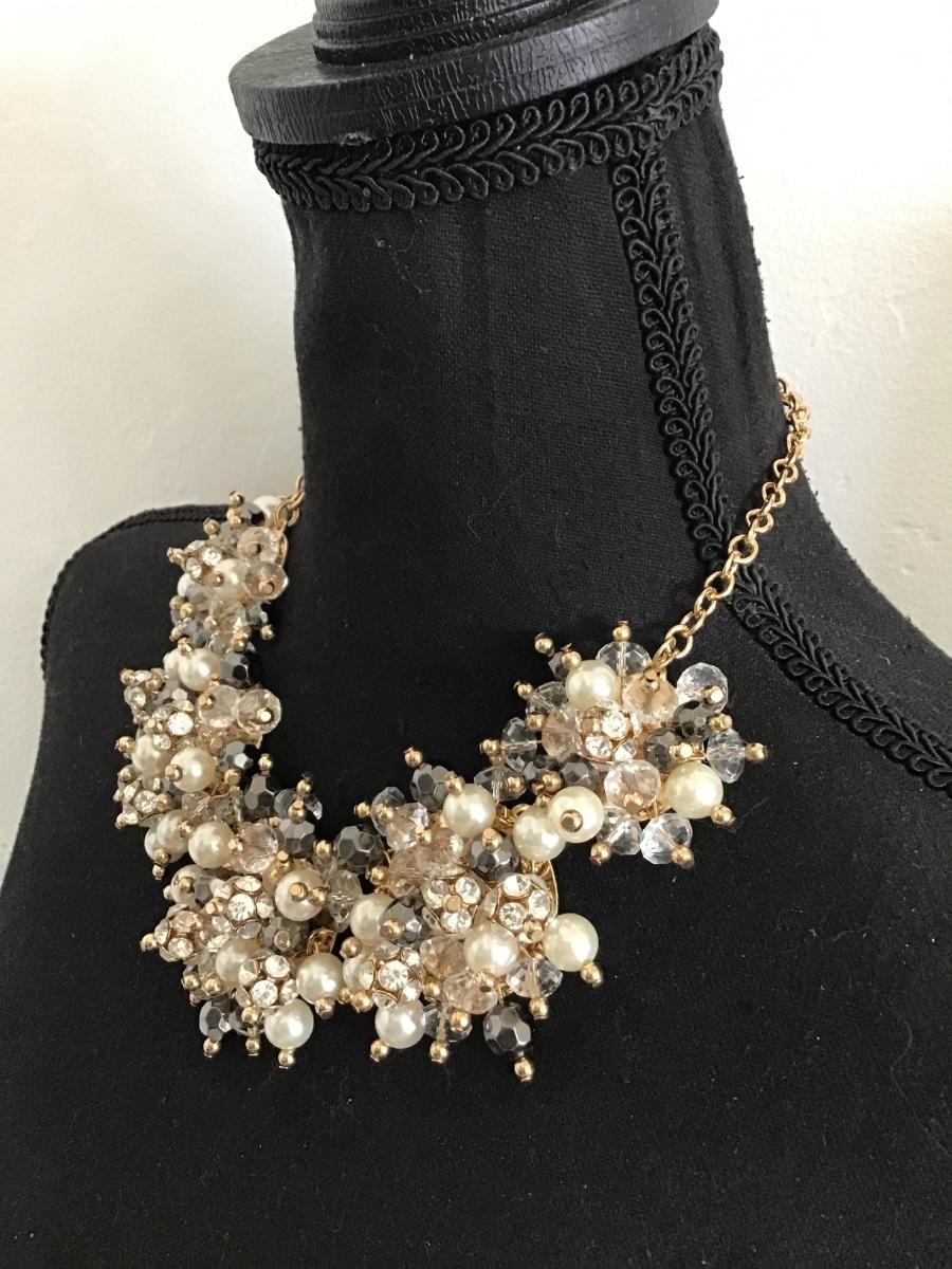 Gorgeous, gold tone crystal beaded, rhinestone, large statement, necklace