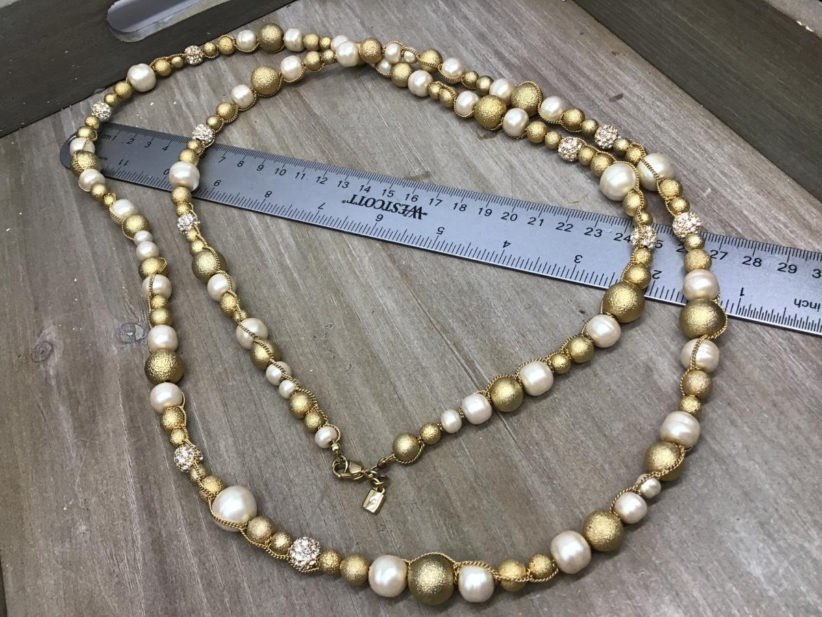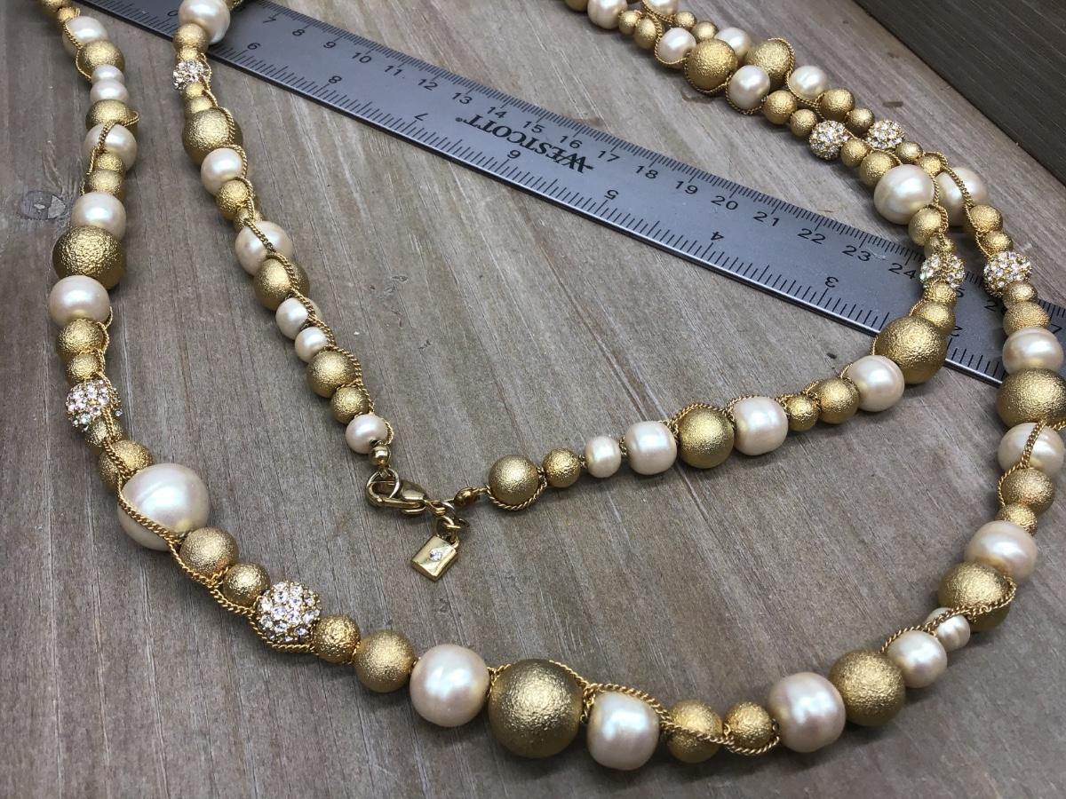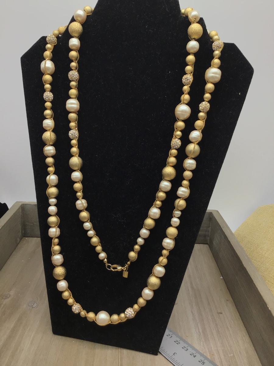 Gorgeous Gold Tone Pearl Faux Diamond Gold Beaded Necklace 🥰