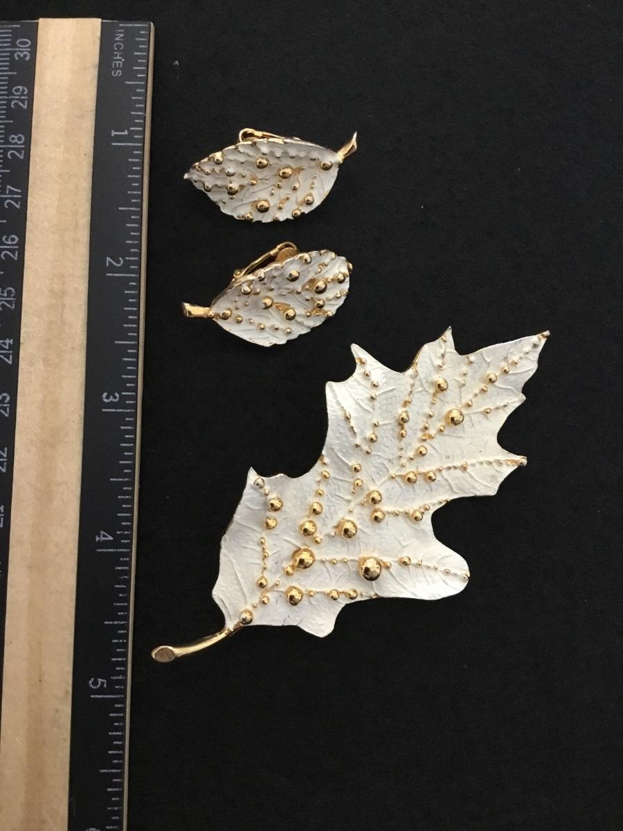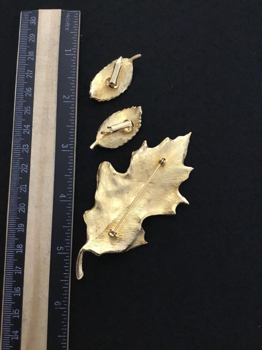 Gorgeous, gold tone, vintage leaf brooch, and clip on earrings