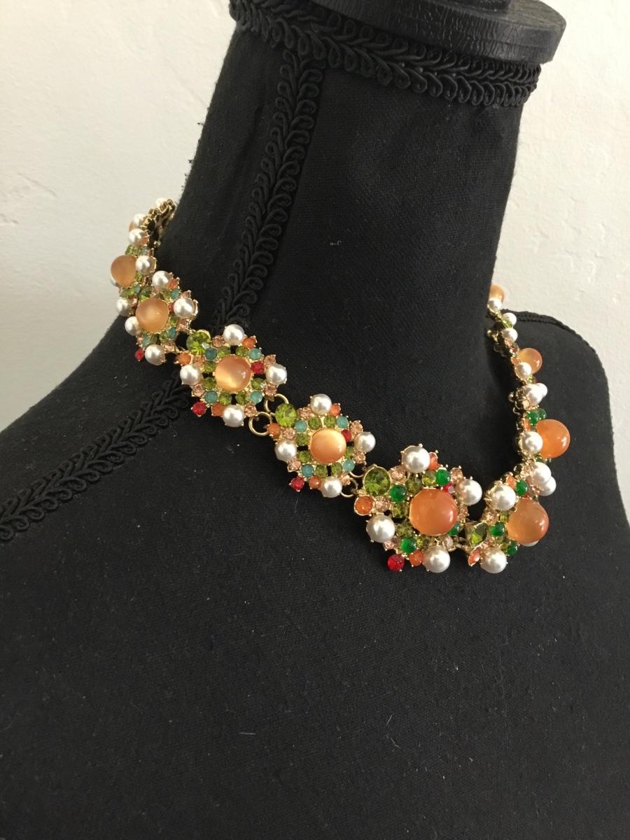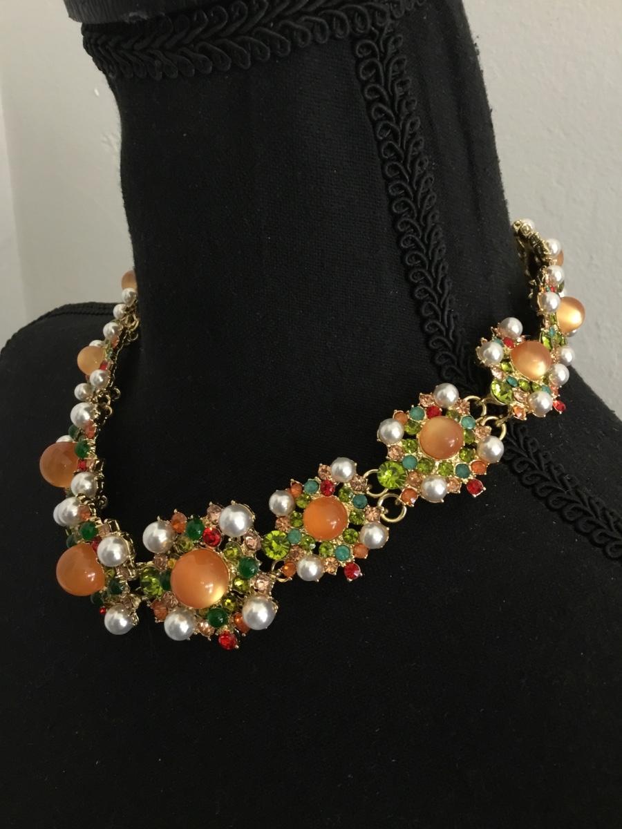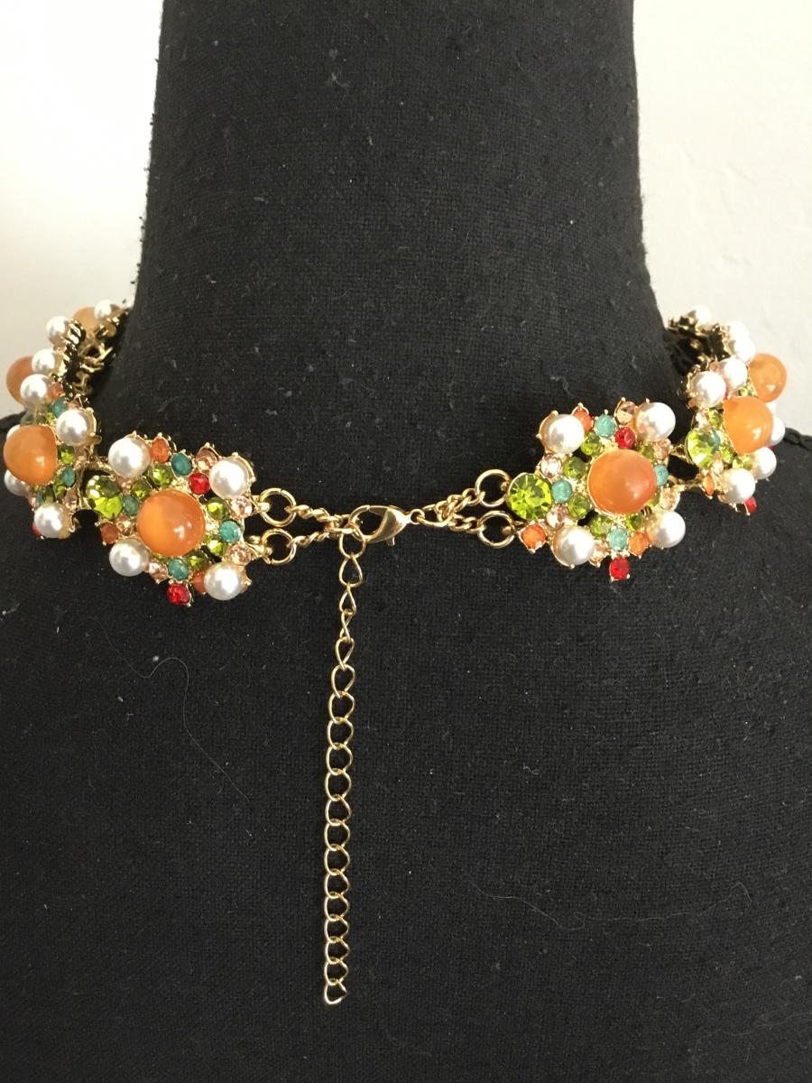 Gorgeous, gold, toned, multicolored, rhinestone statement, necklace