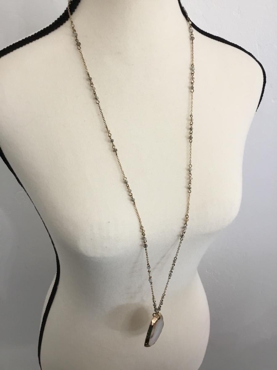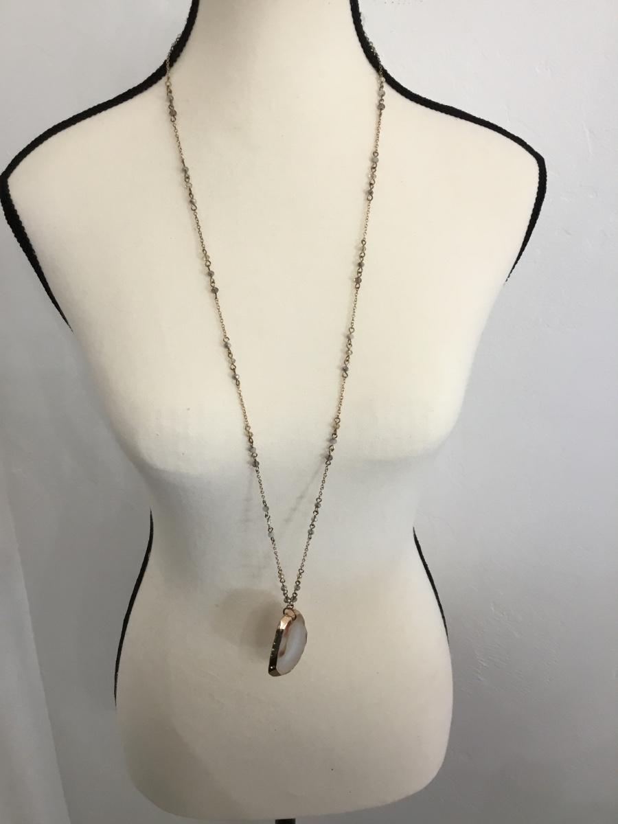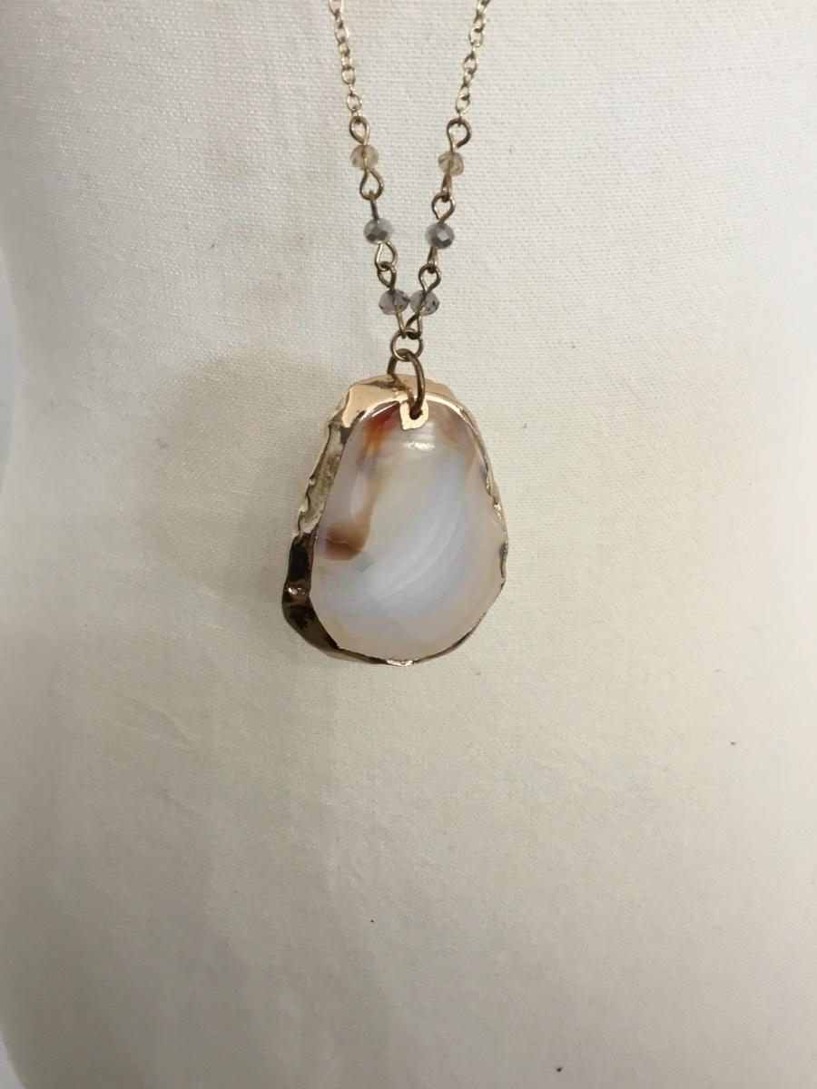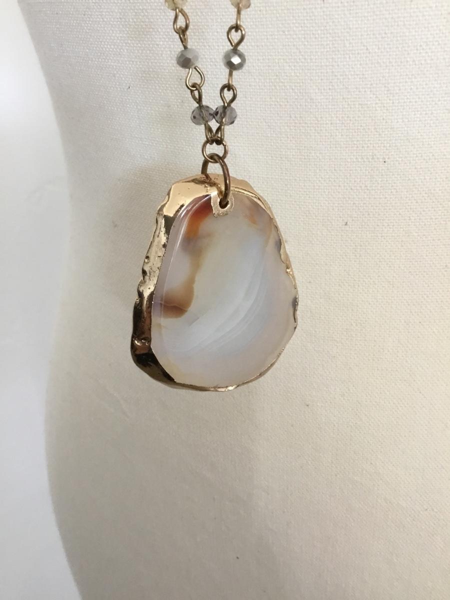 Gorgeous, gold toned, sing a glass with beautiful, agate, sliced Pendant