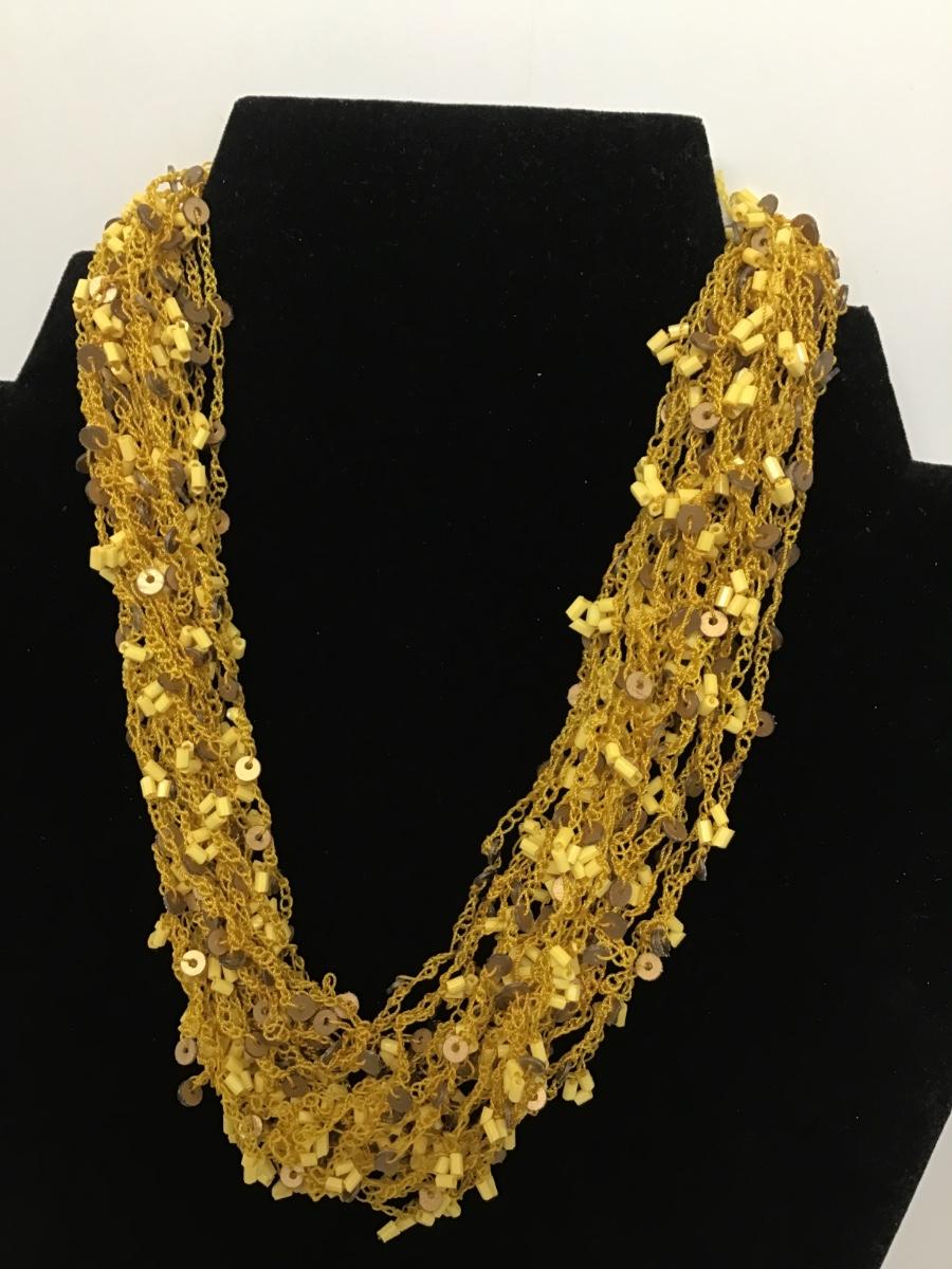 Gorgeous Golden Desert Style Crochet style Necklace Vintage Costume