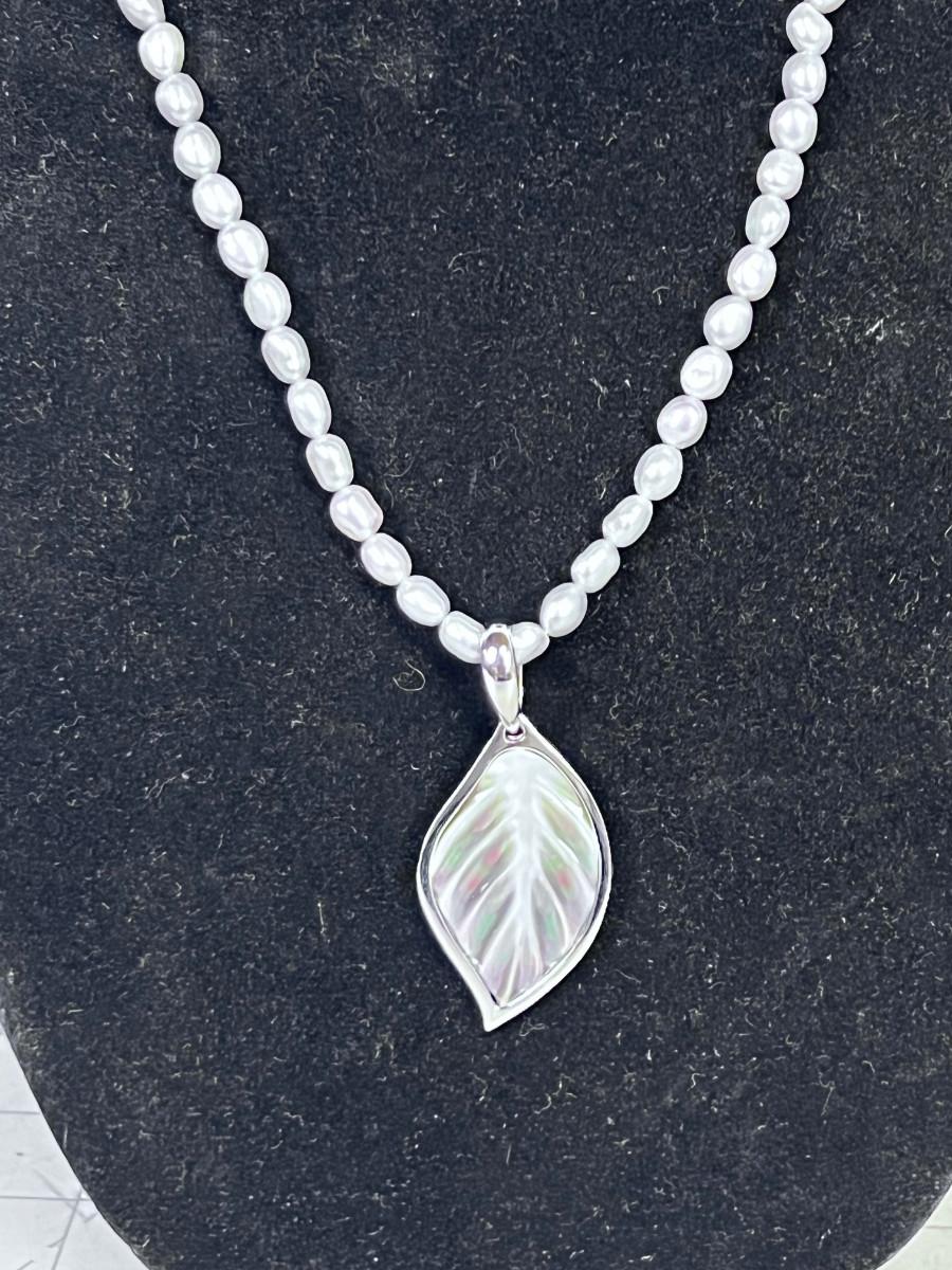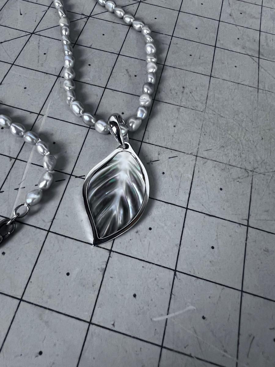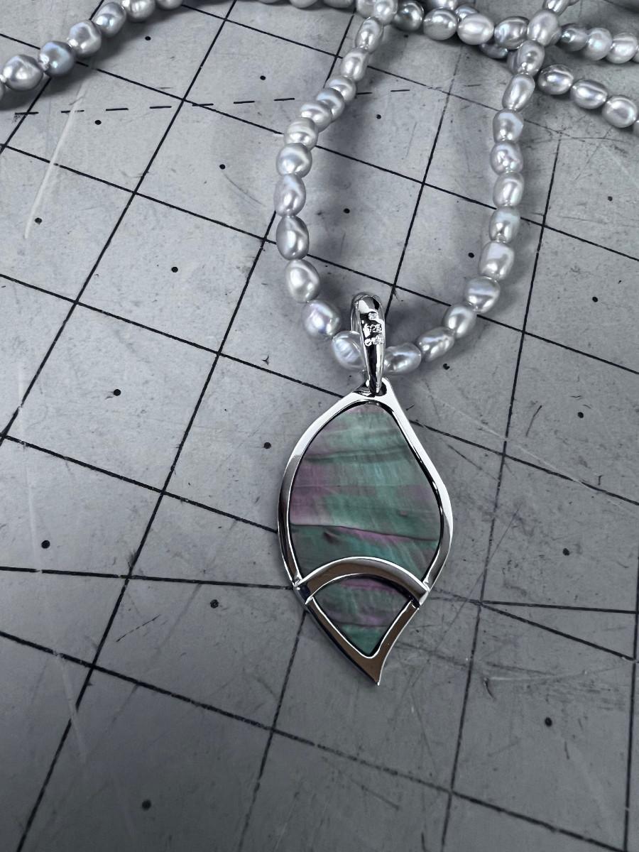 Gorgeous, Gray Fresh water Pearl and Abalone Mother of Pearl Pendant