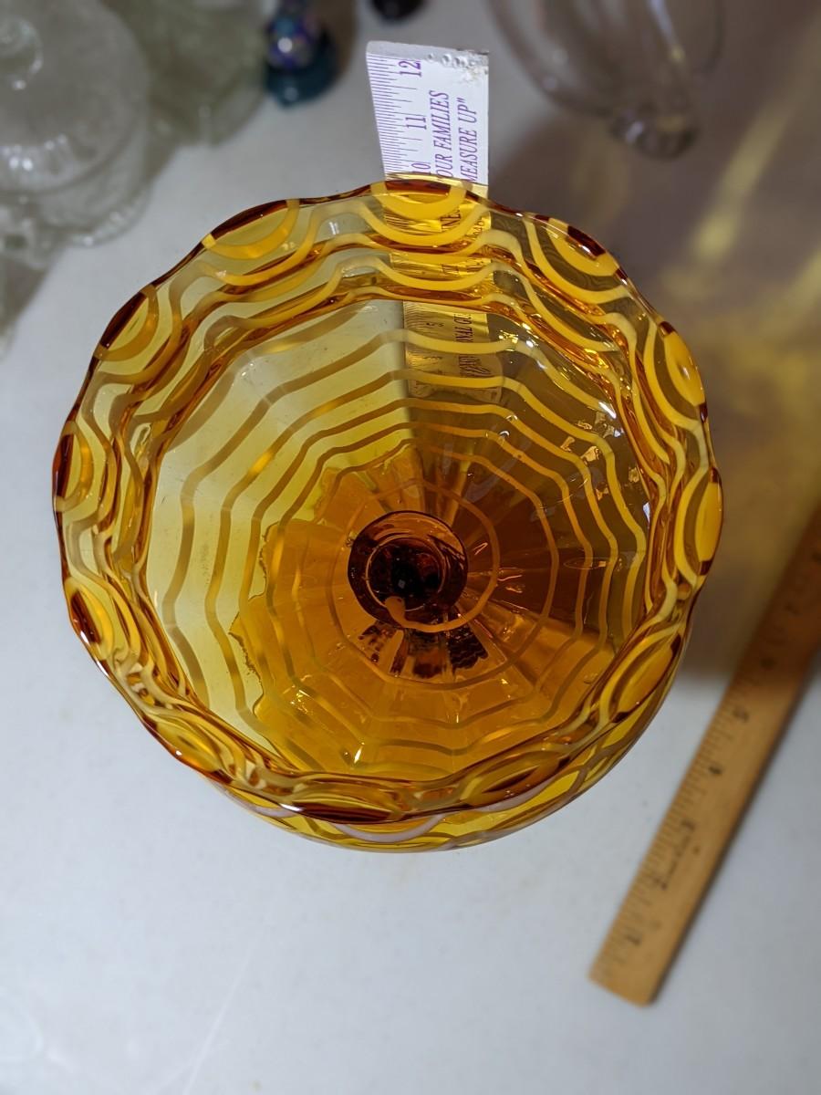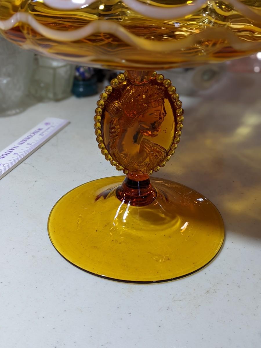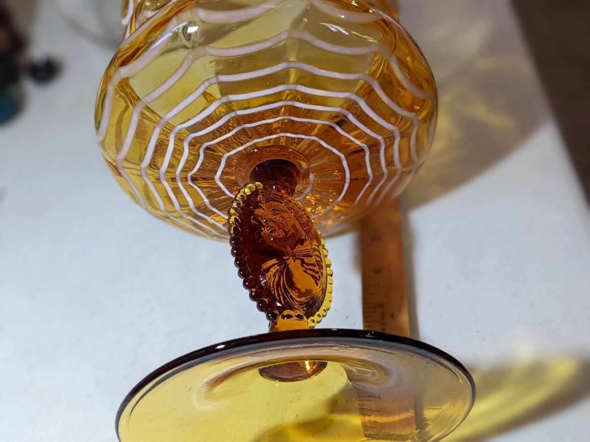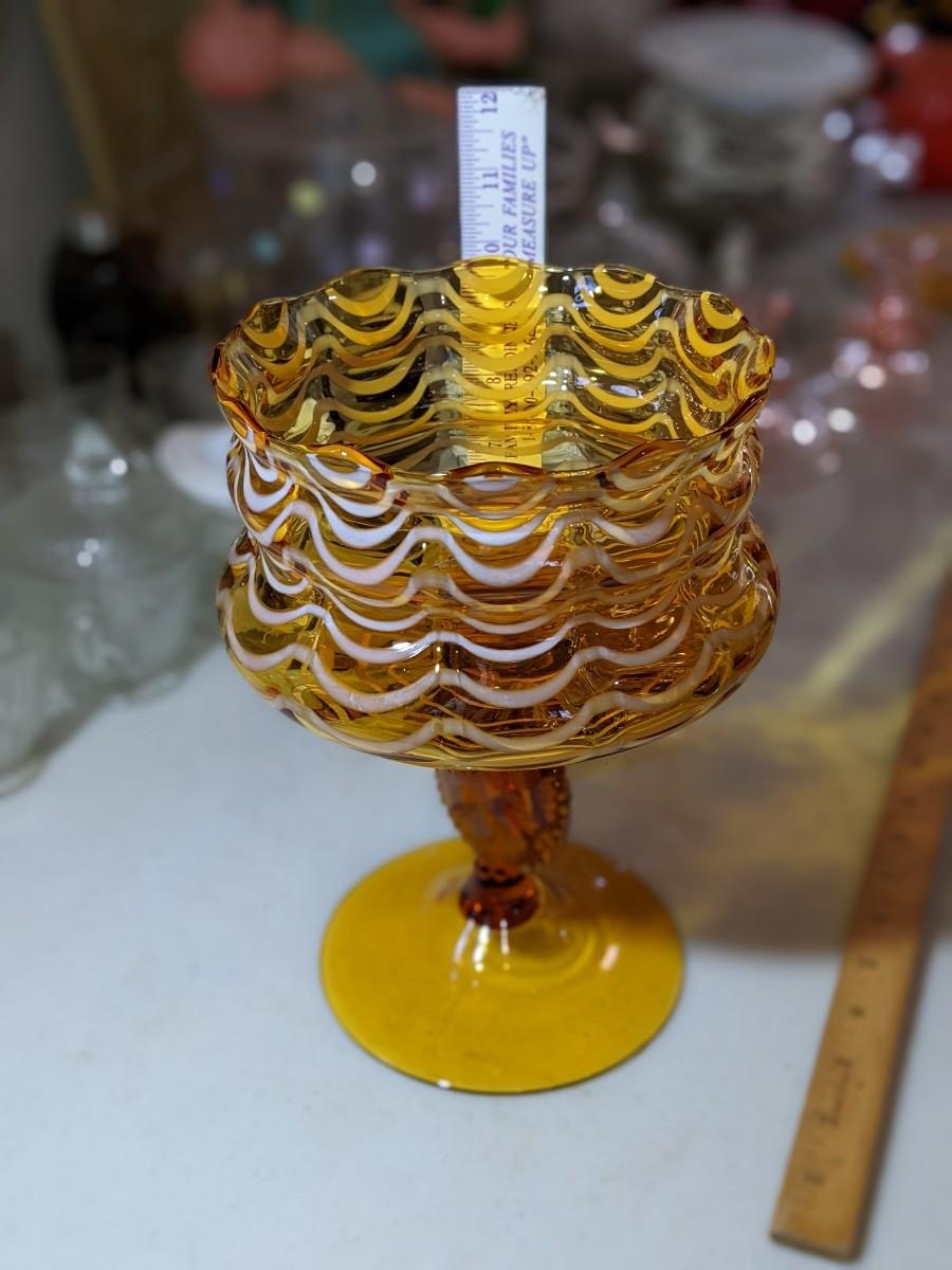 Gorgeous Hand Blown Amber with White Ribbon Candy Dish(?)