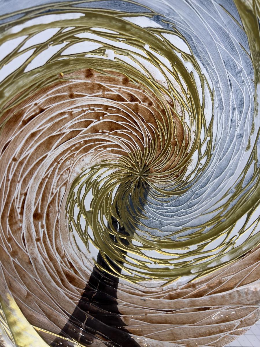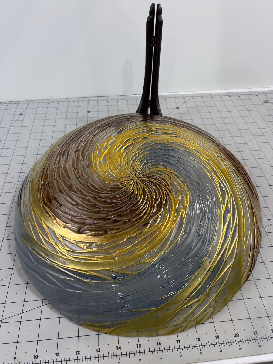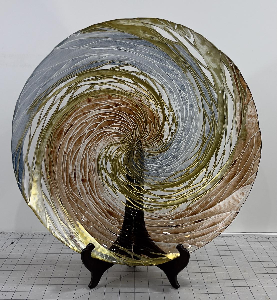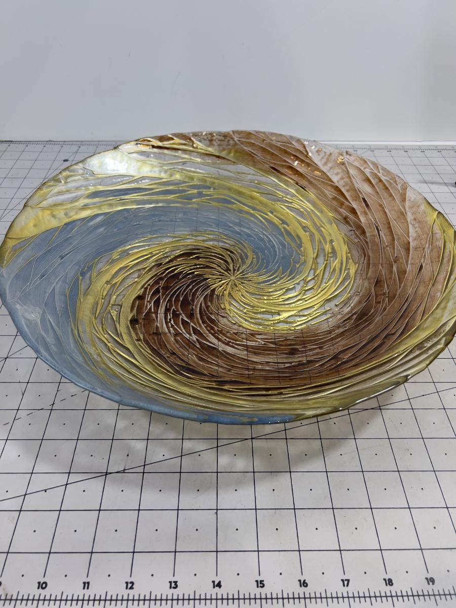 16" Diameter by 2-1/2"Tall Impressive Excellent Condition. Gold Tones and Clear.