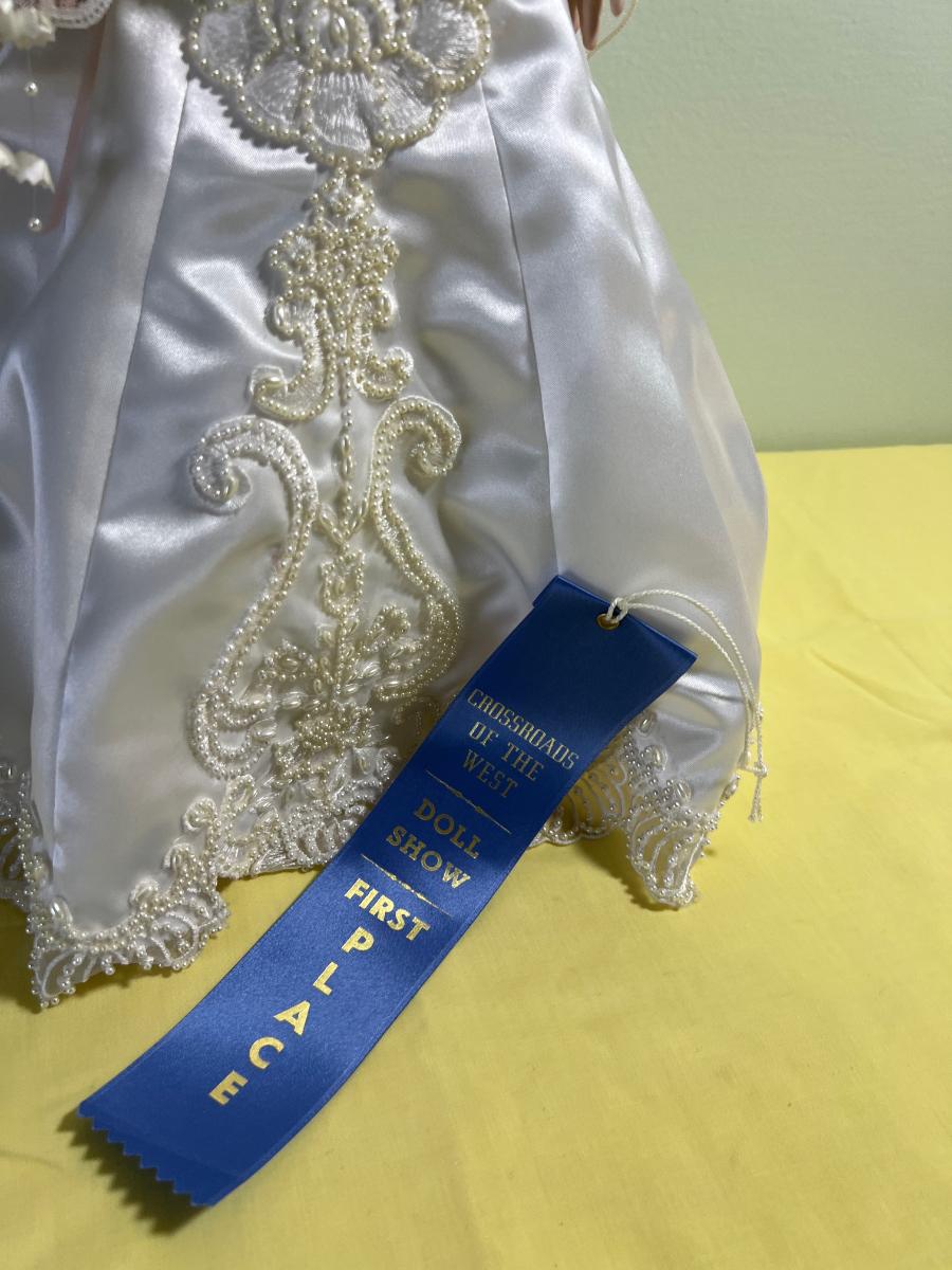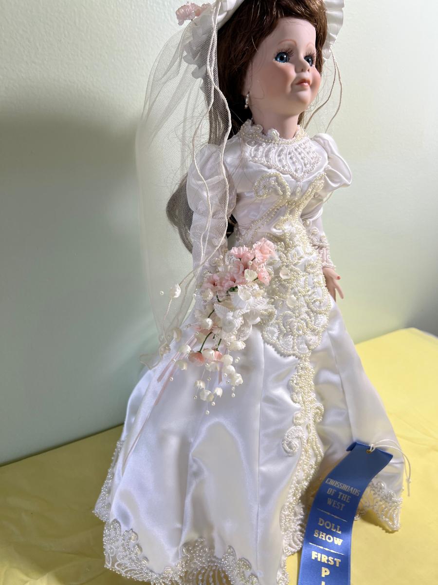 23" Tall. The head is a little loose. She won 1st Place in the Crossroads of the West Doll Show. Impressive!!!