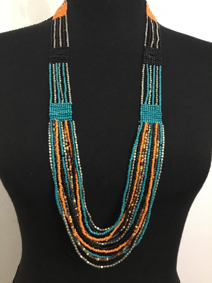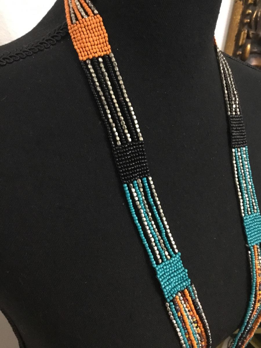 Gorgeous handcrafted multicolored glass seed bead statement necklace