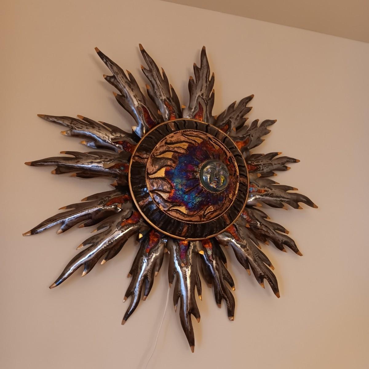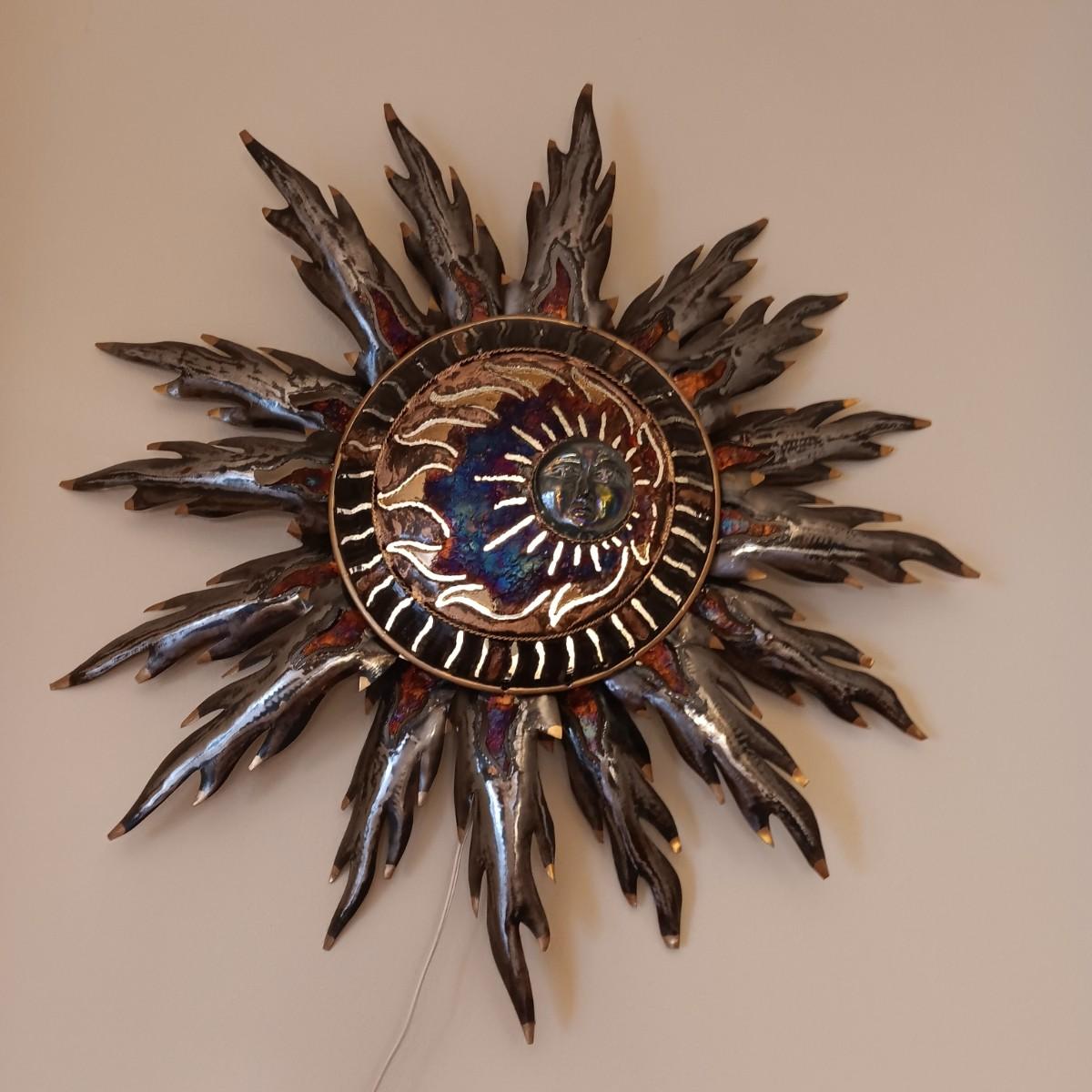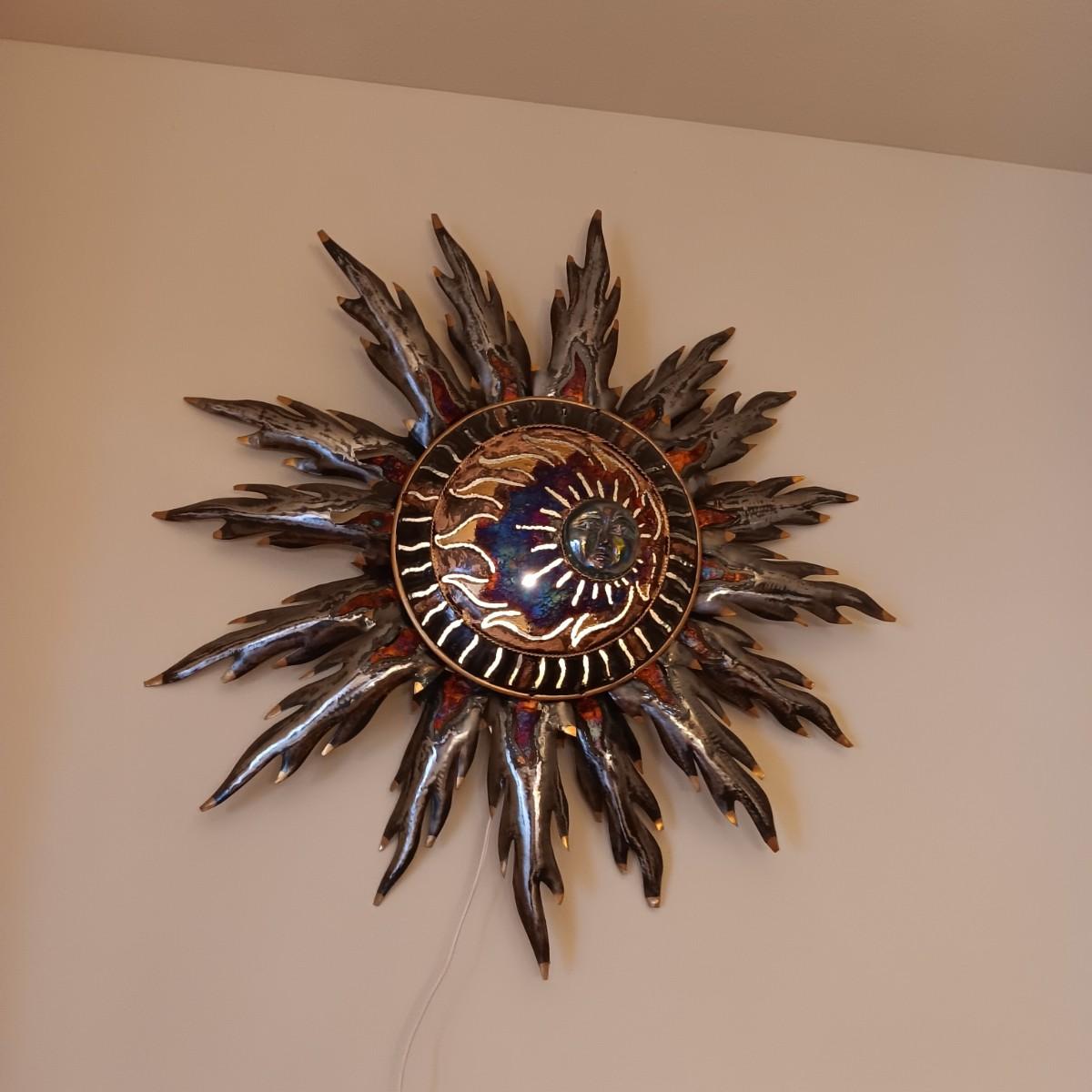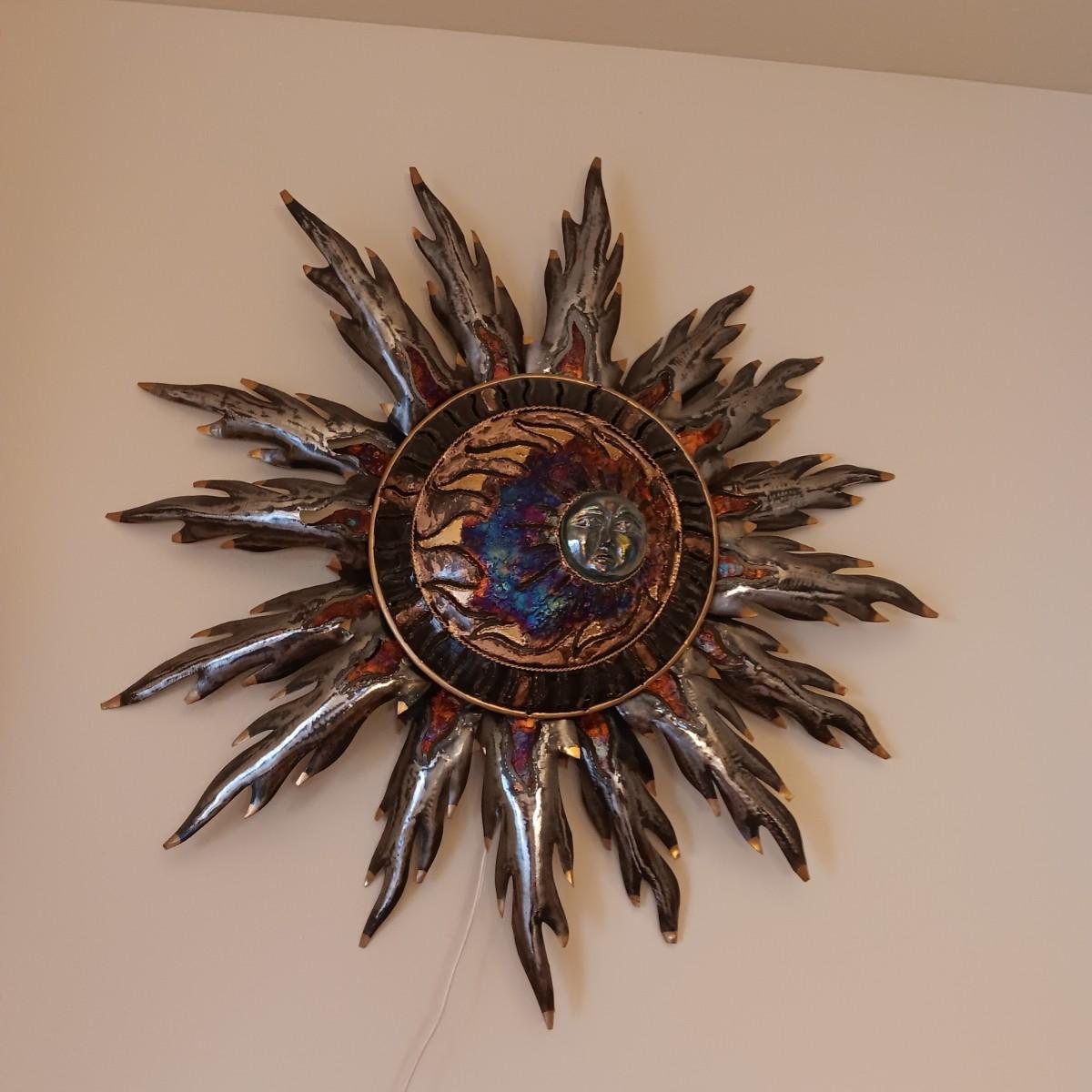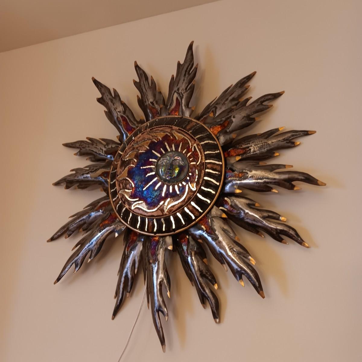 GORGEOUS HANDMADE LIT METAL SUN WALL HANGING