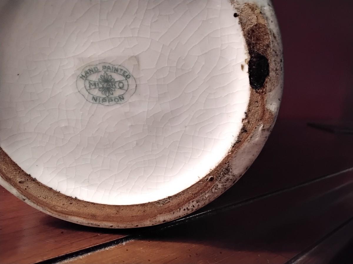 An absolutely gorgeous piece with handpainted scenes and 24k gold paint. Since the law required the country of origin to be an English word, the use of "Nippon" was forbidden from 1921 on. The period between the passage of the McKinley Act in 1890 and the English word ruling in 1921 is the only time "Nippon" appeared in authentic marks. There is crazing, mostly on the bottom, which is customary with a piece this old. This one is the style they used in 1890 and the family it belonged to verified that.