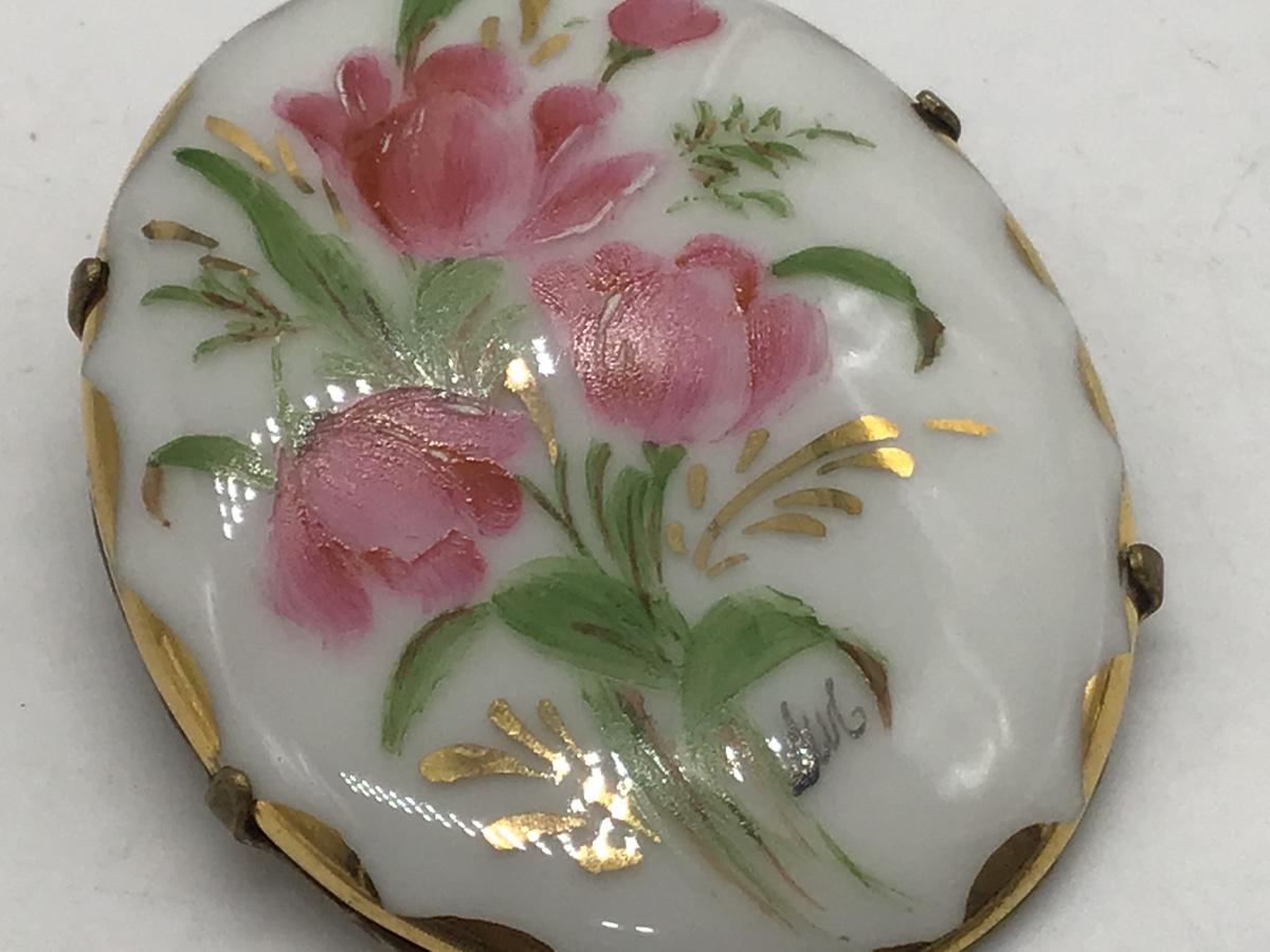 Gorgeous Handpainted Porcelain Brooch. Signed