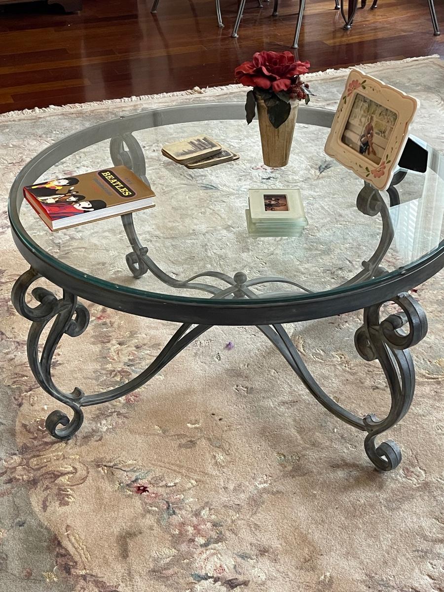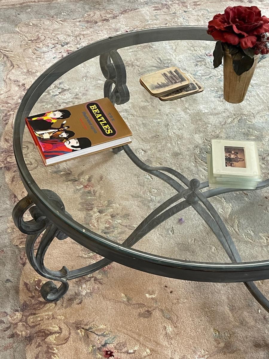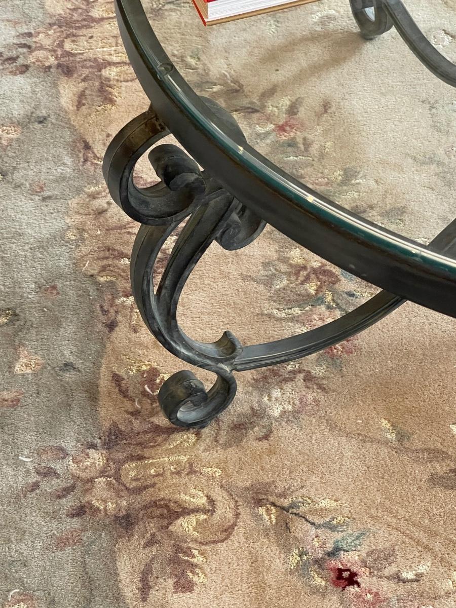 Gorgeous Heavy Vintage Wrought Iron and Glass Coffee Table