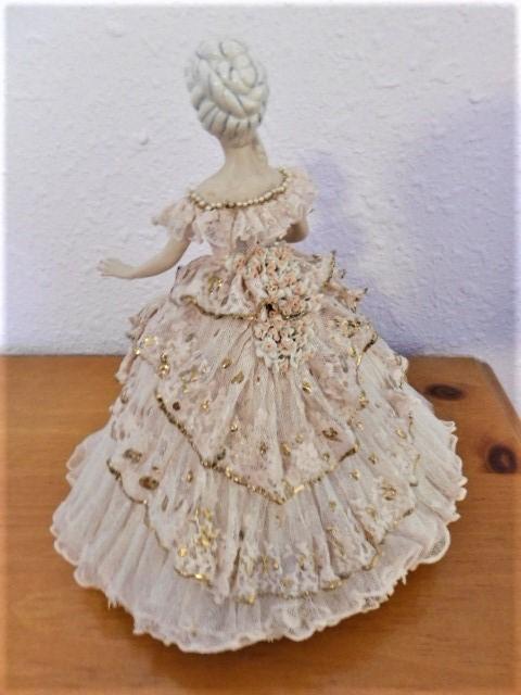 Gorgeous Helen Beehner Porcelain Doll Hand Crafted Highly Detailed Authentic Shells and Materials 9" Extremely talented, now deceased, Florida native artist has won many achievement and artistic awards for her craftsmanship. All hand done.