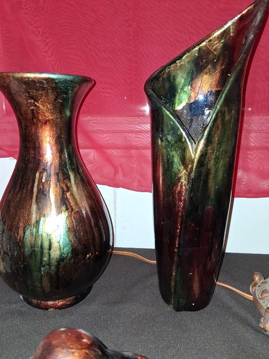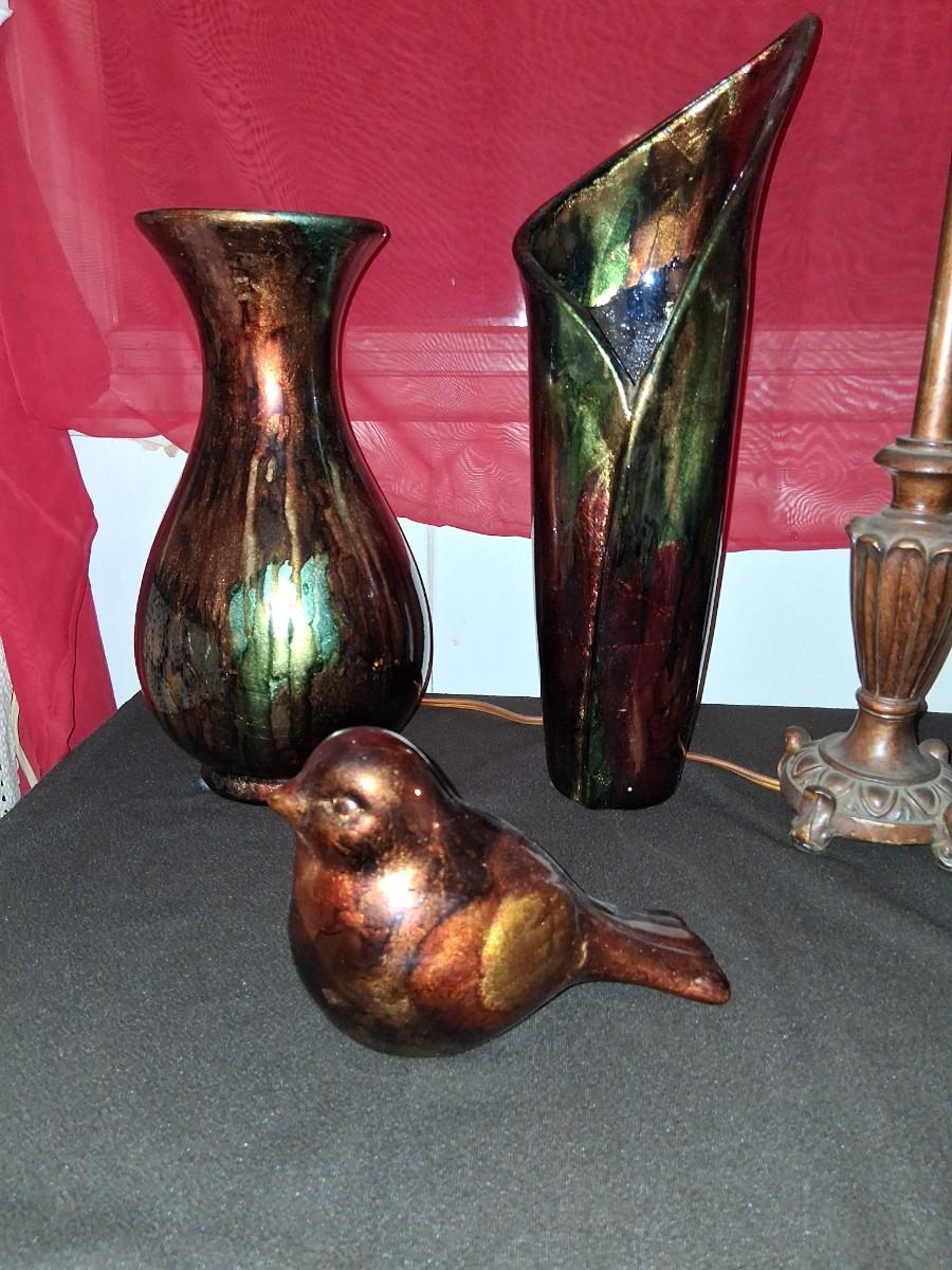 Drip glaze style vases & matching Bird.