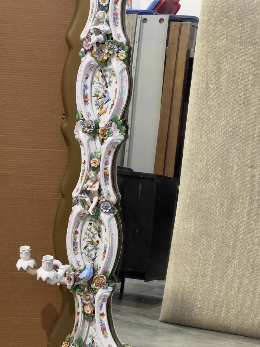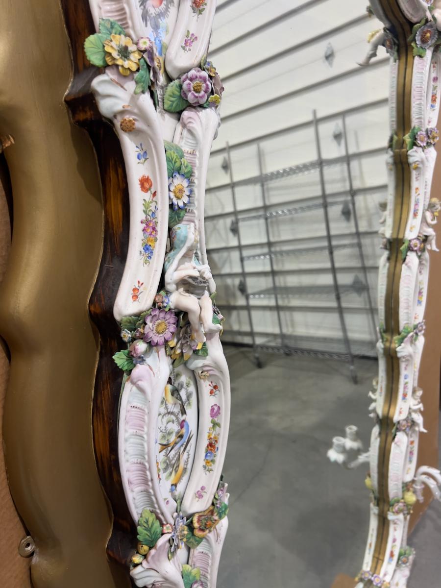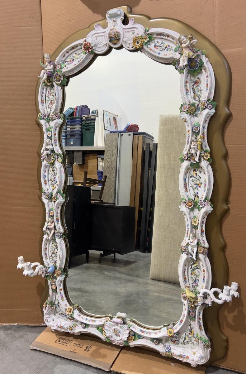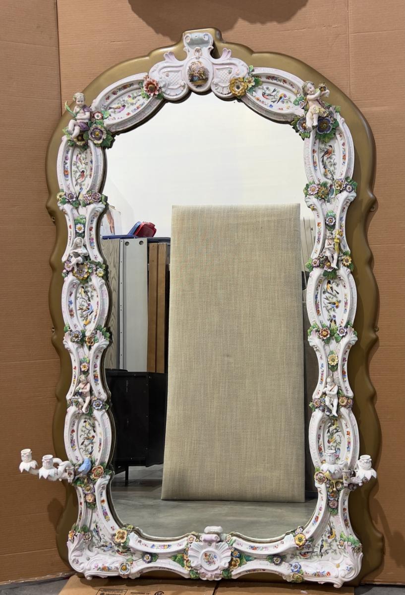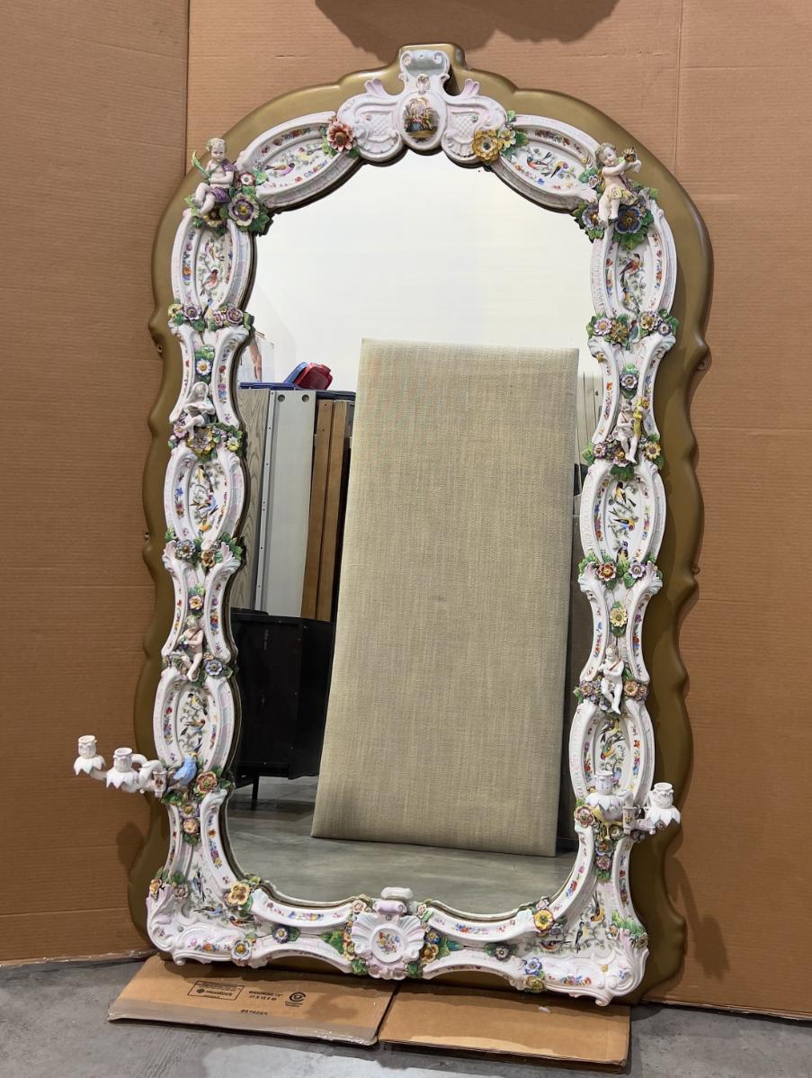 A Unique and Monumental Late 19th Century German Dresden/Meissen Porcelain Mirror
