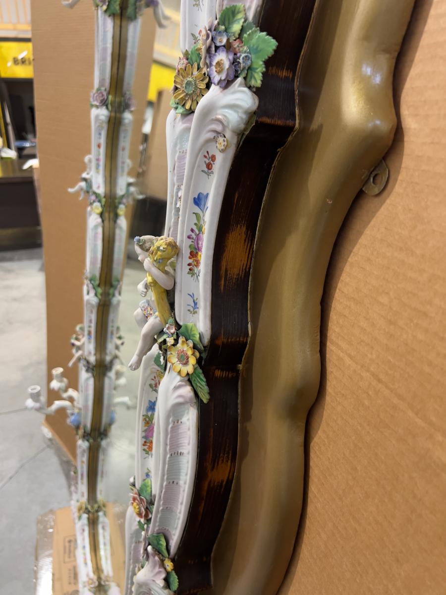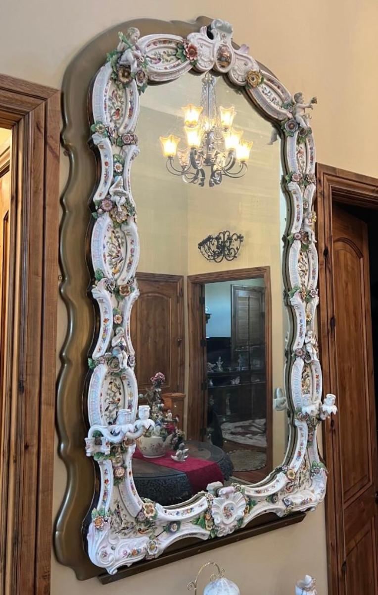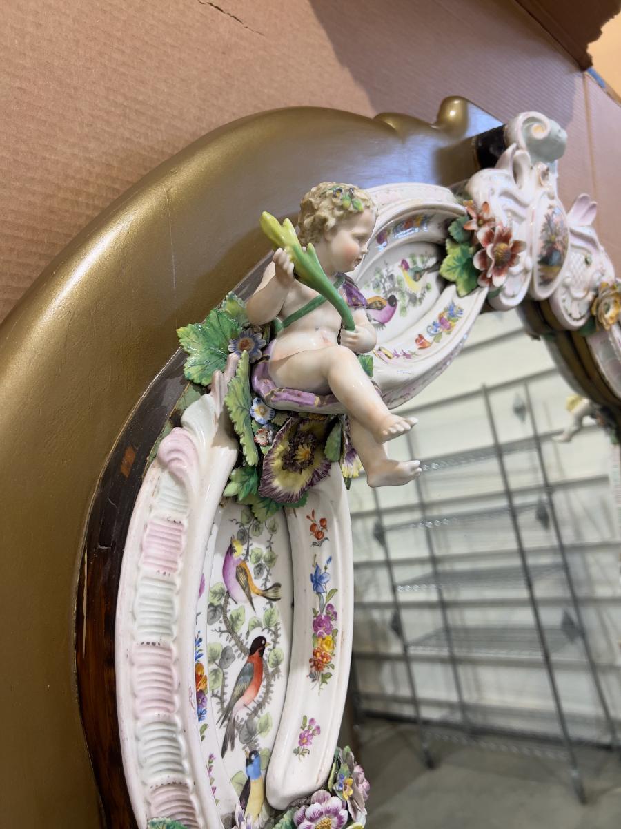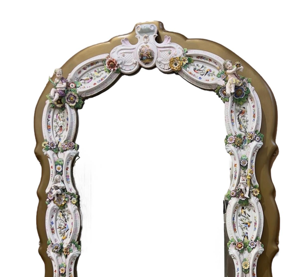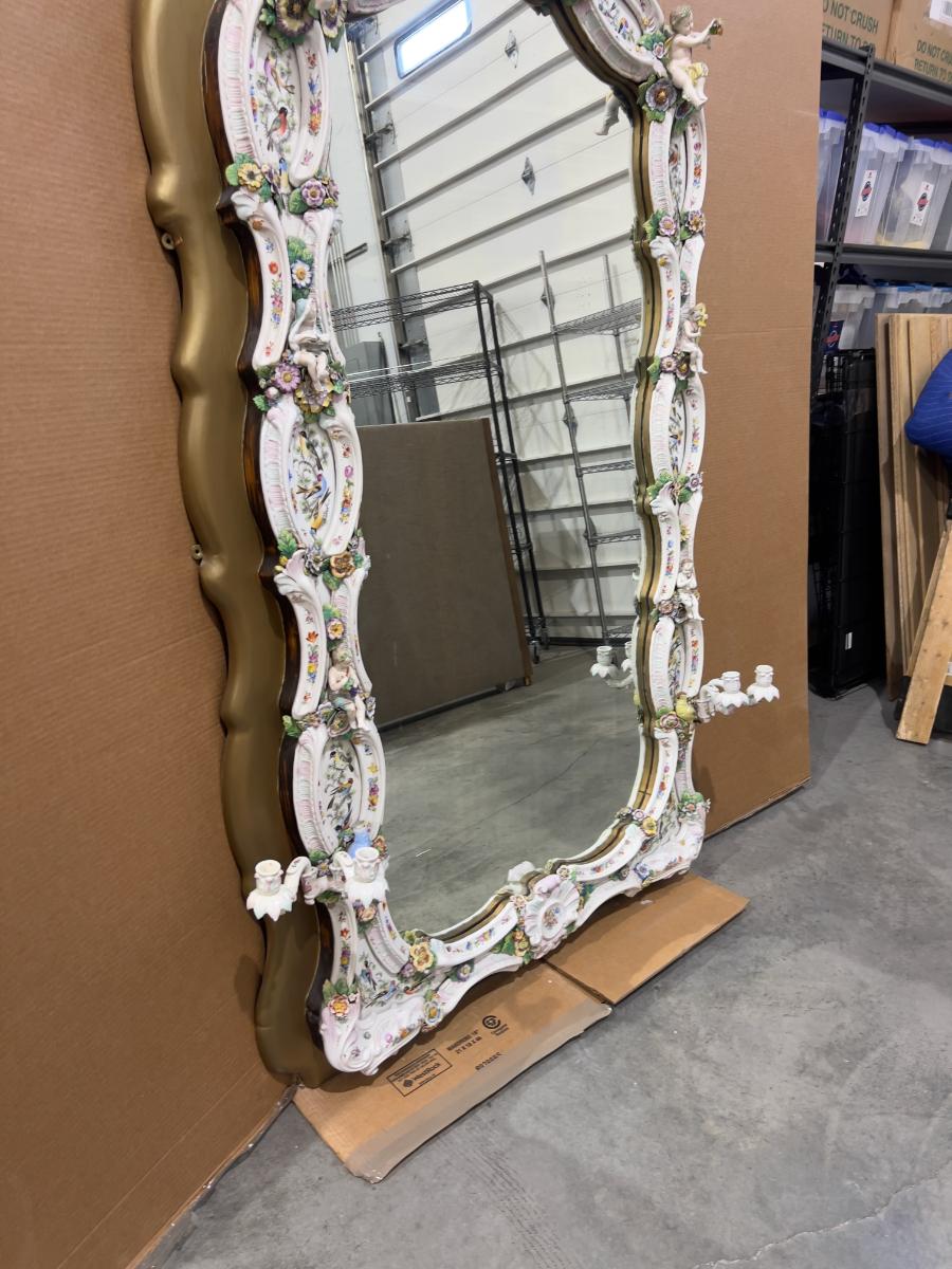 A Unique and Monumental Late 19th Century German Dresden/Meissen Porcelain Mirror