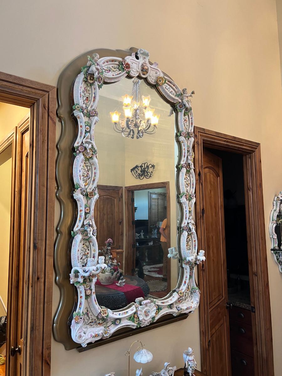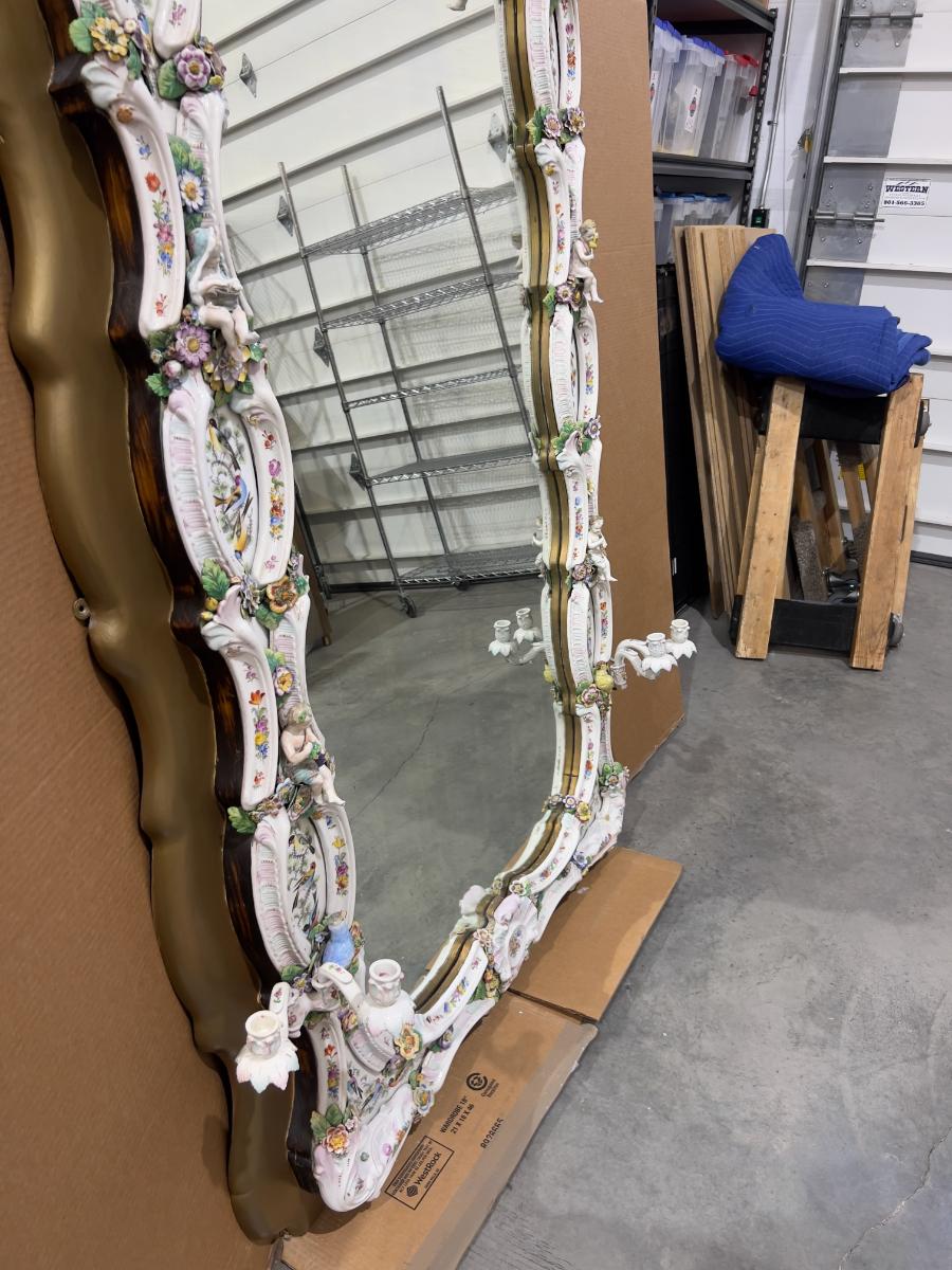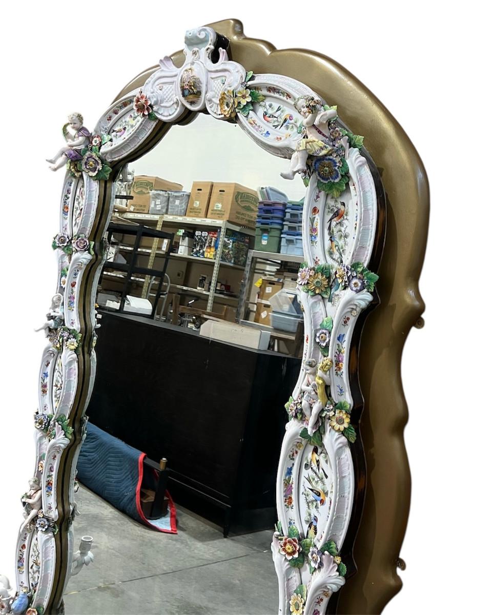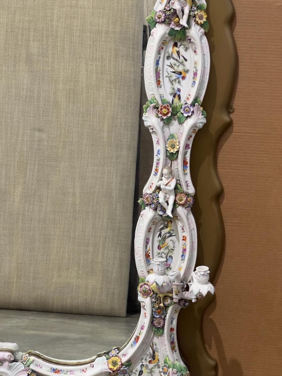 A Unique and Monumental Late 19th Century German Dresden/Meissen Porcelain Mirror
