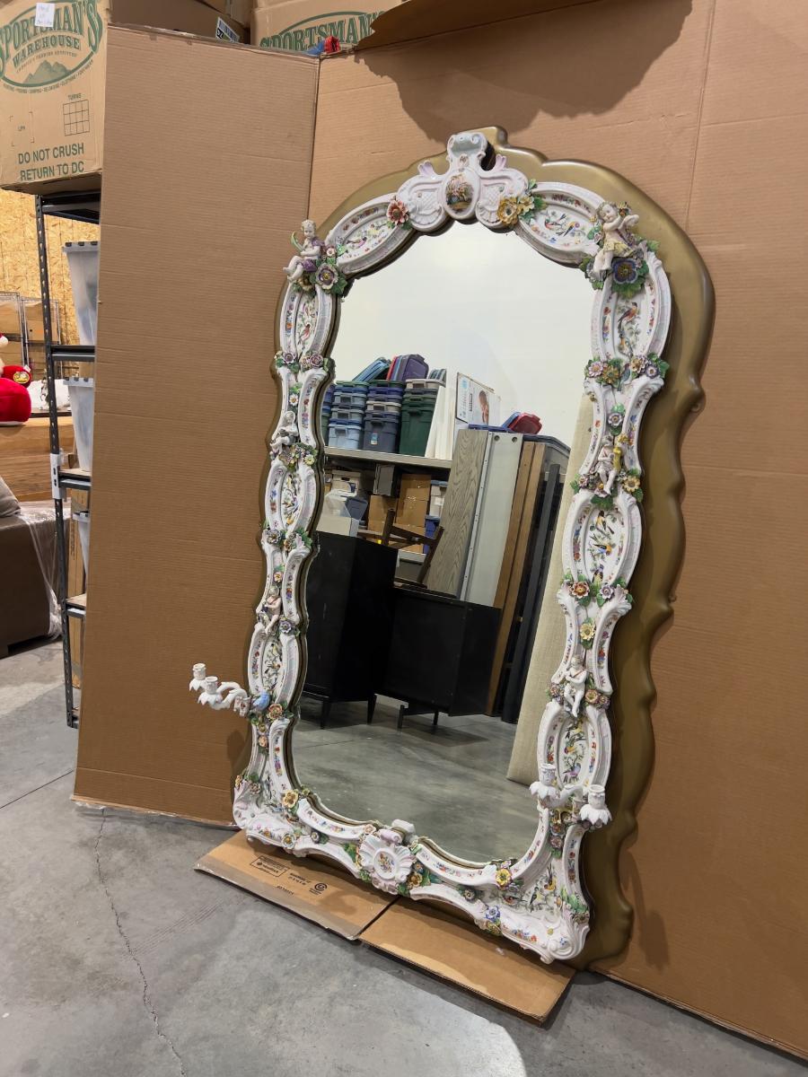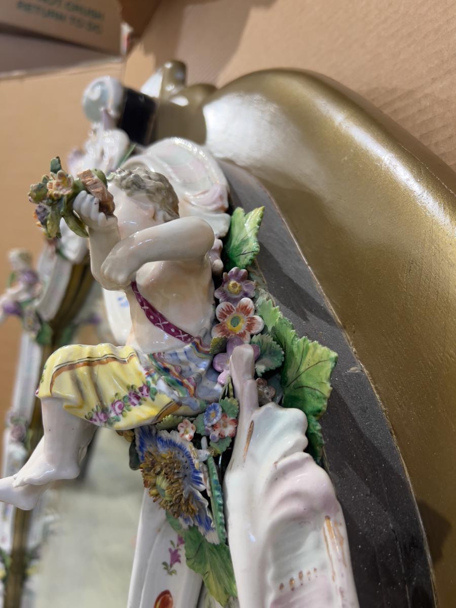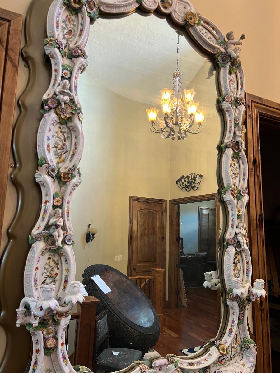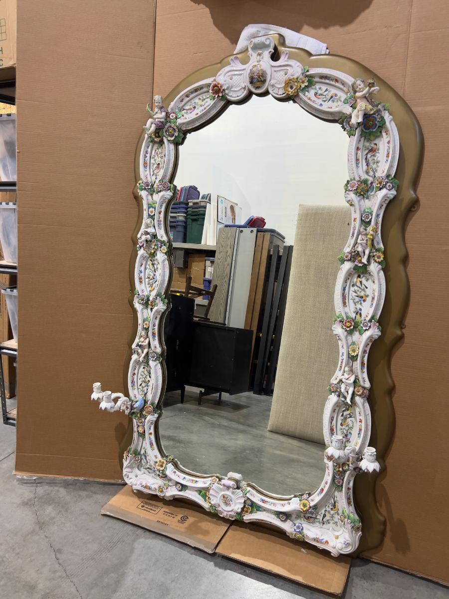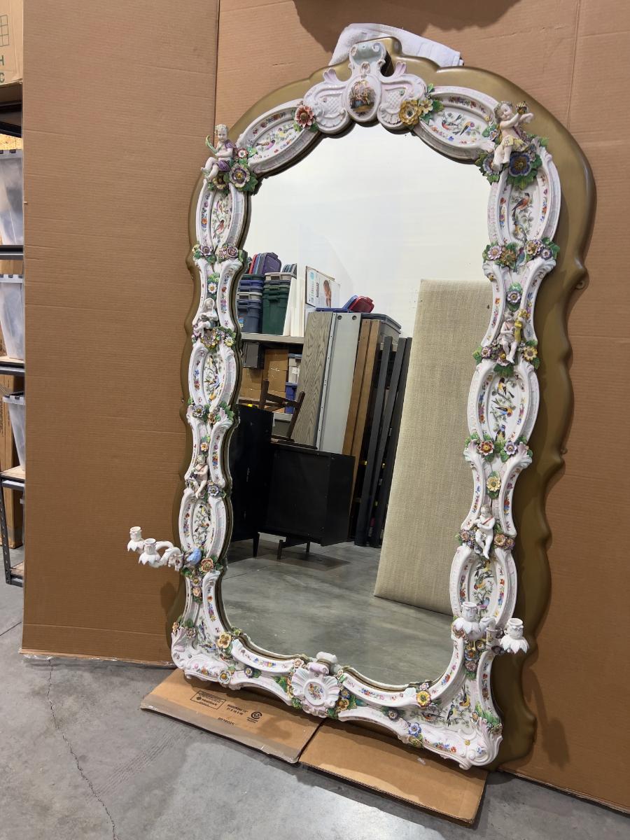 A Unique and Monumental Late 19th Century German Dresden/Meissen Porcelain Mirror