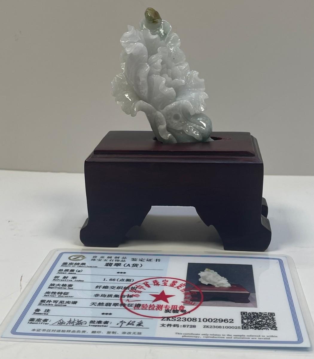Gorgeous Jade figurine with certification/ on a stand/Box