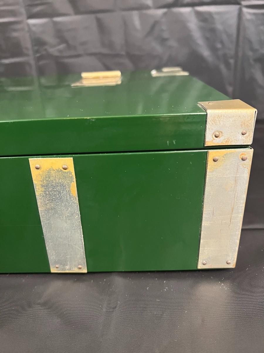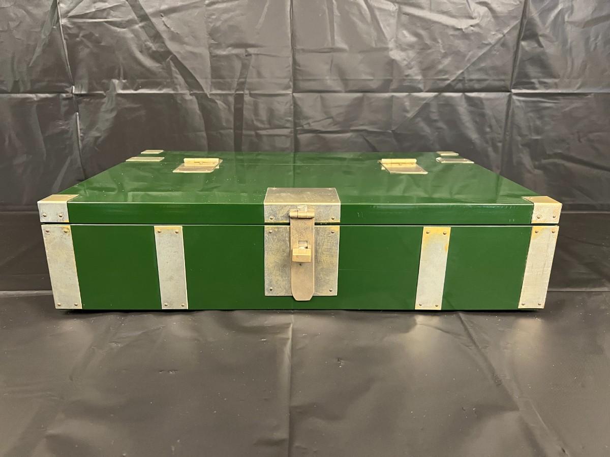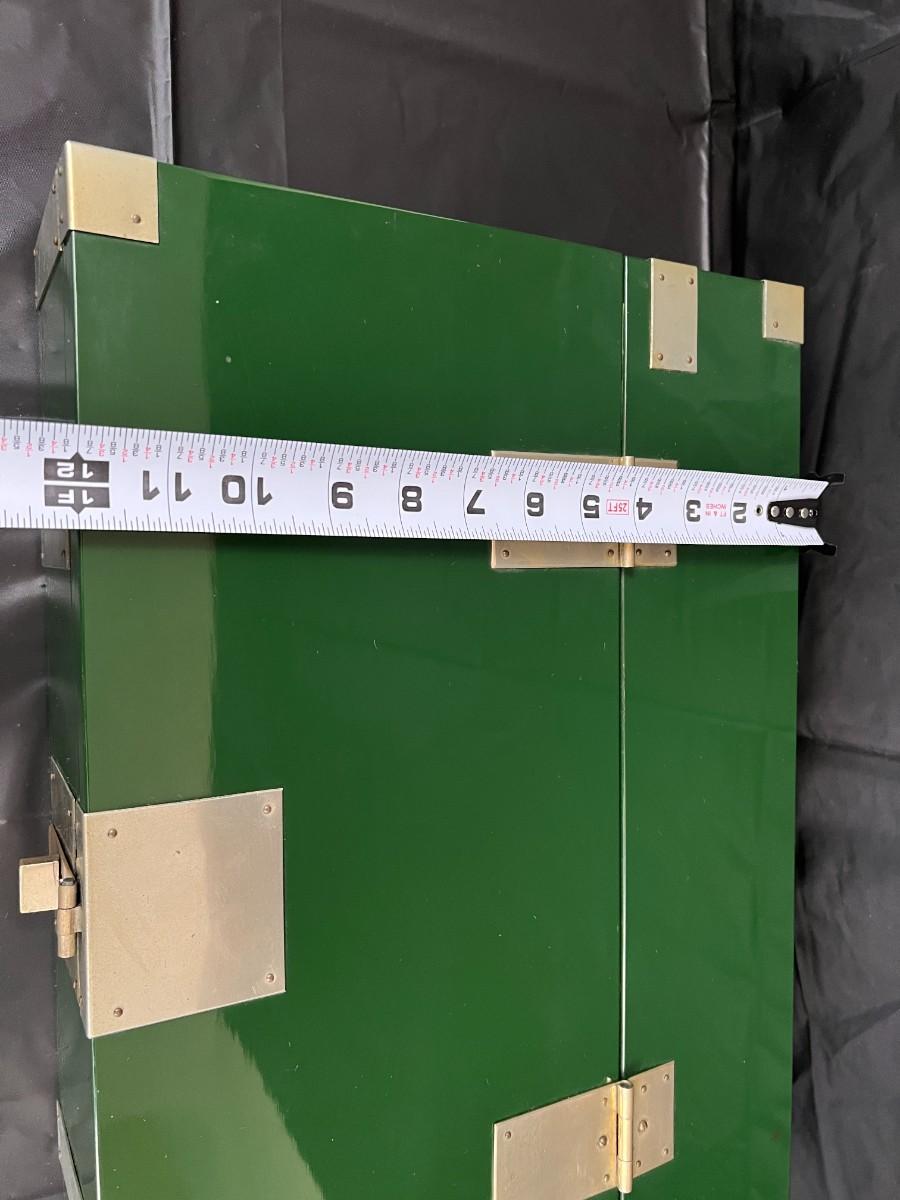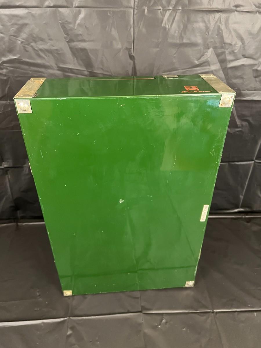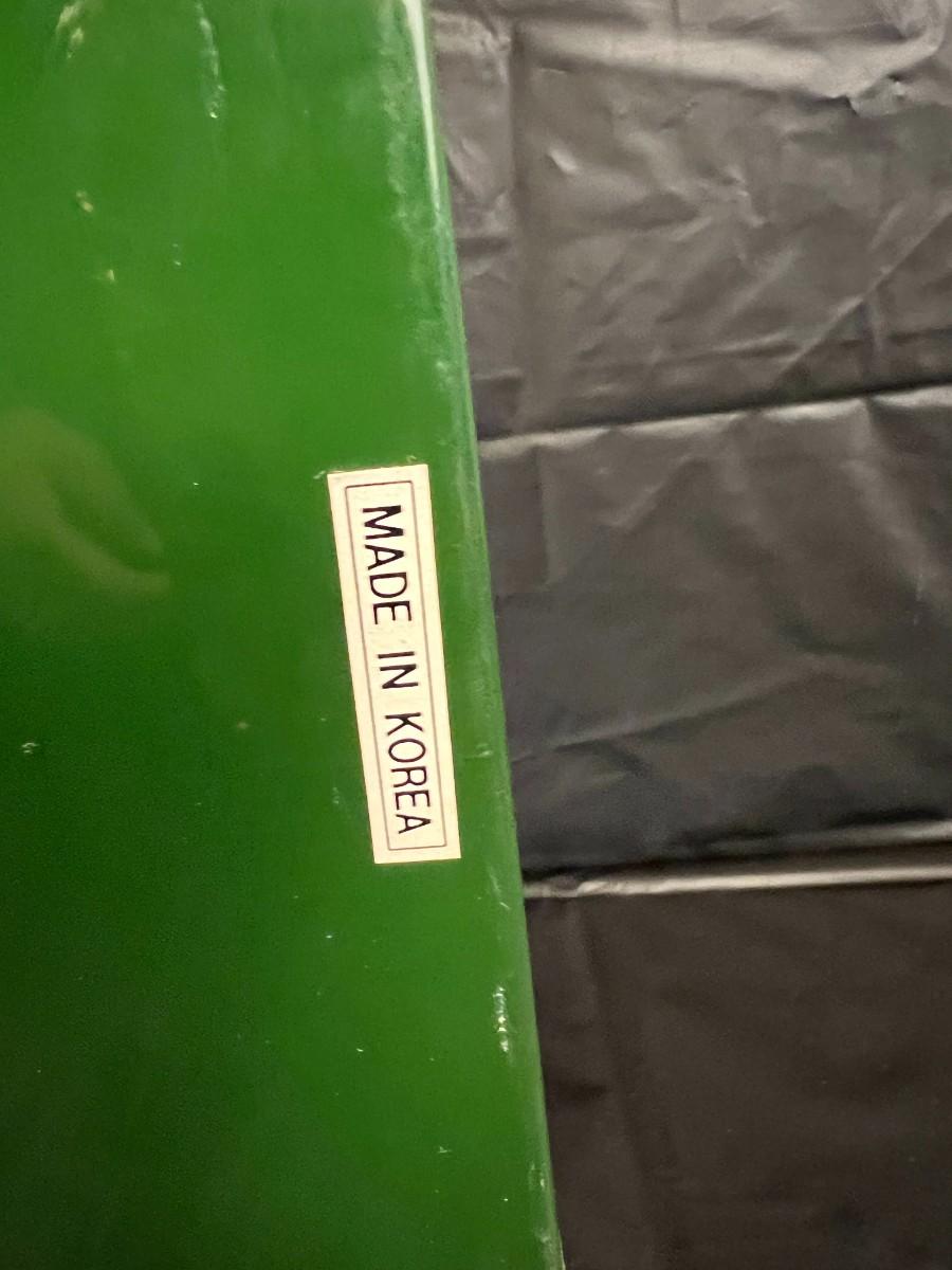 Gorgeous Red and Green Lacquer Wood and Silver-Tone Metal Box Designed by Rae Kasian! A very striking piece, and a rare find. In good condition, with some signs of wear (as shown in photos). This beautiful box was crafted in Korea.
