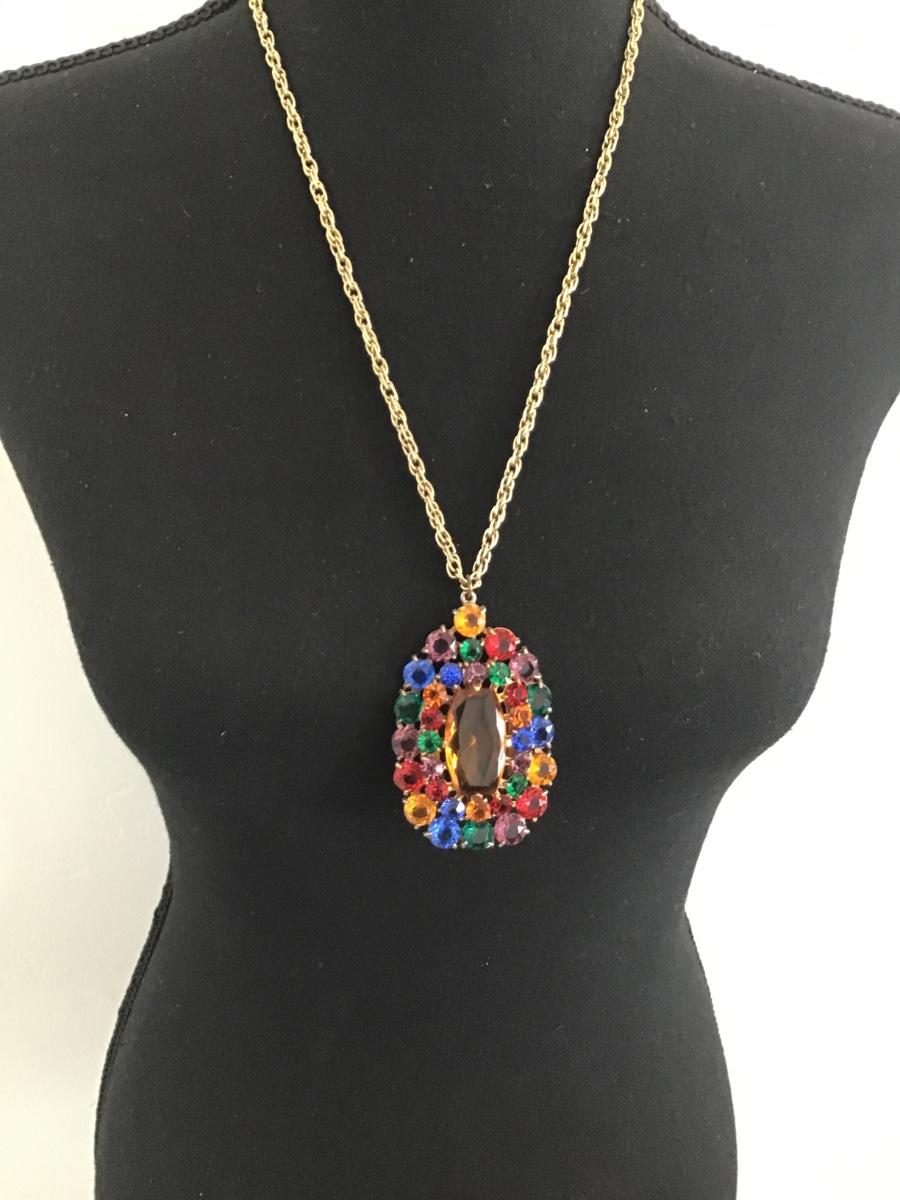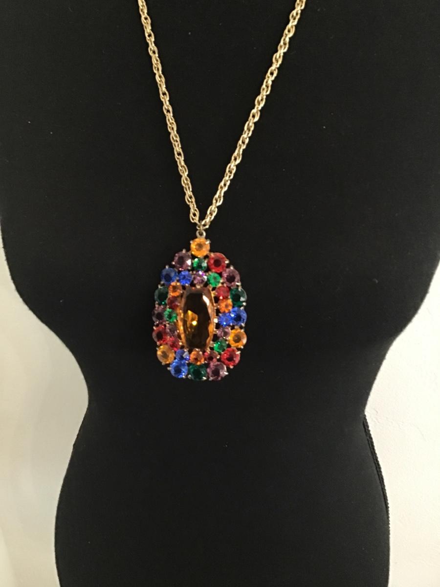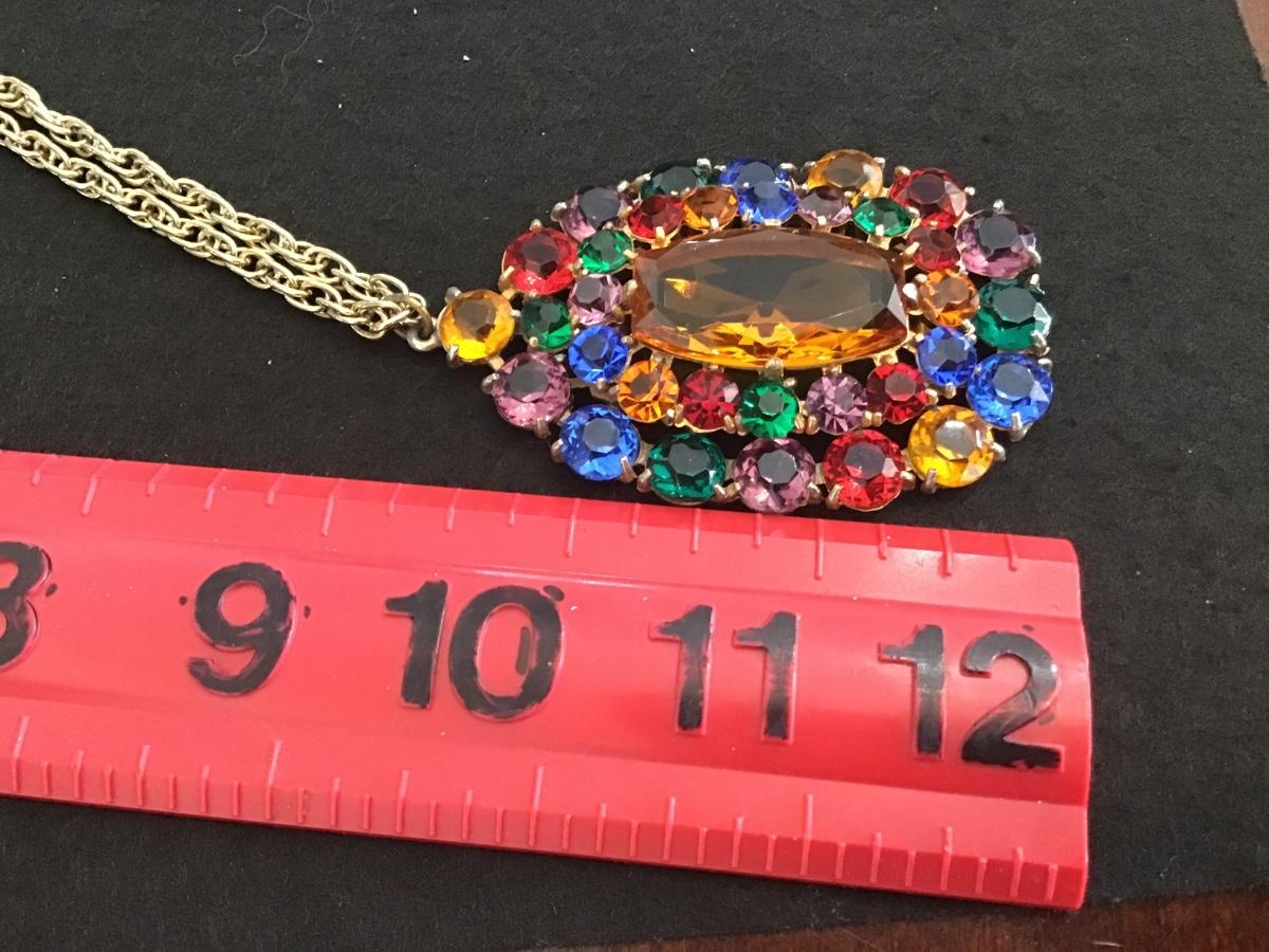 Gorgeous Large 3x3 Glass Fruit Salad Stone Necklace Vintage