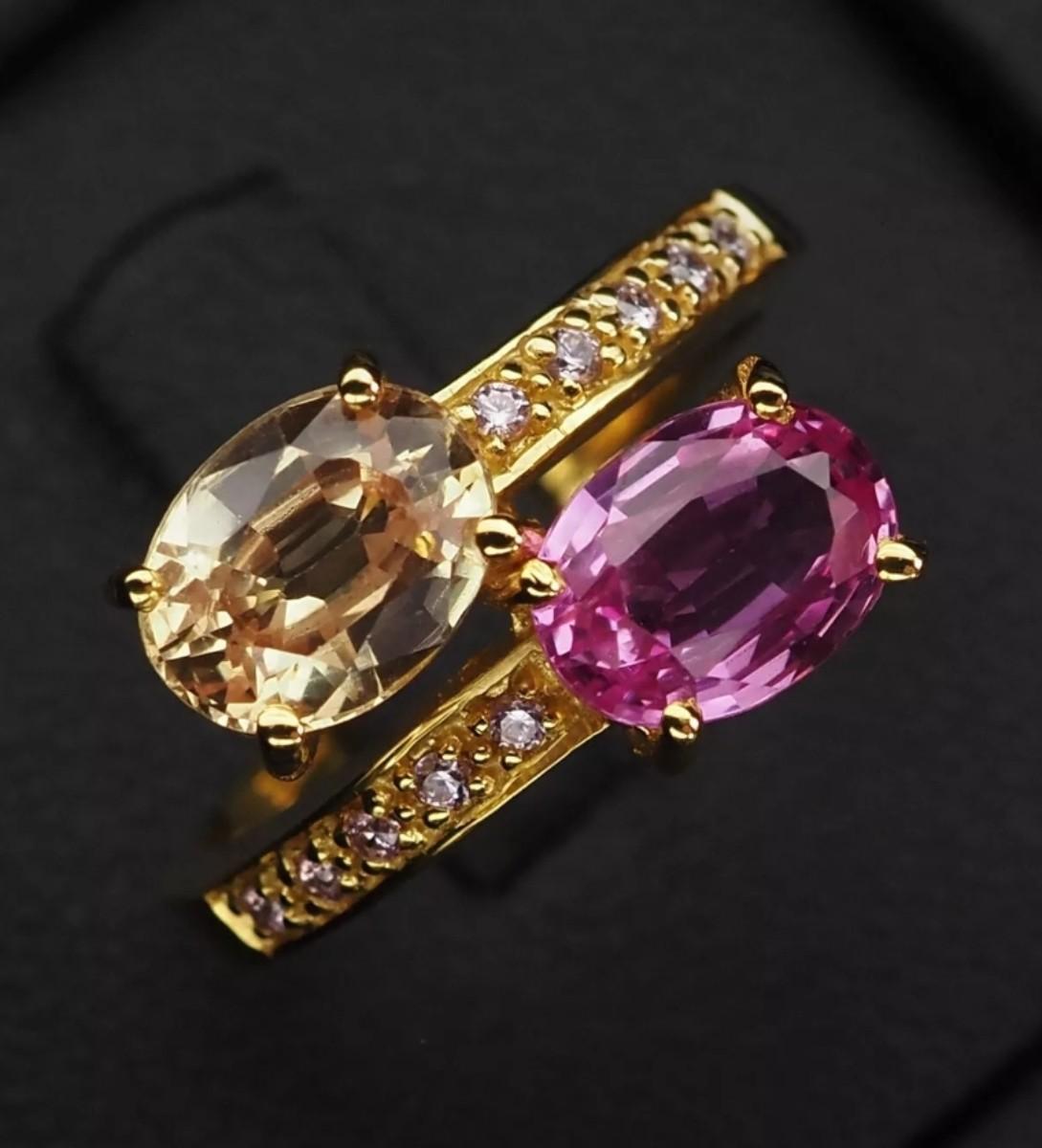 Gorgeous Multi Color Sapphire 3.90Ct 925 Sterling Silver 24K Gold Plated Ring