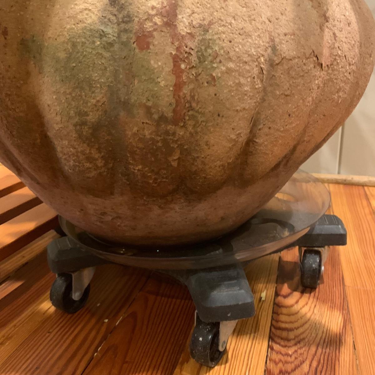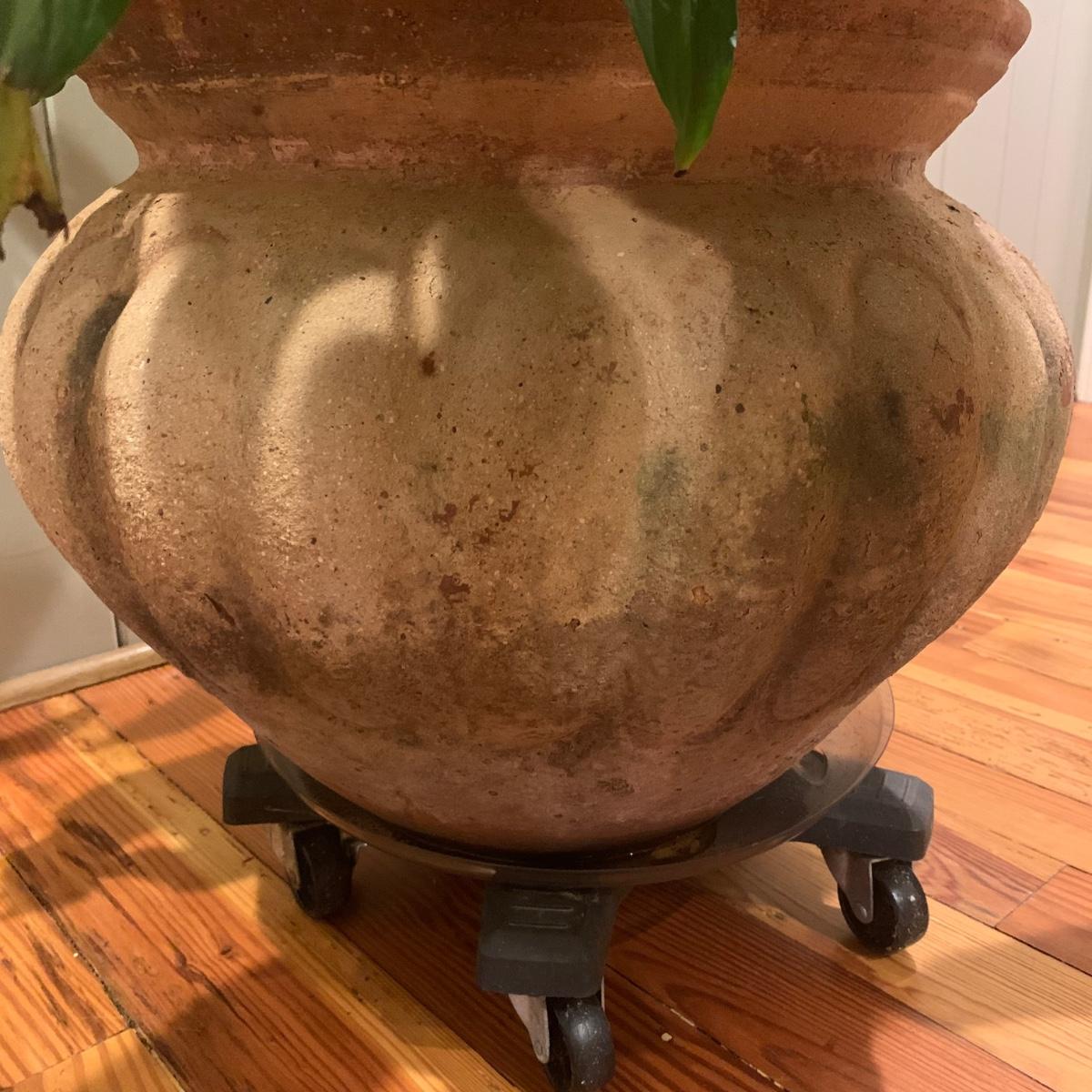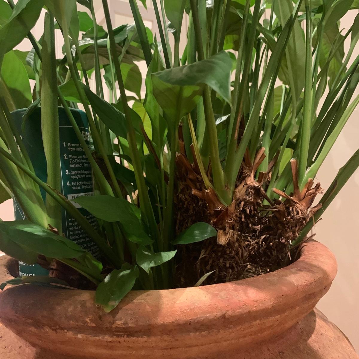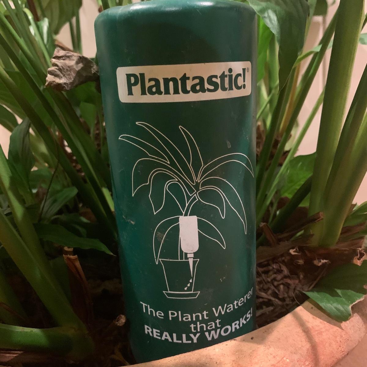 This live Peace Lily is thriving! Though we cannot guarantee the condition of the plant upon pickup. Lot includes potted lily, Plantastic Plant Waterer, and two rolling plant stands.