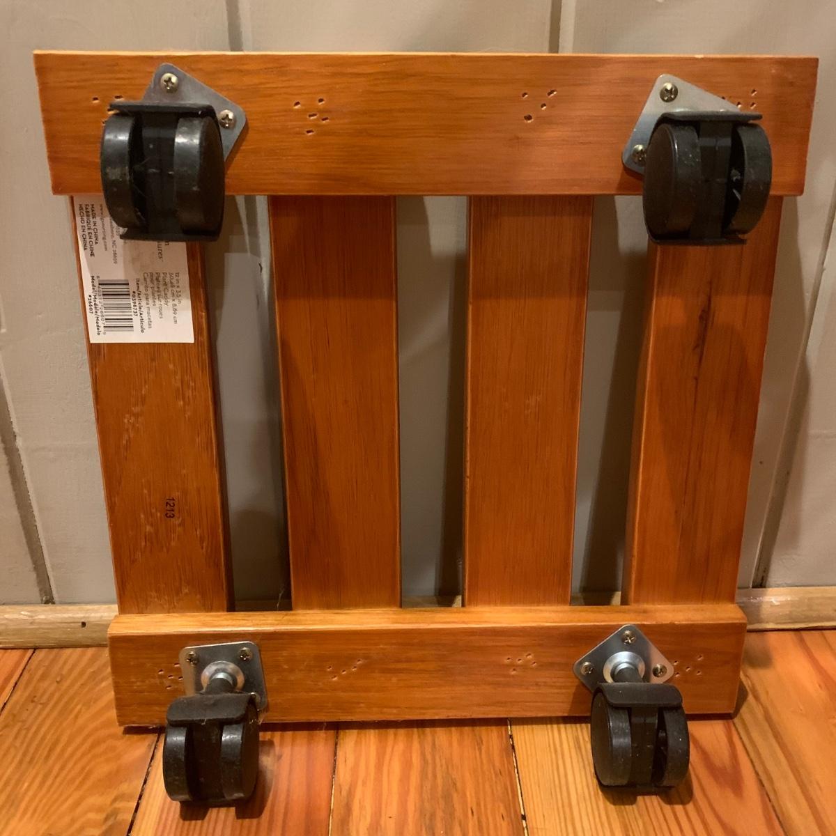 Extra rolling plant stand measures 12”L x 12”W x 3.5”H. This plant is 43”H, including the rolling stand.
