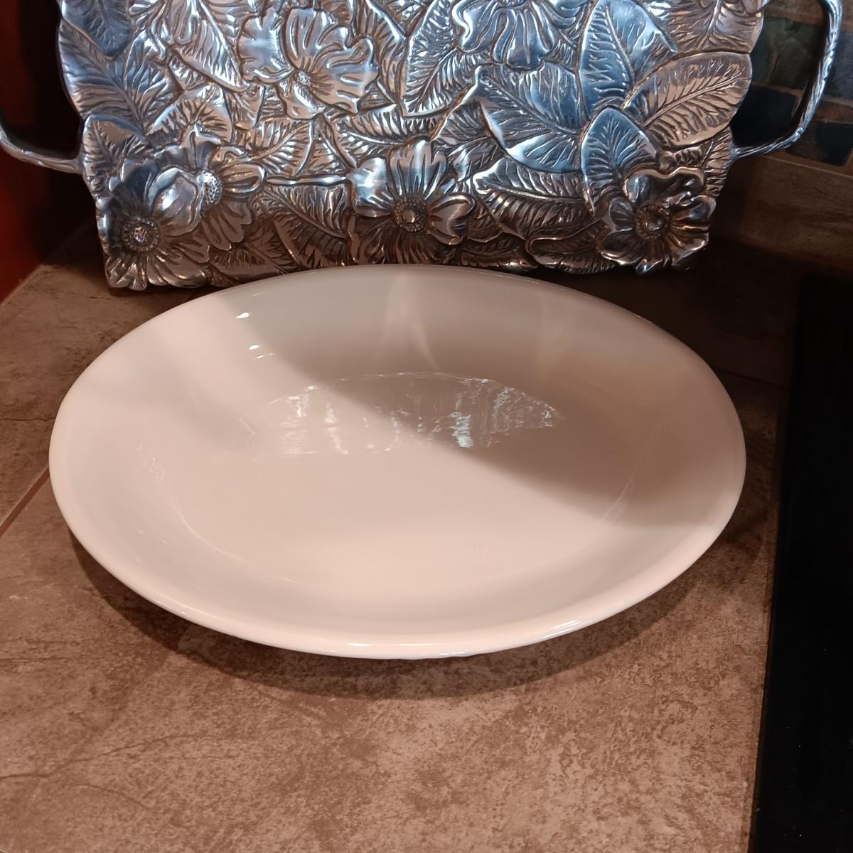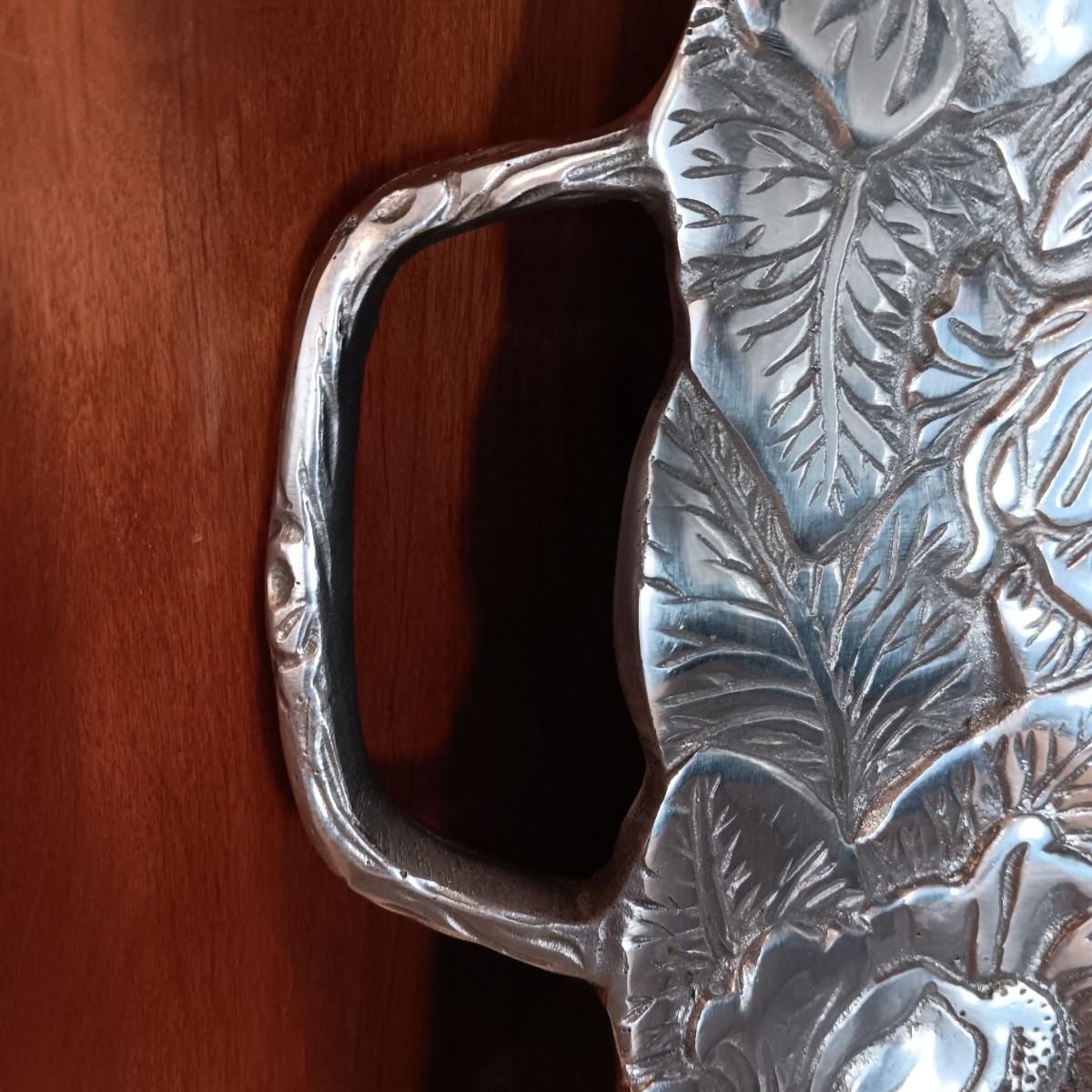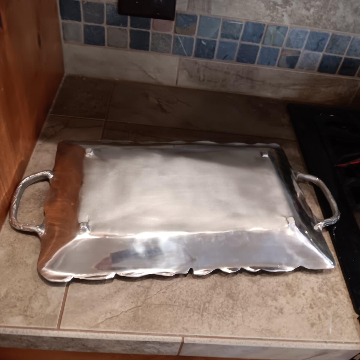 GORGEOUS PEWTER TRAY WITH RAISED DESIGN AND OVAL PLATTER