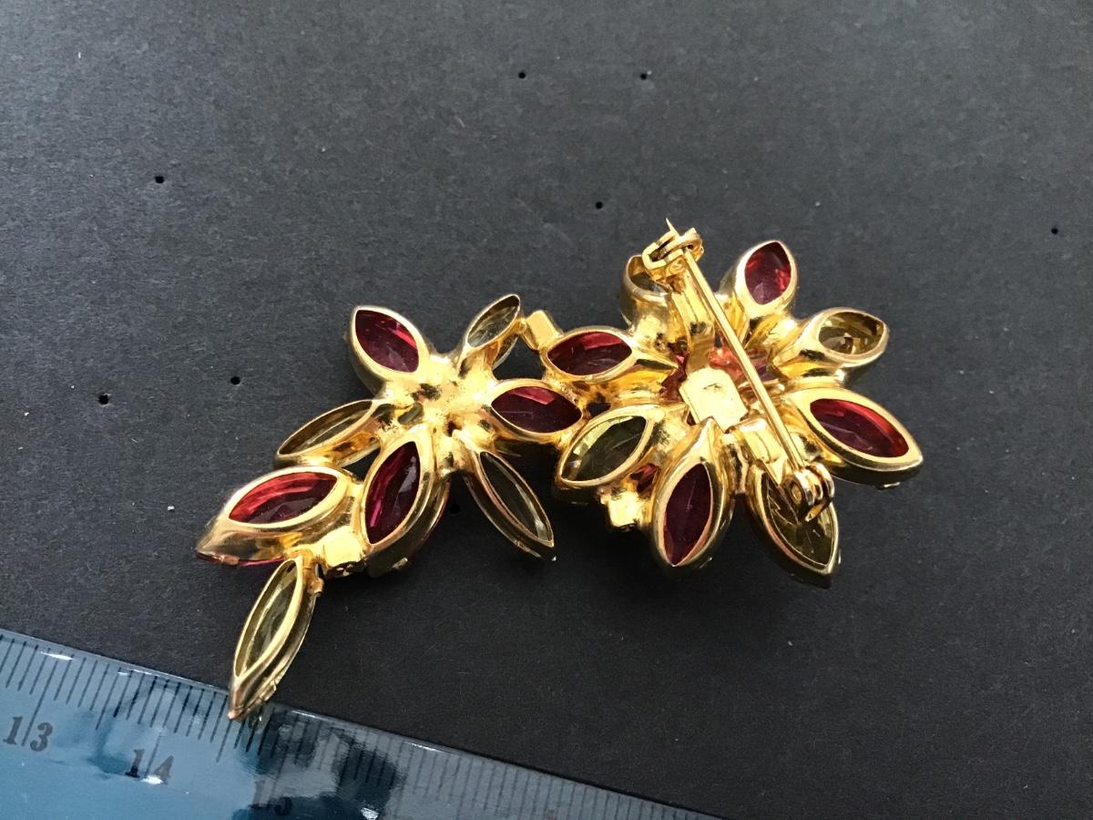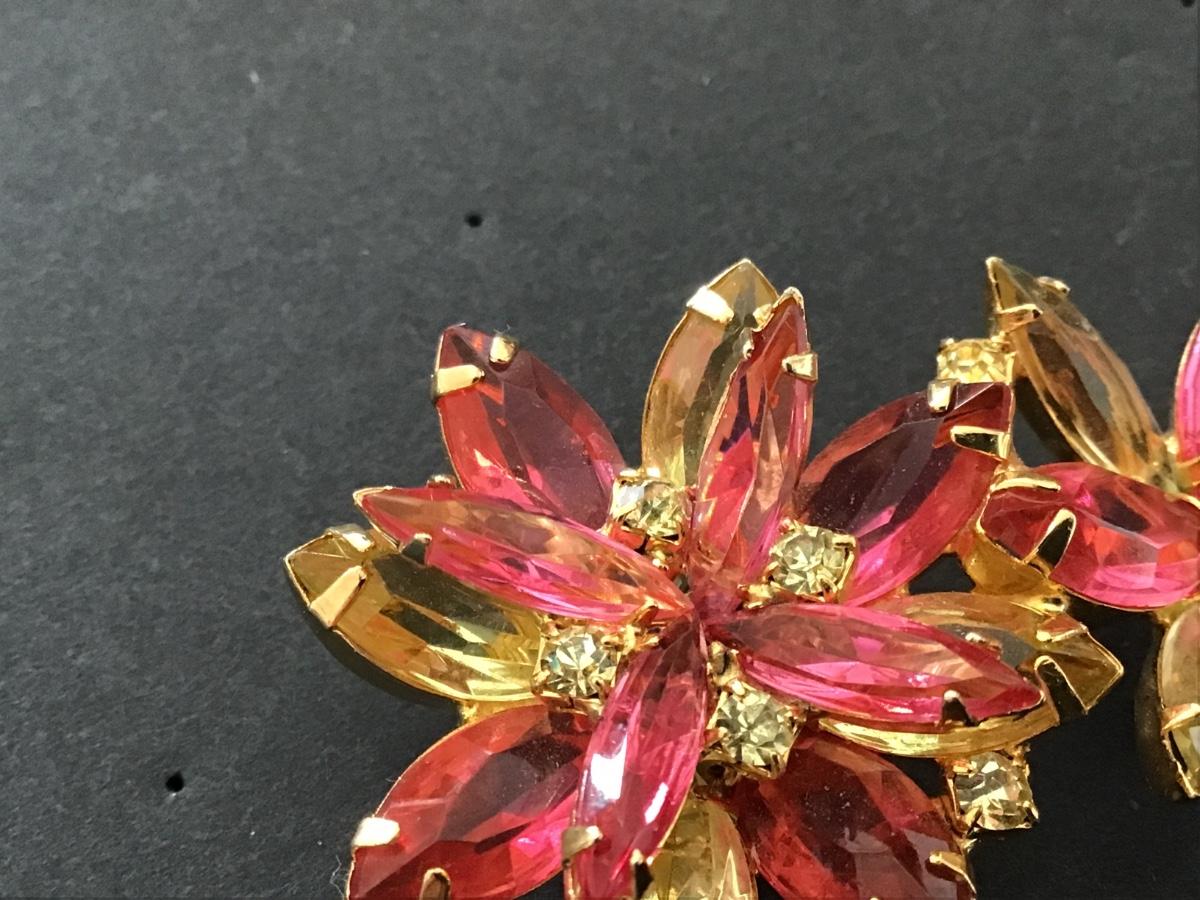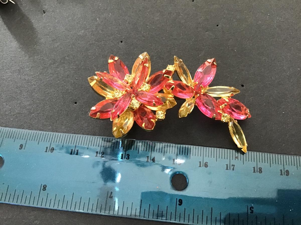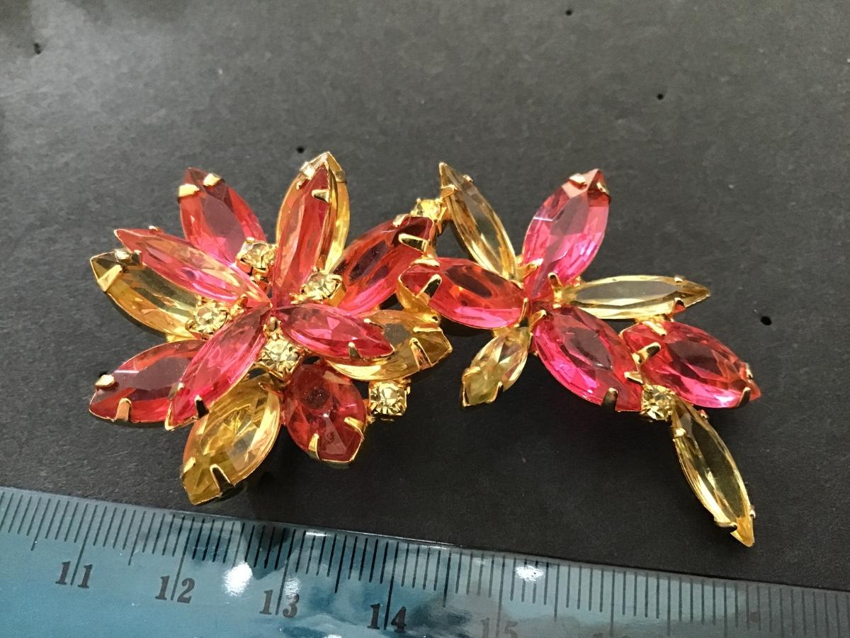 Gorgeous pink yellow crystal Brooch yellow rhinestone. Dainty