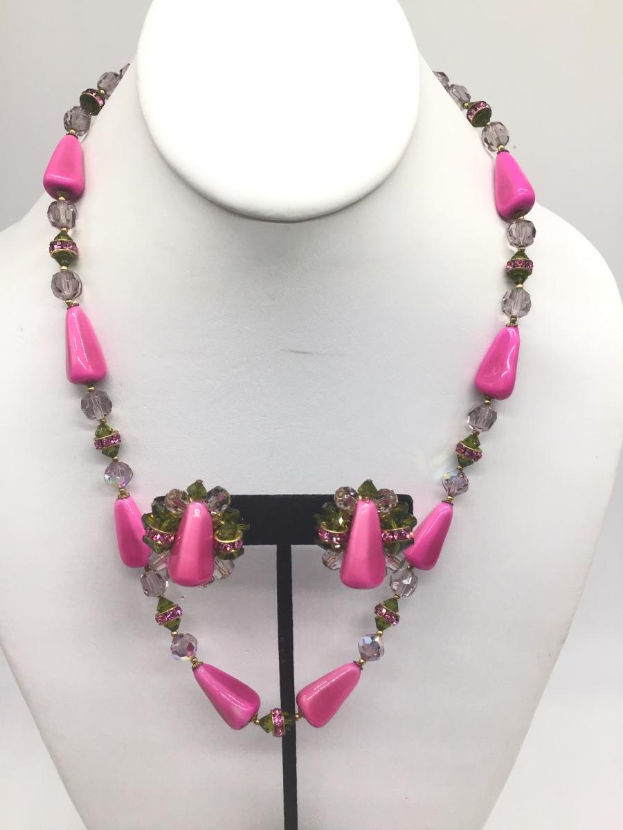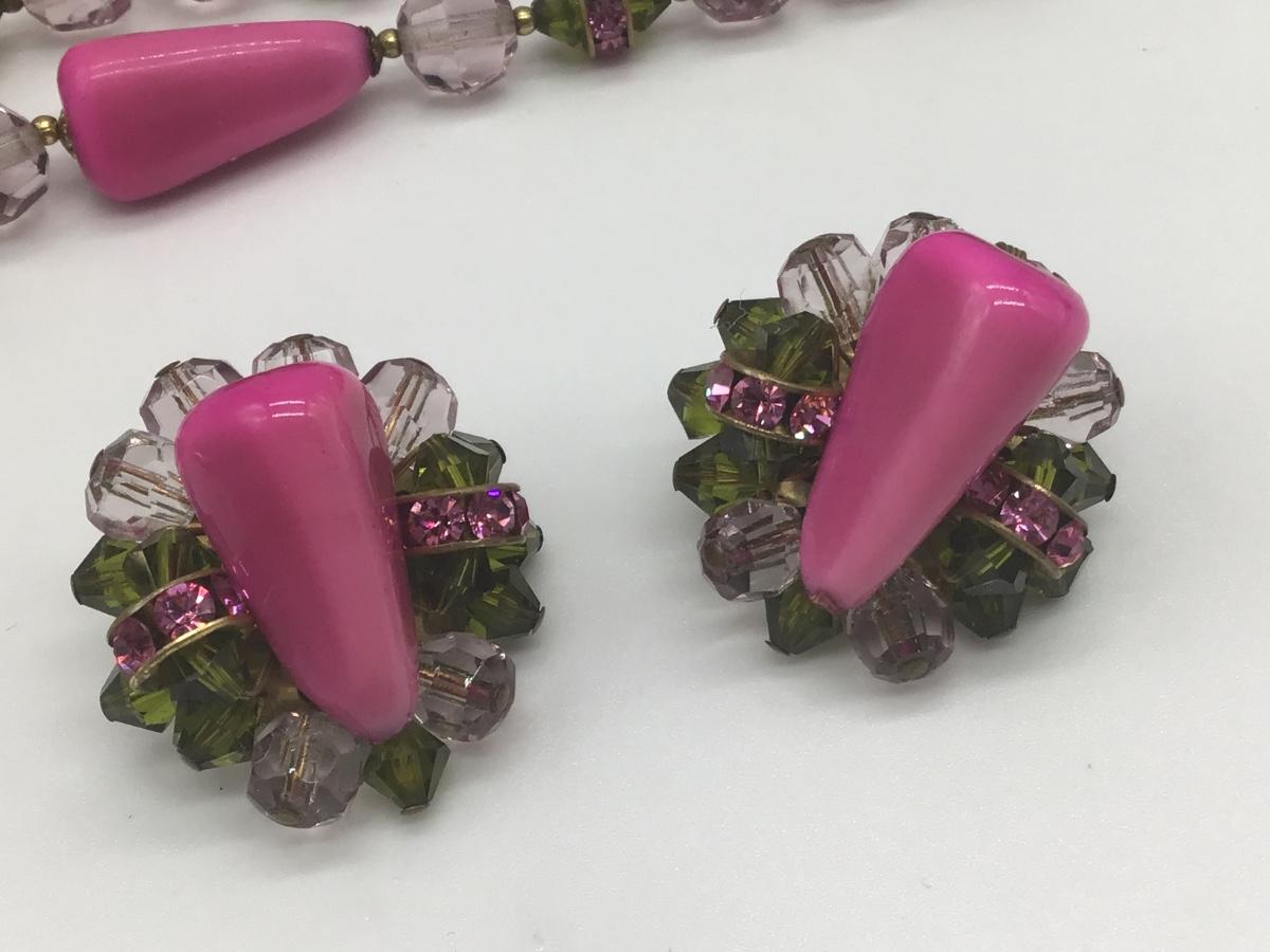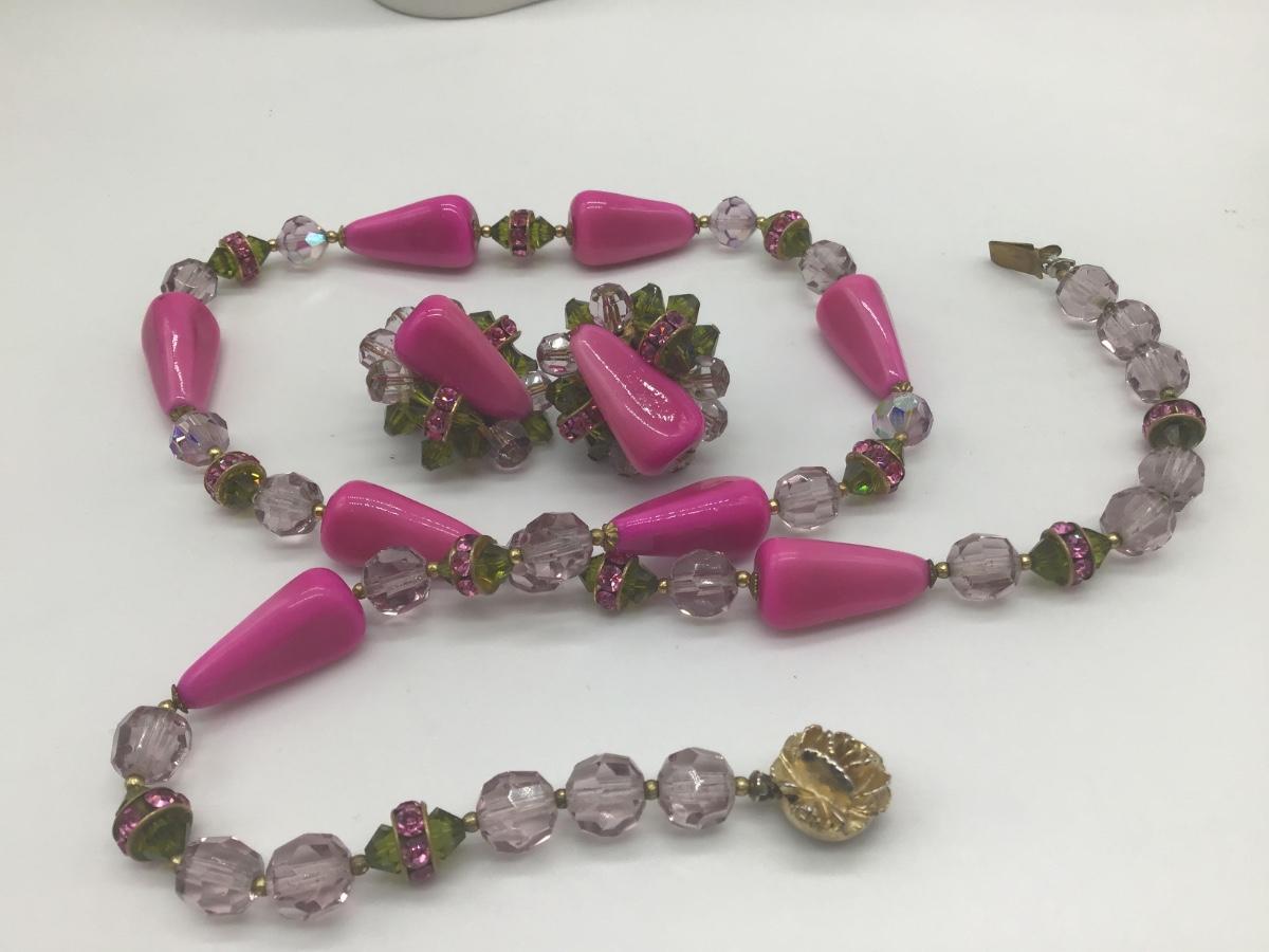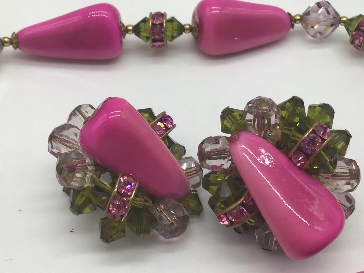Gorgeous Pink,Green , HotPink With crystal s set Vintage 🥰