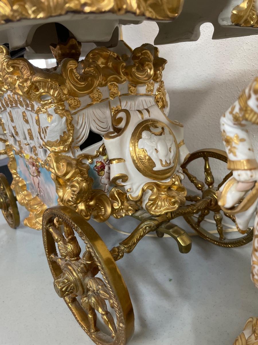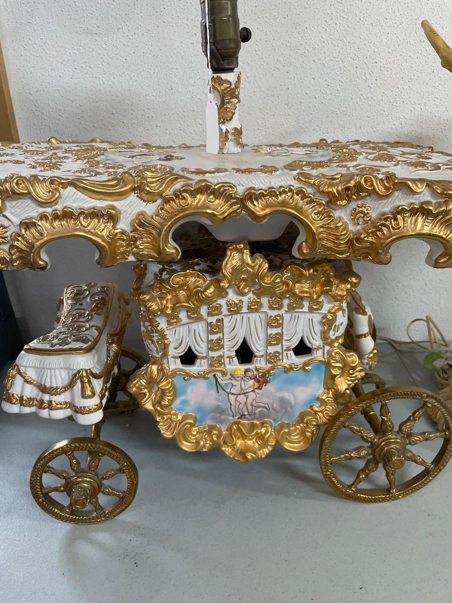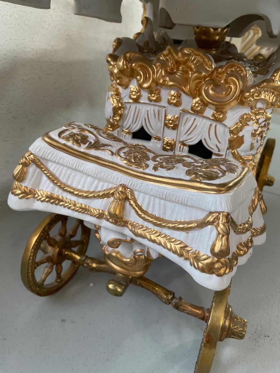 Carriage 35”h x 20”l x 14”w. Vase 20”h x 14”w (few cracks)